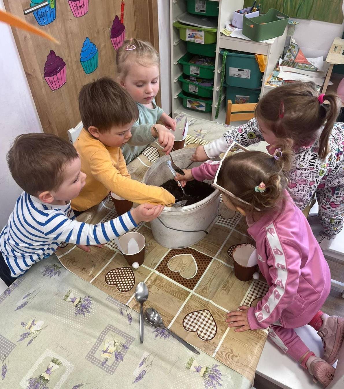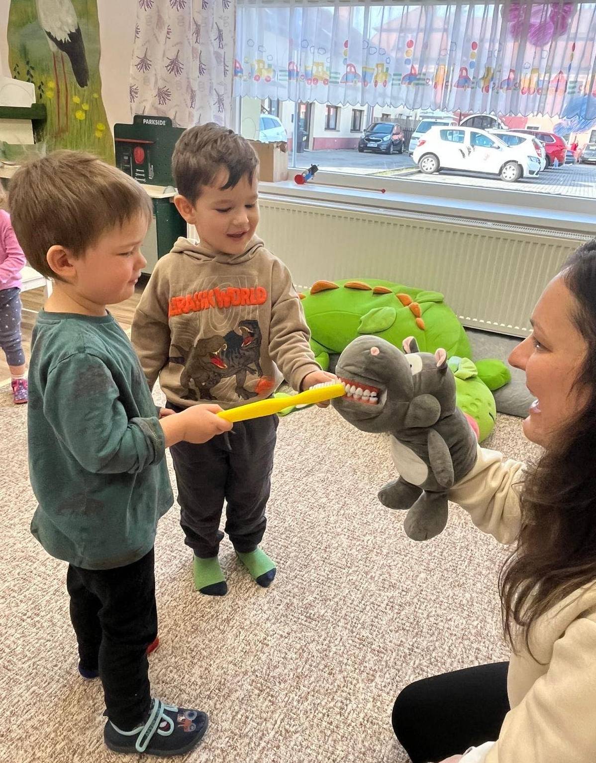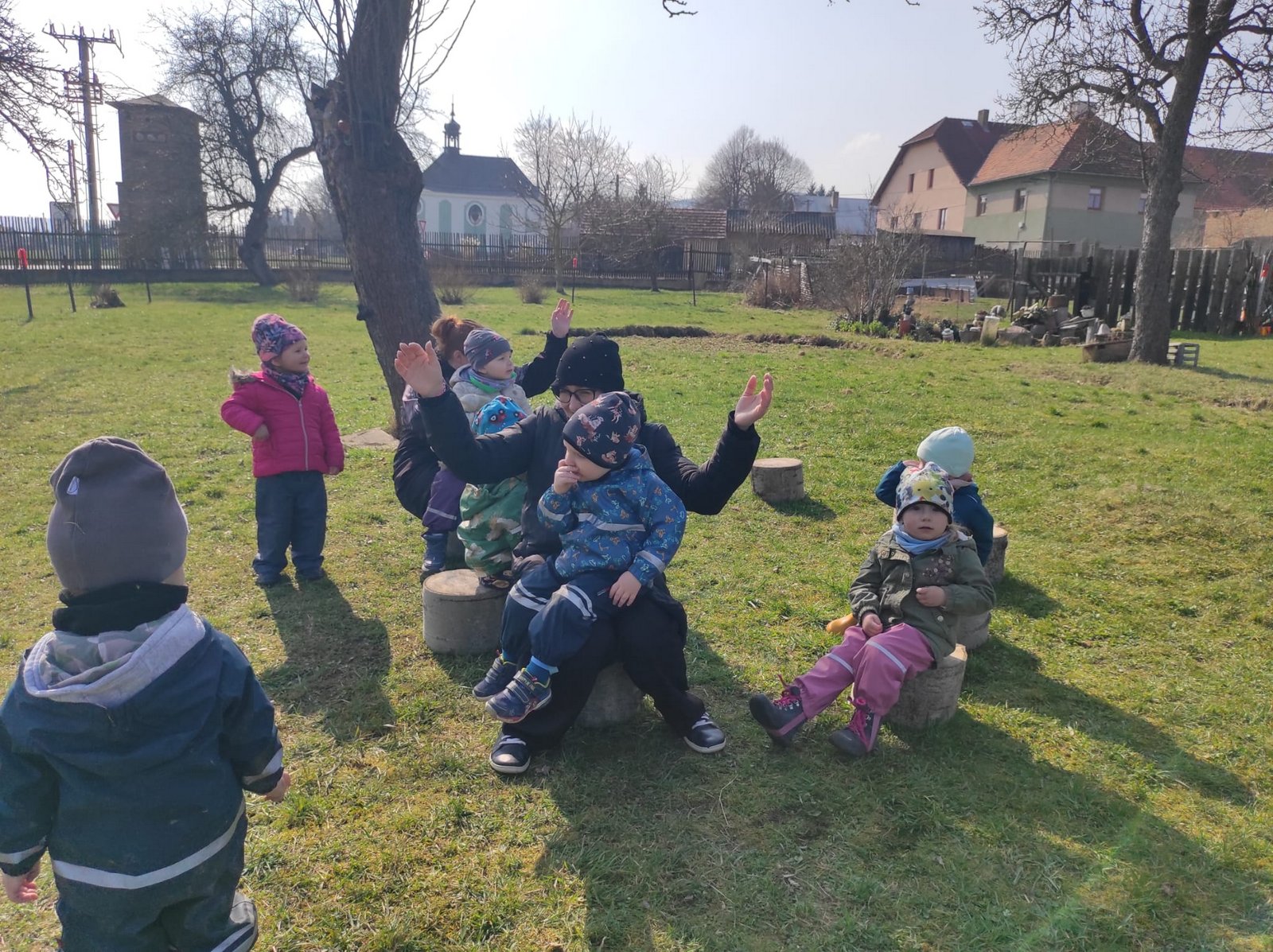 Fialová Čápátka měla na začátku března „zoubkové“ představení a byla na výletě na Novém rybníku v Příbrami. Odemykali jsme jaro, sázeli osení, stále nás baví cvičit a zpívat. Také jsme zvládli na naši zahrádce postavit posezení a březen zakončili Zajíčkovou stezkou.