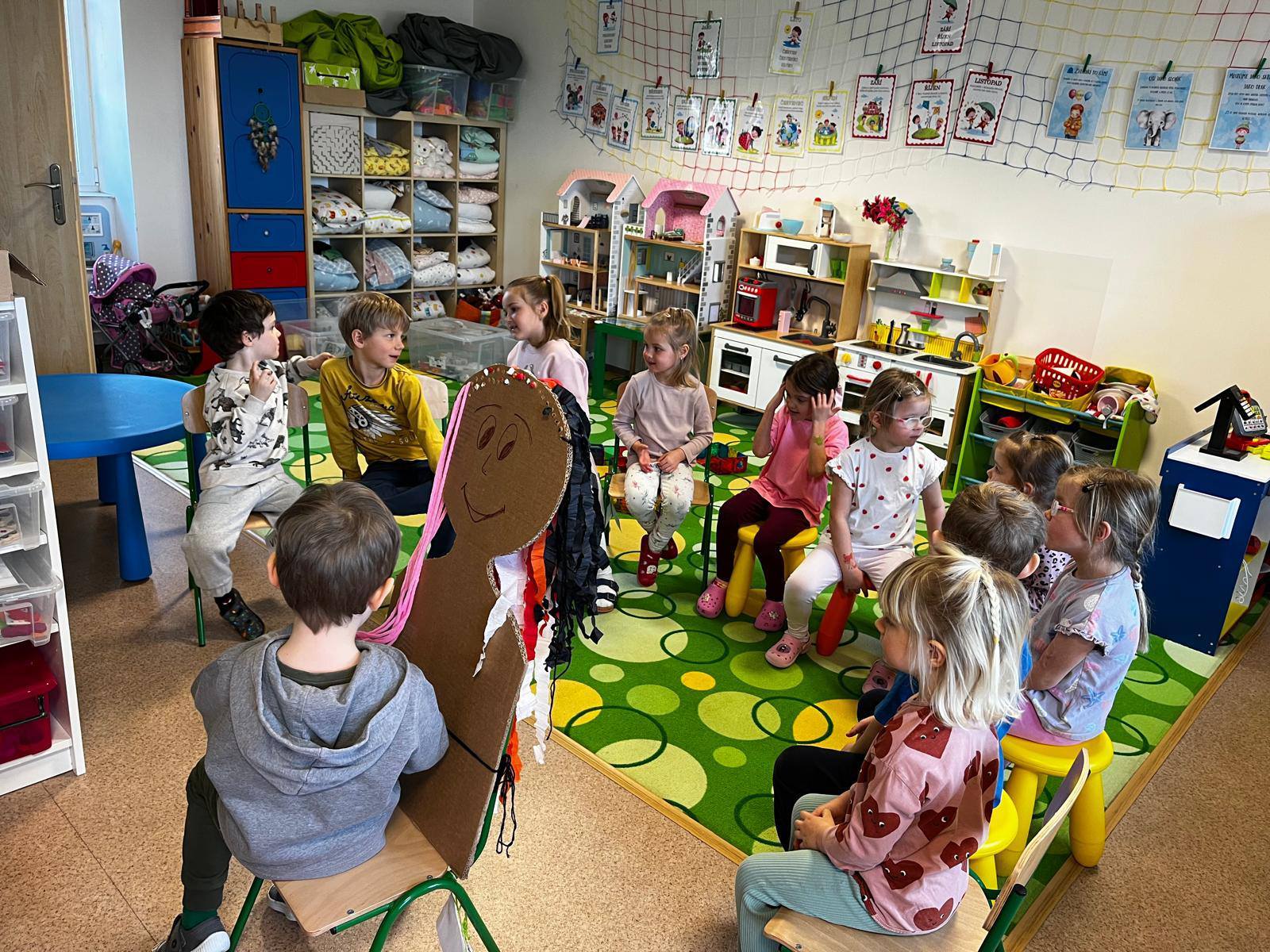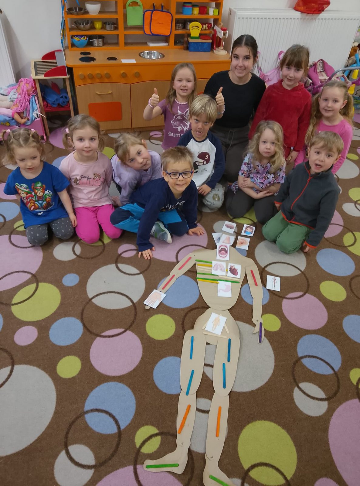 Zelená Čápátka si povídala o lidském těle a nyní již dobře ví, jak svých pět smyslů zapojí … a tak si s radostí společně hmat, čich, chuť, sluch, zrak trénují.