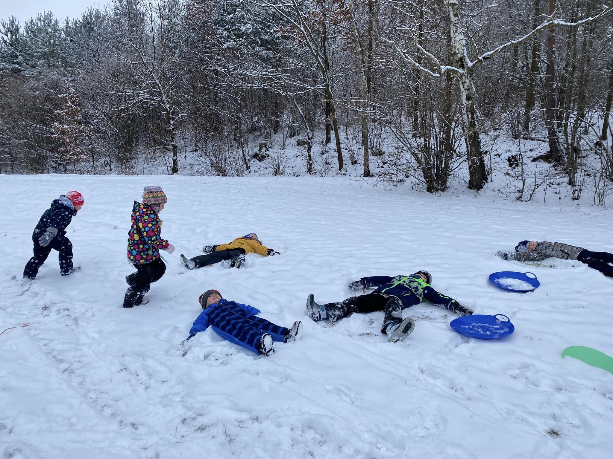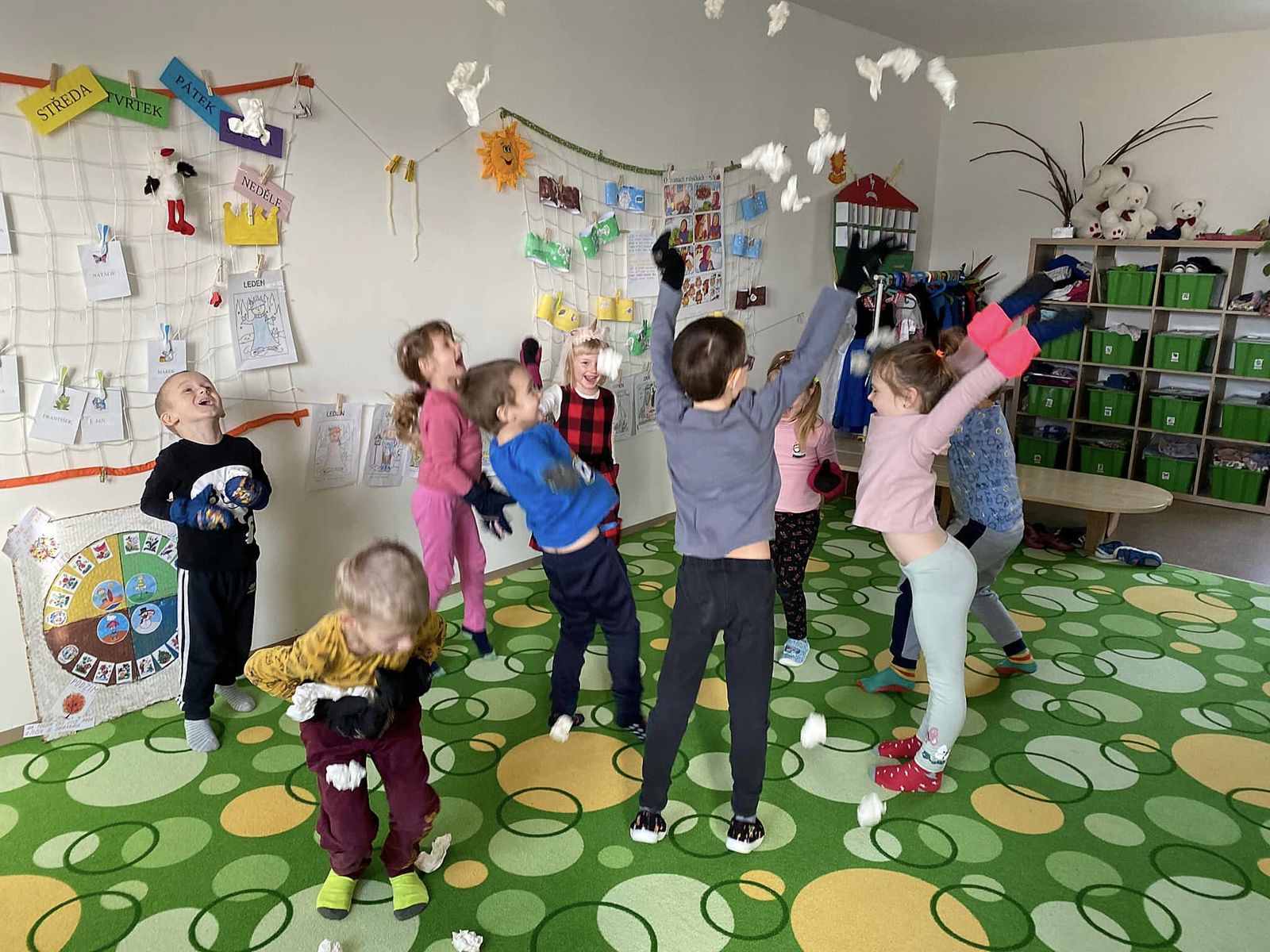 Sněhová nadílka nás vylákala ven a pěkně jsme si užili bobování. A pokud sníh není, nám to nevadí. Uděláme si sněhové koule z papíru, vytvoříme vločky, brusle, lyže a jde se na to.