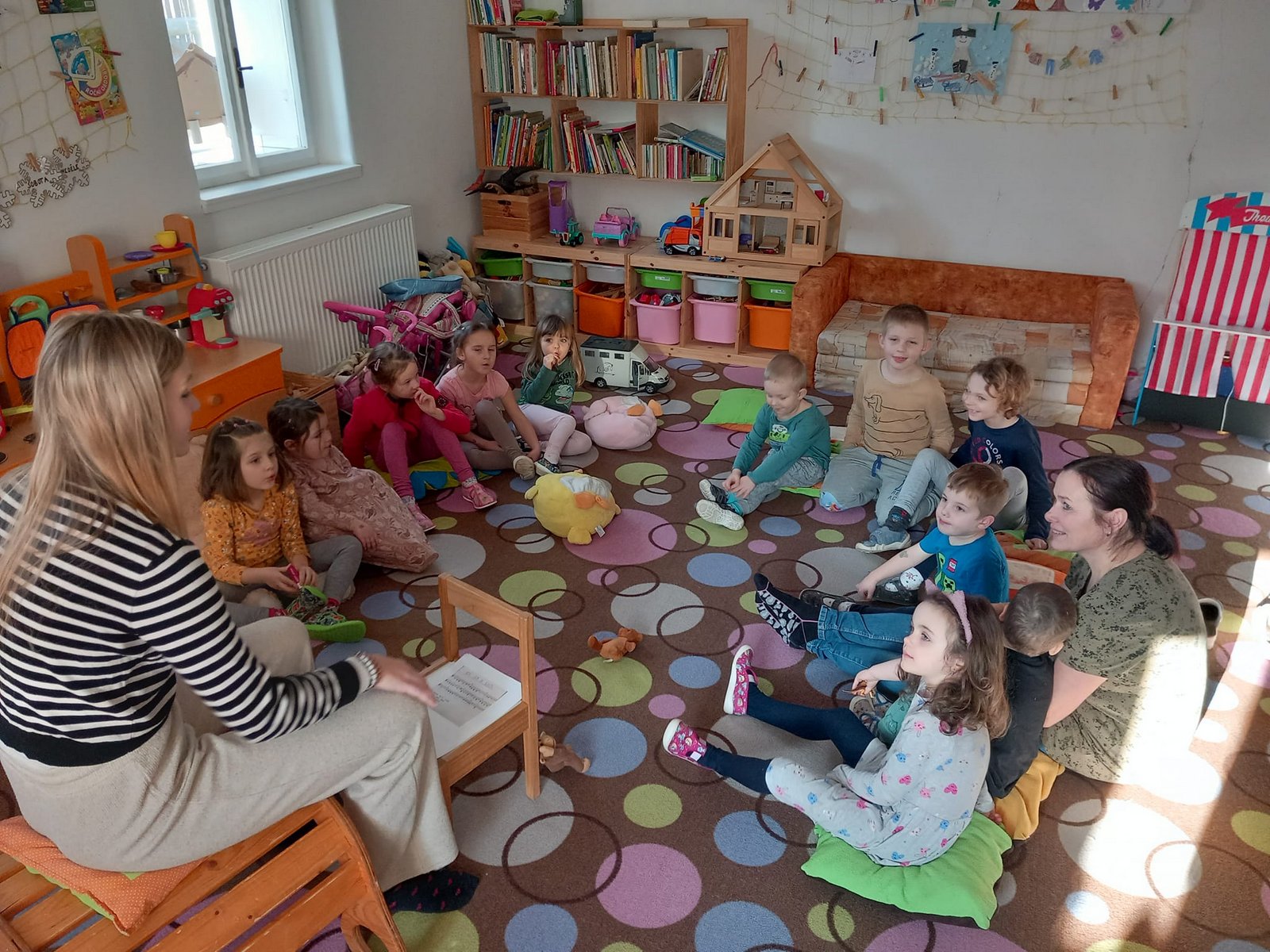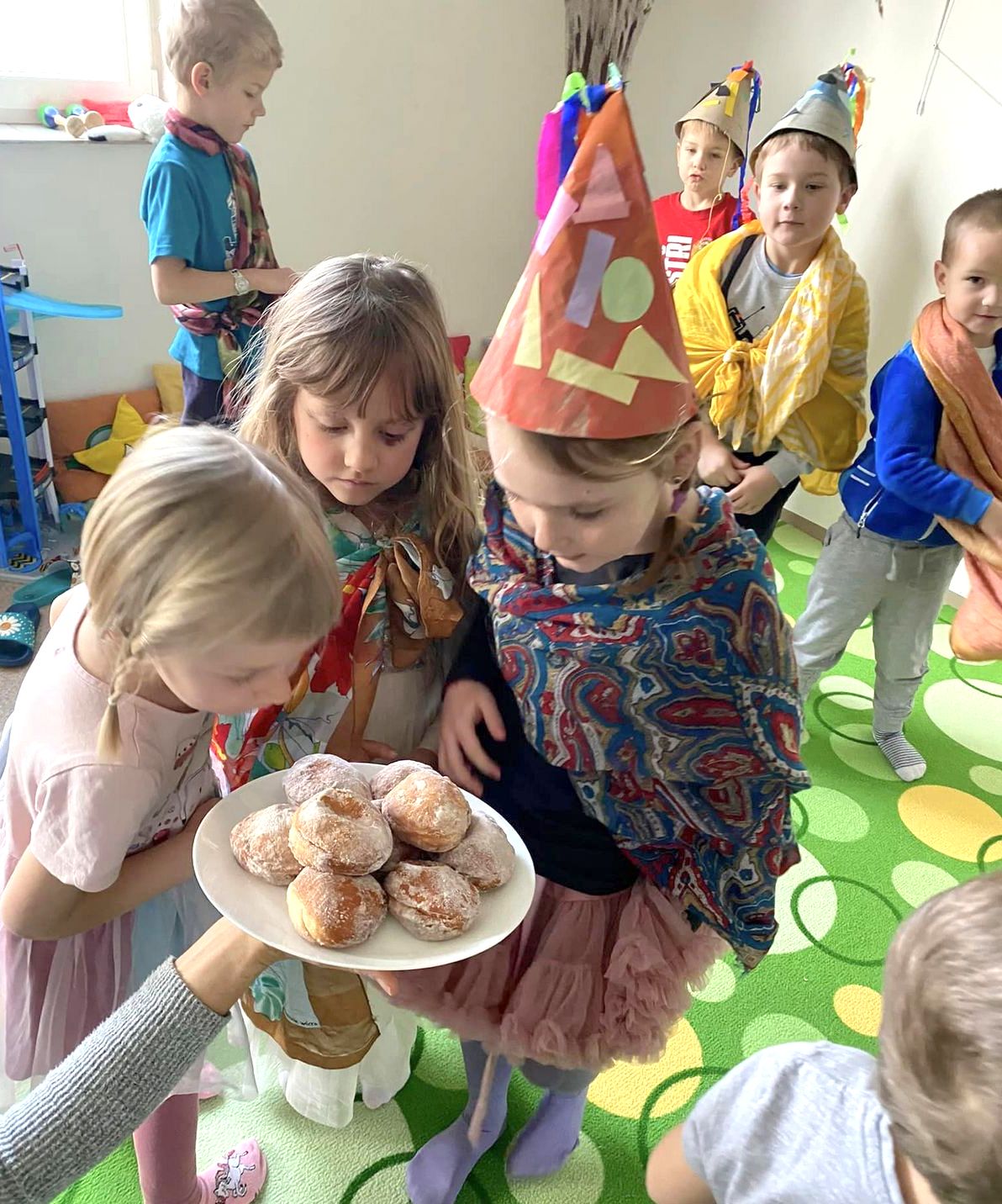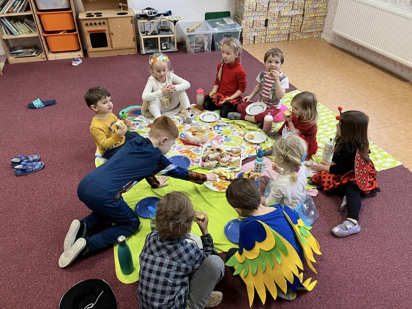 V únoru nemohla chybět masopustní veselice. Tančili jsme, zpívali, tvořili a náramně si to vše užili. 🙂 Zelená Čápátka si na Tučný čtvrtek velice pochutnala na výborných koblihách, za které moc děkujeme mamince Helenky.