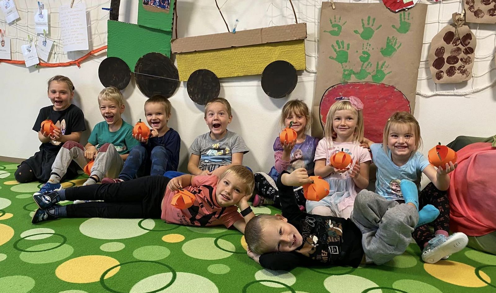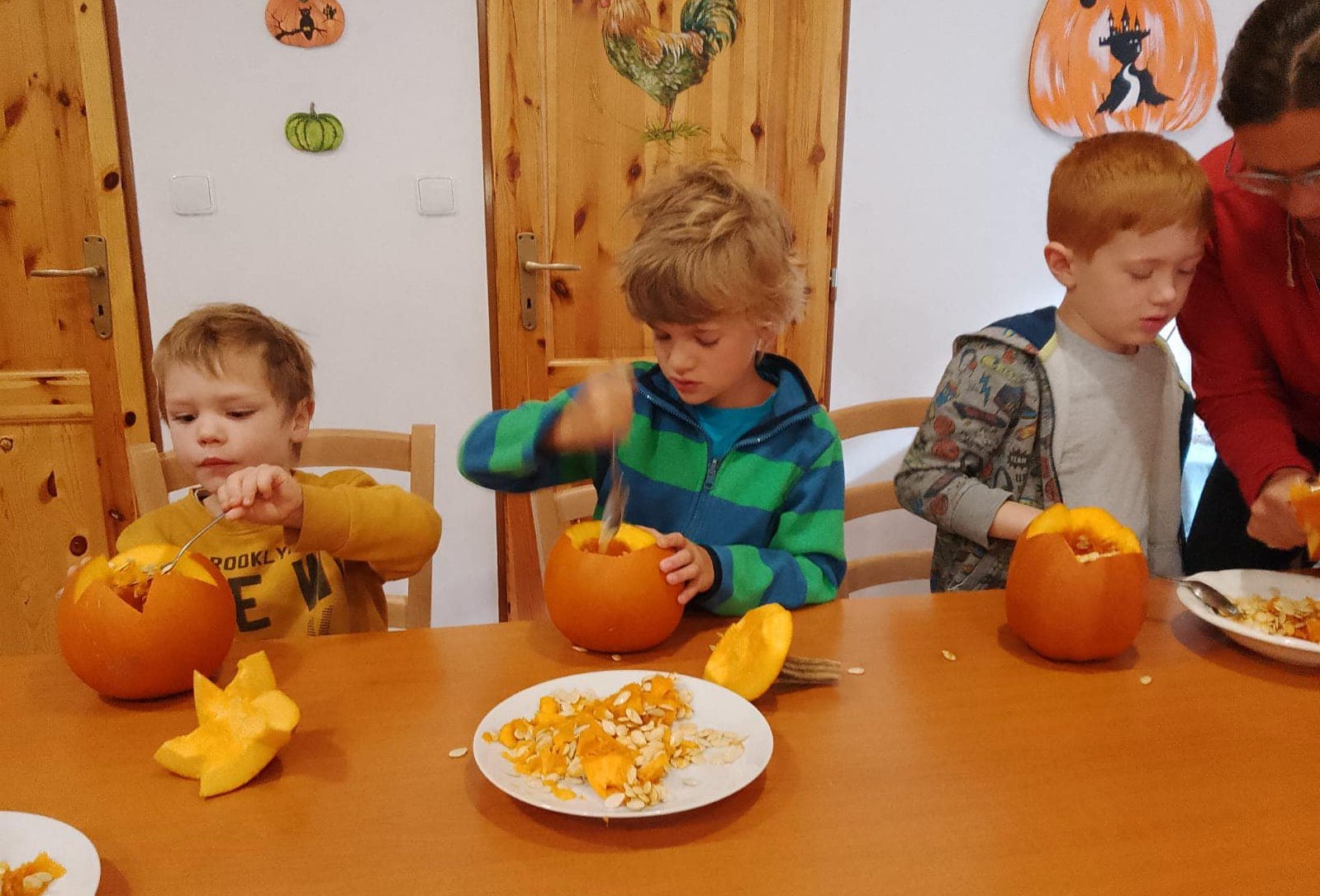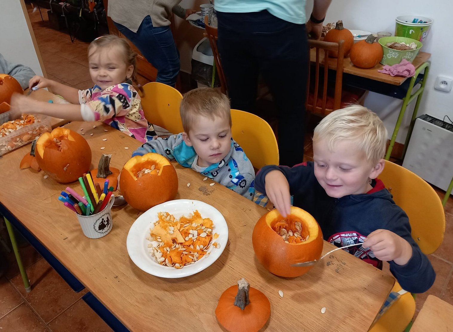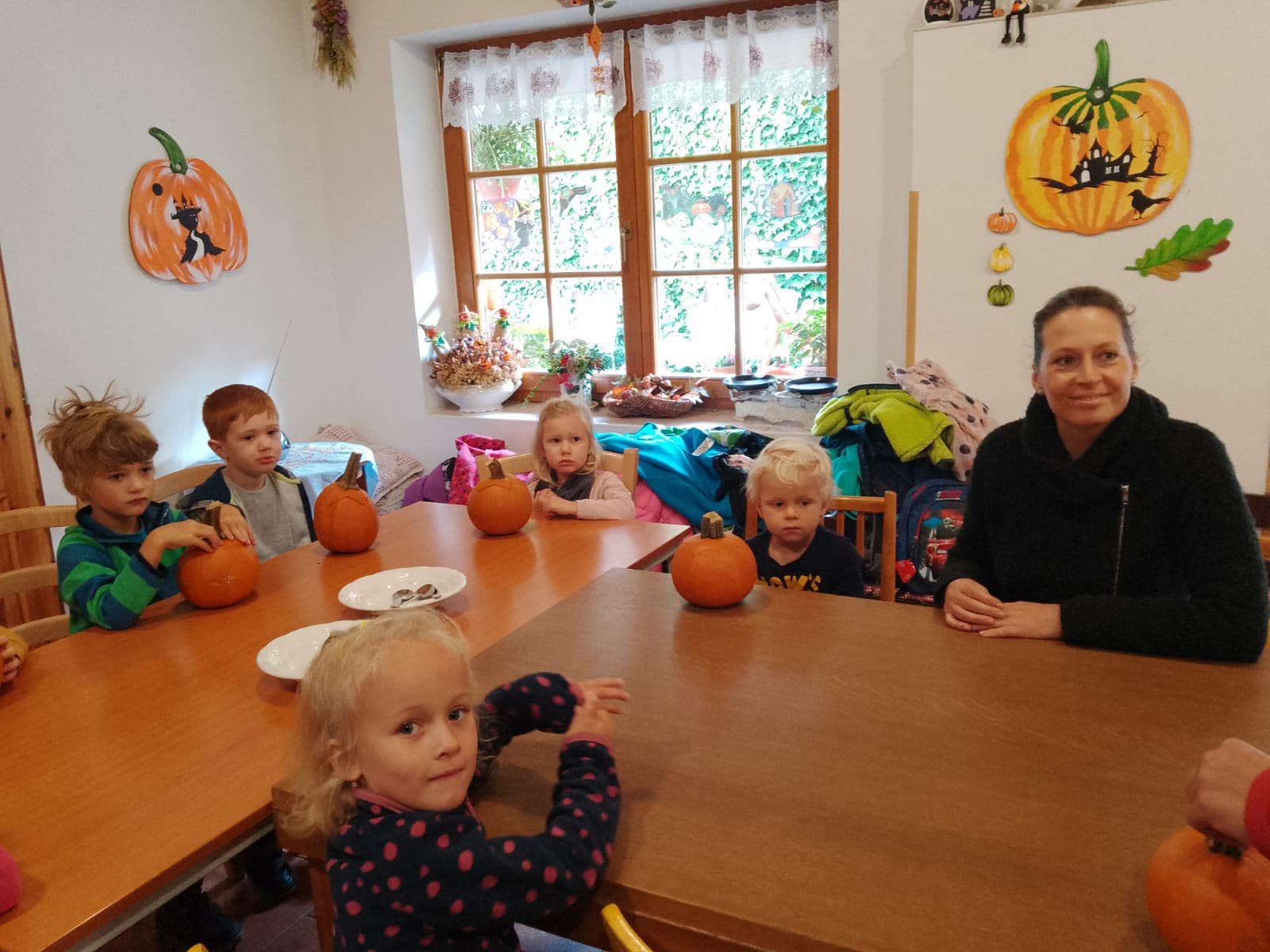 Dále jsme se vypravili na “dýňový výlet” do Čechovy stodoly, kde jsme si každý vydlabali vlastní dýničku a potkali pár strašidel, ale jelikož jsme odvážní, tak jsme se jich nebáli a užili jsme si spoustu legrace. ![]()