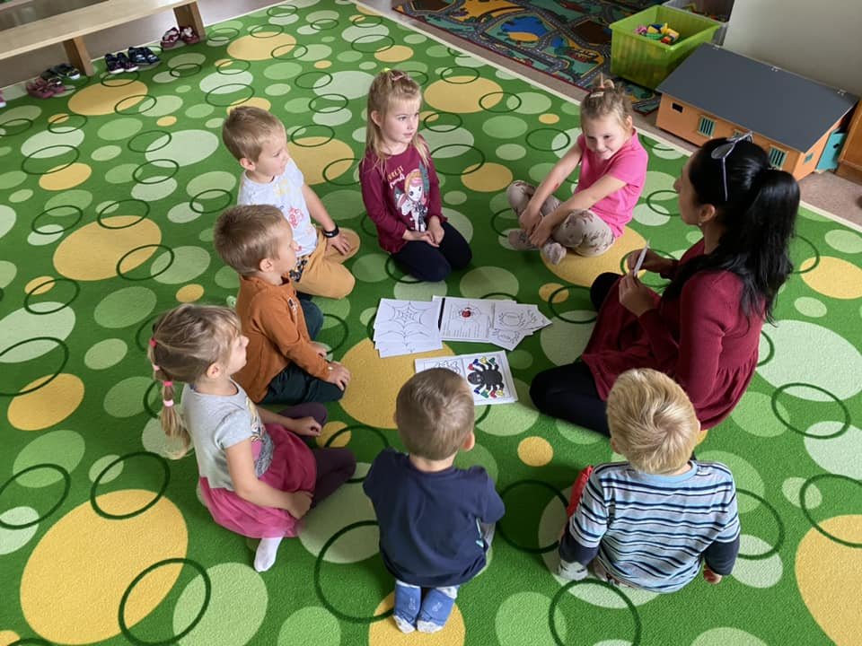 Začátkem září se seznamovali kluci a holčičky, co přišli do naší čapí školičky. Počasí nám přálo, vyráželi jsme na procházky, hráli jsme hry, houbařili, tvořili (např. pavoučky a jejich sítě) a skotačili. ![]()