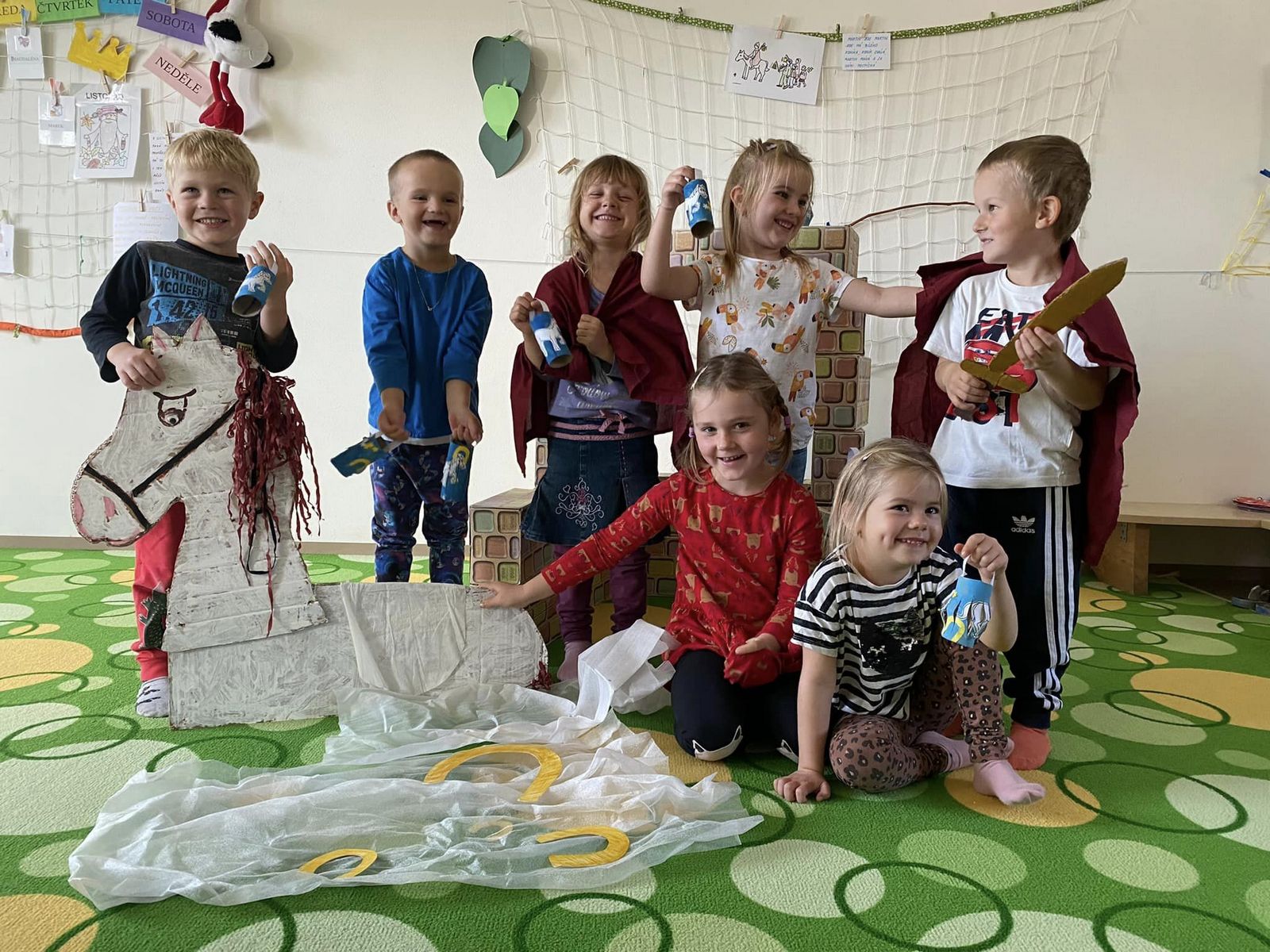 Každým dnem nás provázel vzkaz v láhvi od piráta Černovouse. Druhého dne nás čekala bitva na nedalekém ostrově. Při hře pašeráci jsme neúnavně sbírali diamanty, snažili se jich ukořistit co nejvíce a nenechat se chytit od místních domorodců. Třetího dne jsme se potkali s indiány, naučili se jejich zvykům, jízdě na koni, střelbě z luku a obchodovali s překupníkem. Dne čtvrtého jsme pluli po širém moři a sbírali kódy na vodě. Později tohoto dne jsme díky těmto kódům odemkli zámek na truhle a získali sladkou odměnu. Nezbývalo než poslední den dobýt pevnost skrývající poklad, získat poslední kusy mapy a společně poklad nalézt. Těšíme se na další dobrodružství s kapitánem Černovousem. Tak ahooooj PIRÁTI! 🙂