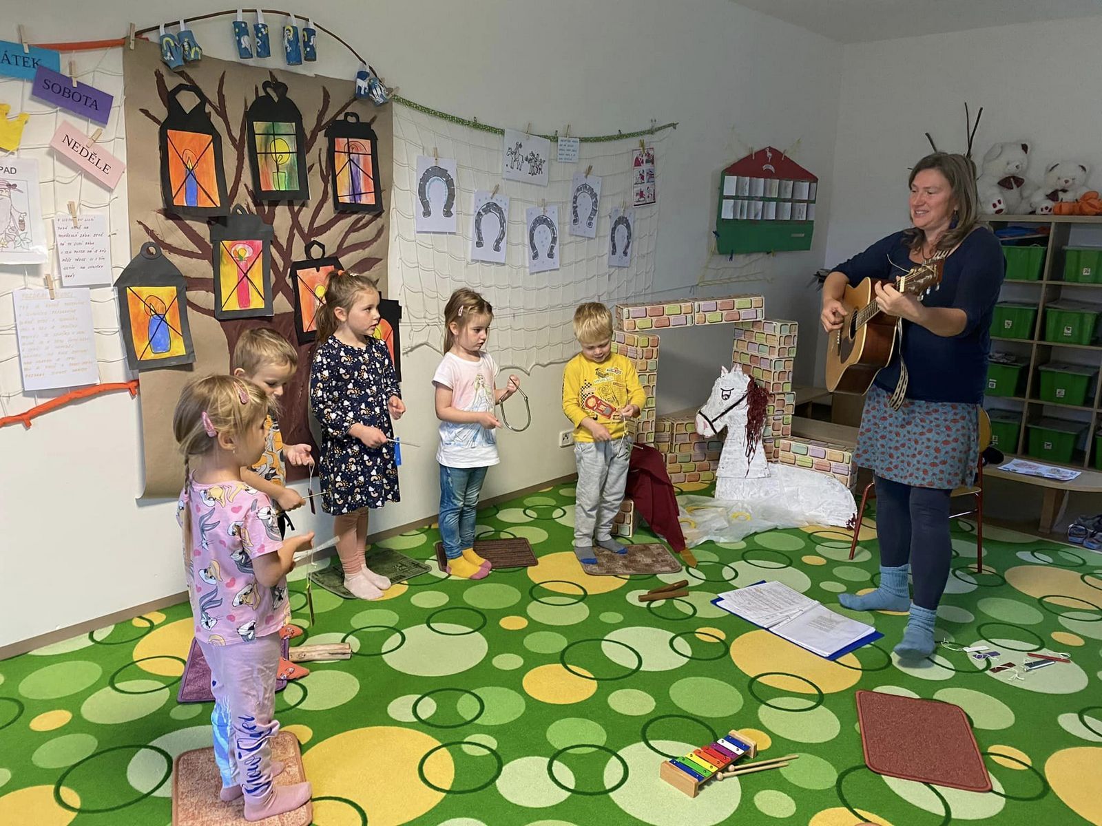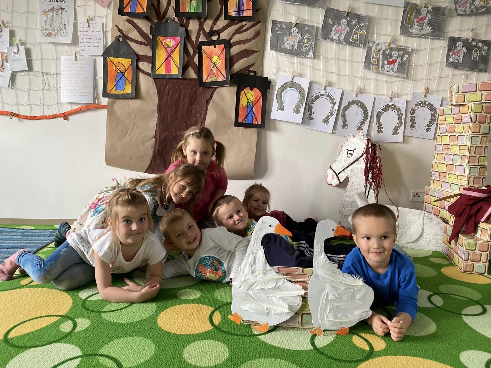 Oslavili jsme svátek sv. Martina, vyráběli jsme, pekli rohlíčky, hráli, zpívali, a na koni dováděli.