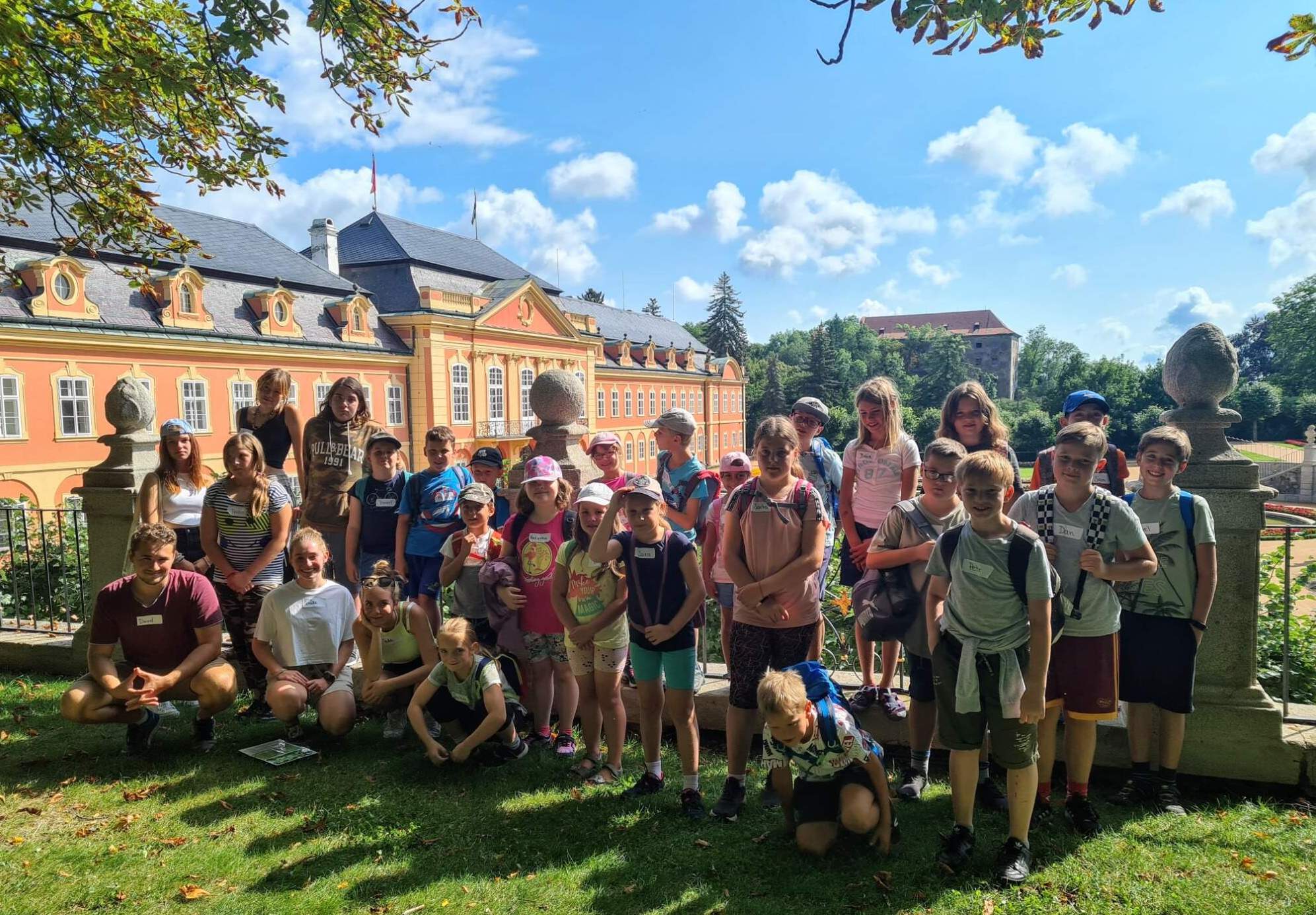 Na 4. turnusu táborů jsme si užili mnoho zábavy. Během týdne jsme navštívili francouzský park u zámku Dobříš a nové prostory oranžérie, kde je vytvořena expozice Vody a Tajuplného lesa. Zde děti čekalo plno zábavných aktivit, nových informací a her. Dále zde byla zpřístupněna Galerie Zdeňka a Emilie Milerových, jejichž „Krtečka“ milují děti po celém světě.