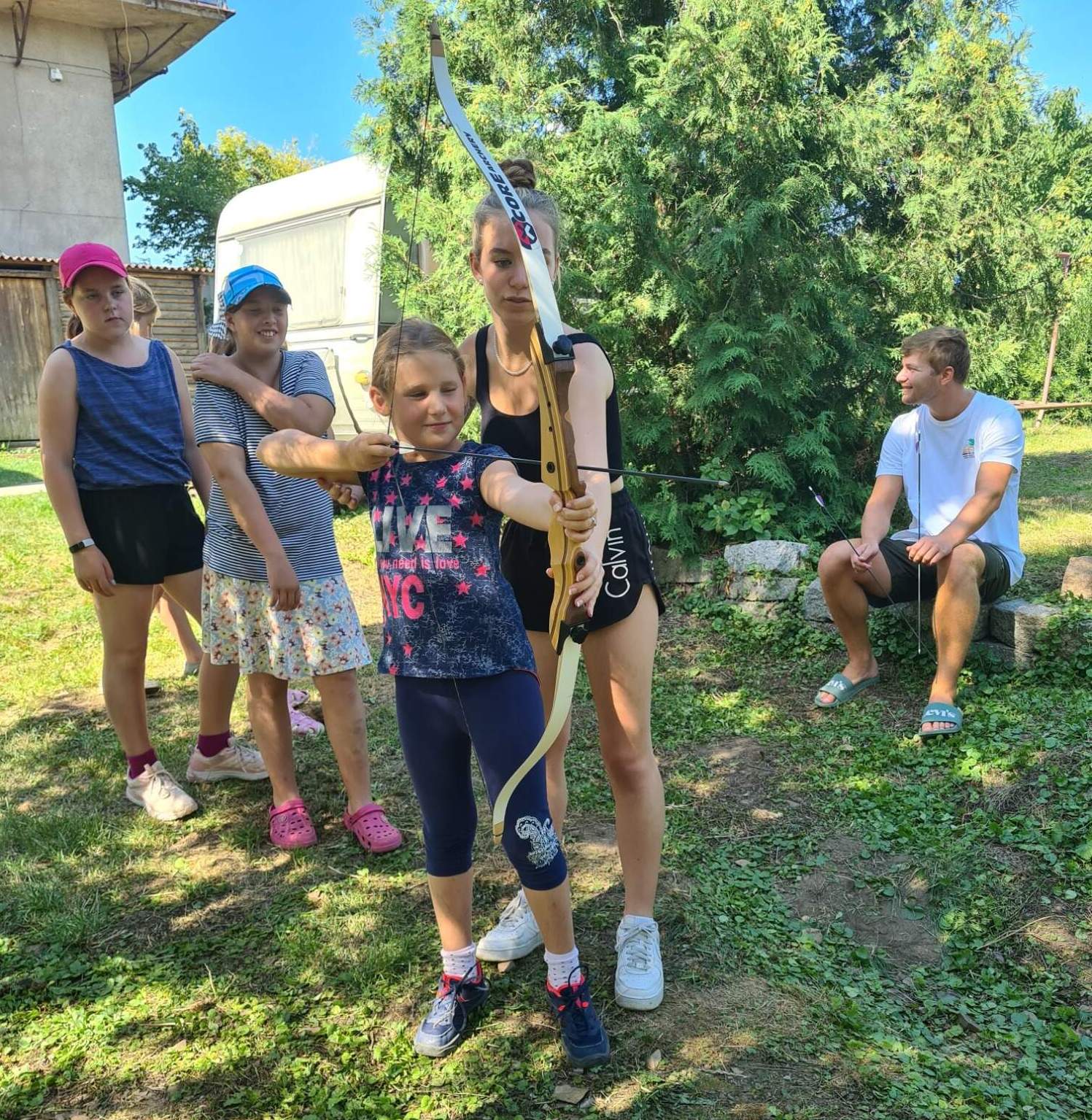 Když jsme necestovali, tak jsme ve volném čase při vyrábění výrobků z různých materiálů nebo při sportovních aktivitách procvičovali jemnou a hrubou motoriku. Poslední den byla pro děti připravena projížďka na koních a střelba z luku, což se jim velmi líbilo. Po celou dobu tábora probíhala celotáborová hra „Cesta za dobrodružstvím“, která vyvrcholila hledáním pokladu. Děti získaly na táboře nové zážitky, naučily se novým dovednostem a našly spousty kamarádů.