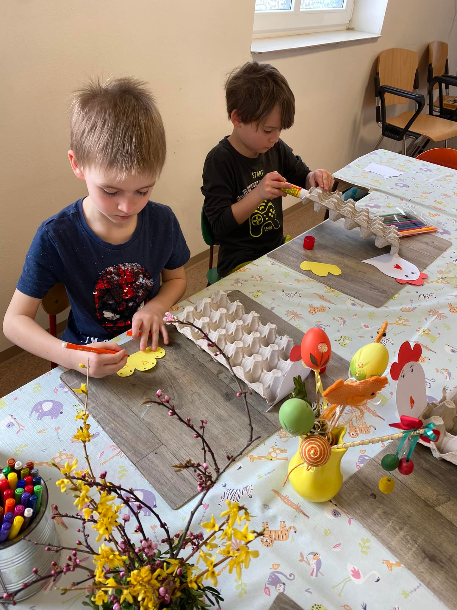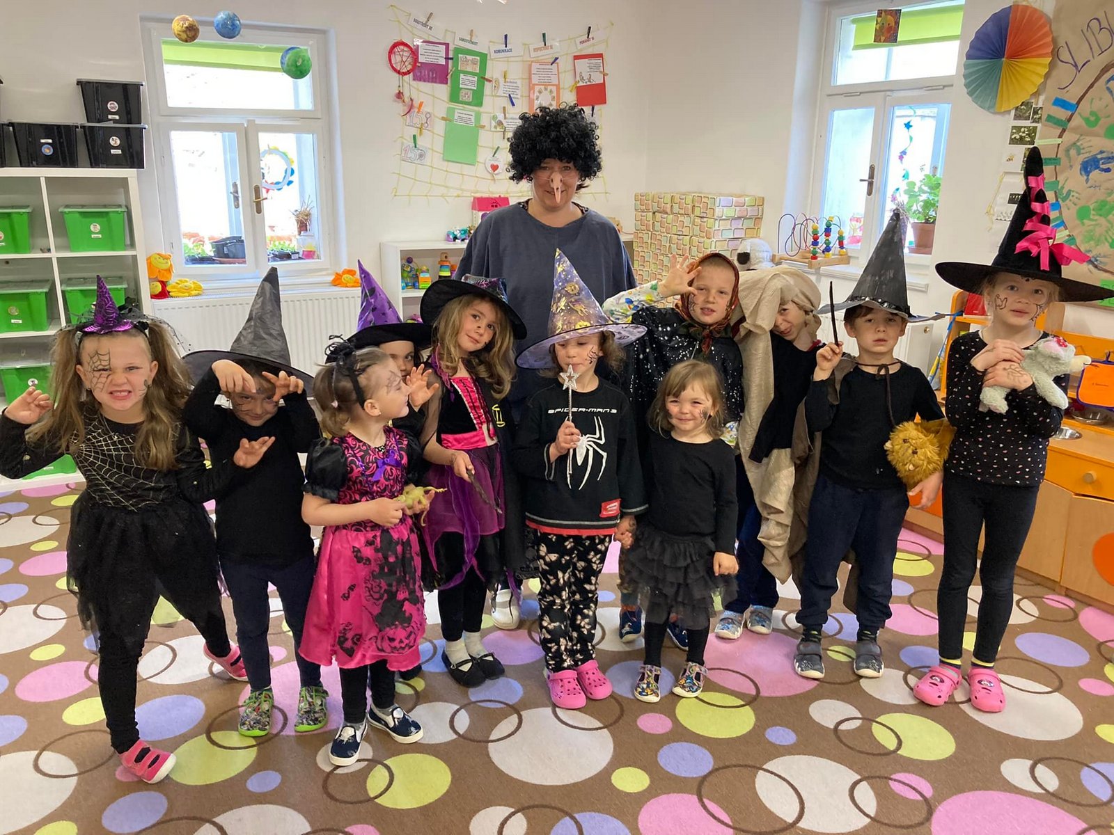 Konec dubna byl ve znamení kouzlení a čarování, čarodějného malování; lektvary na všechny možné neduhy jsme míchali, polévky z hadích ocásků a žabích stehýnek vařili a na košťatech rejdili. 🙂