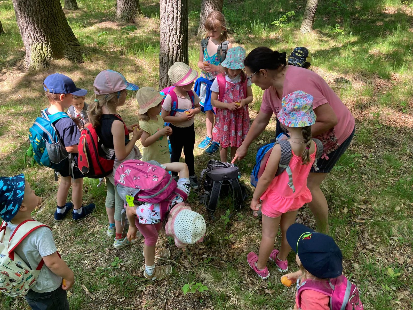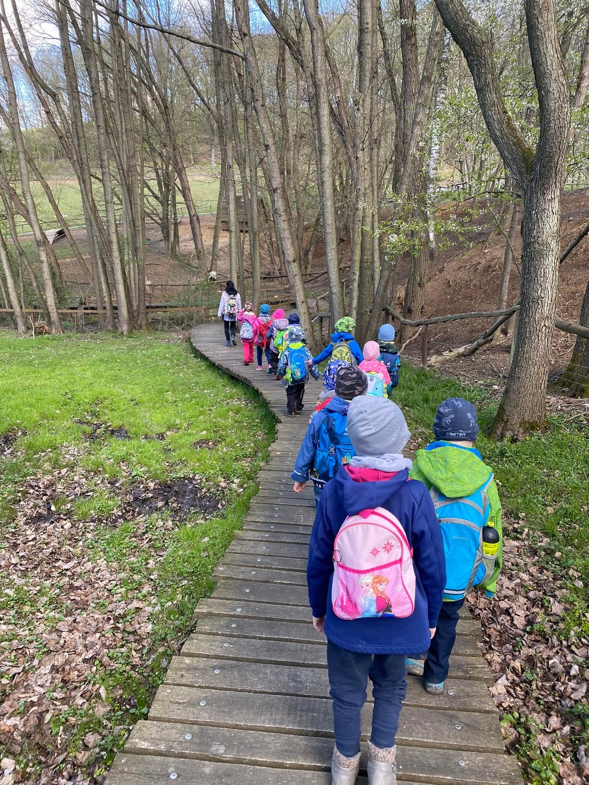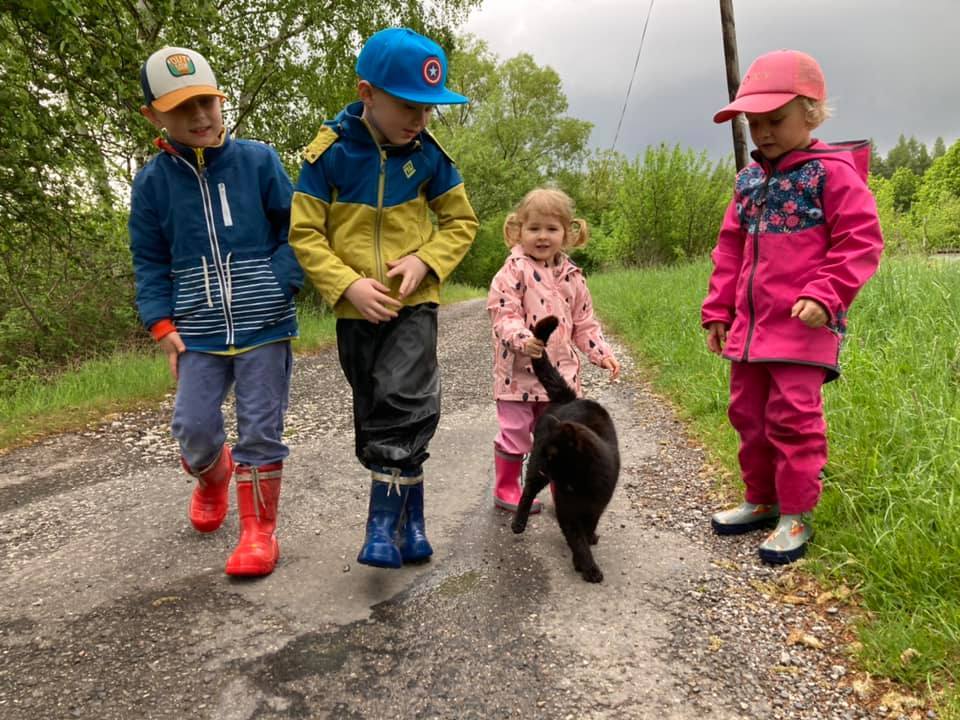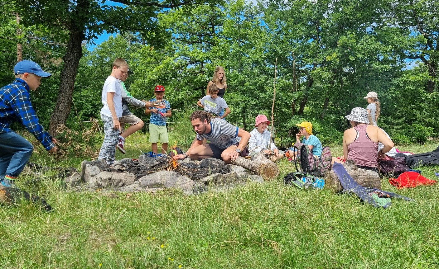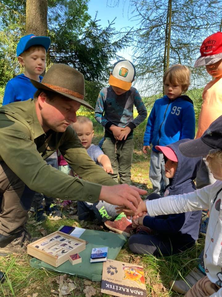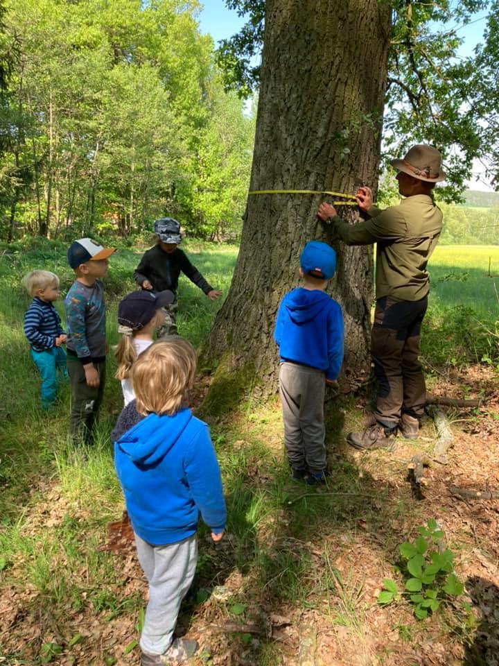 Každý den jsme vyrazili na procházku a užívali si sluníčka. A když občas sprchlo, vůbec nám to nevadilo. Hodně času jsme strávili v lese, kde jsme si povídali s lesním pedagogem panem Máchou. Dozvěděli jsme se spoustu zajímavého o lese, zvířátkách a jejich stopách a také jsme měřili stromy. Náramně jsme si to užili, moc děkujeme.