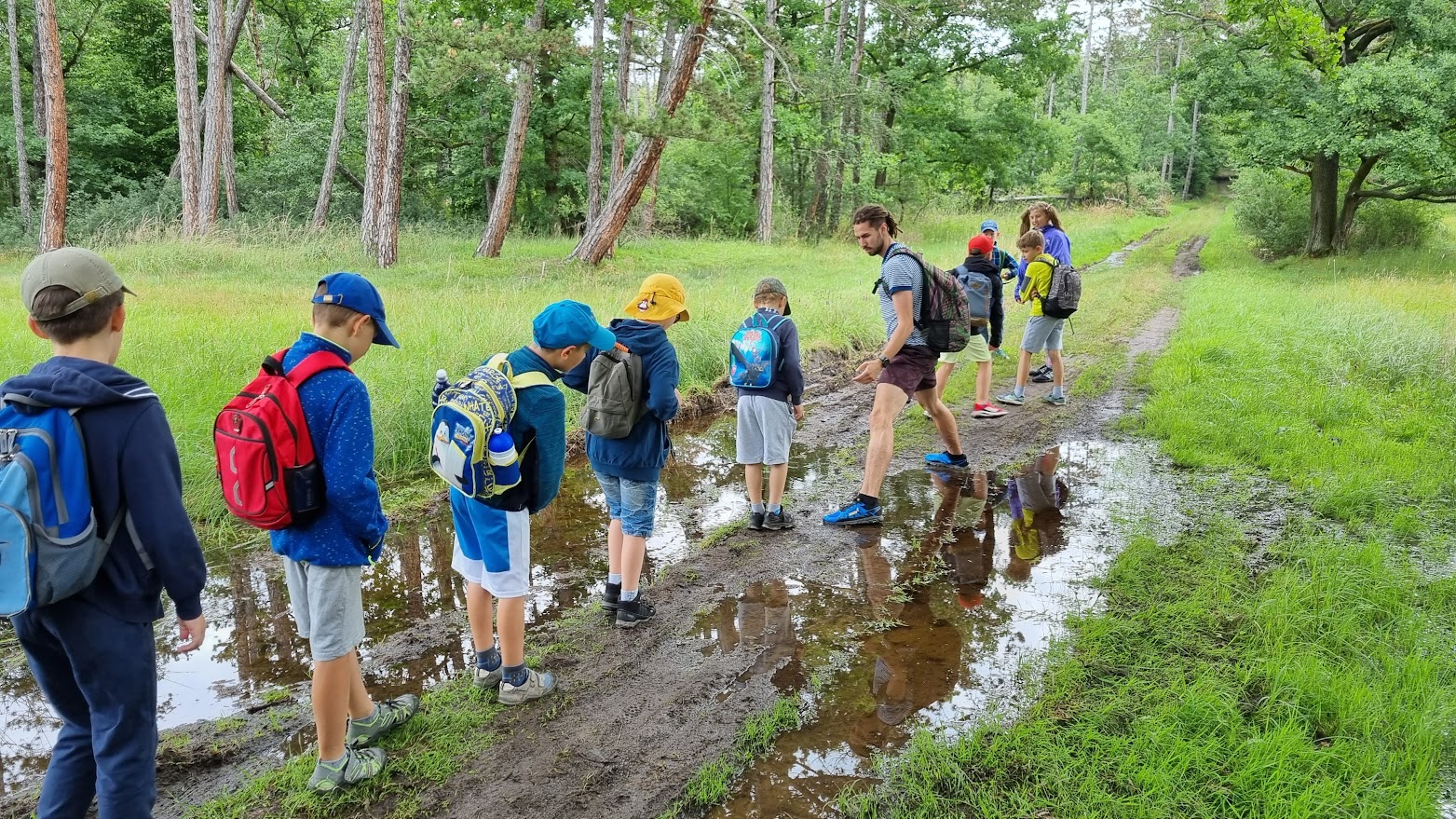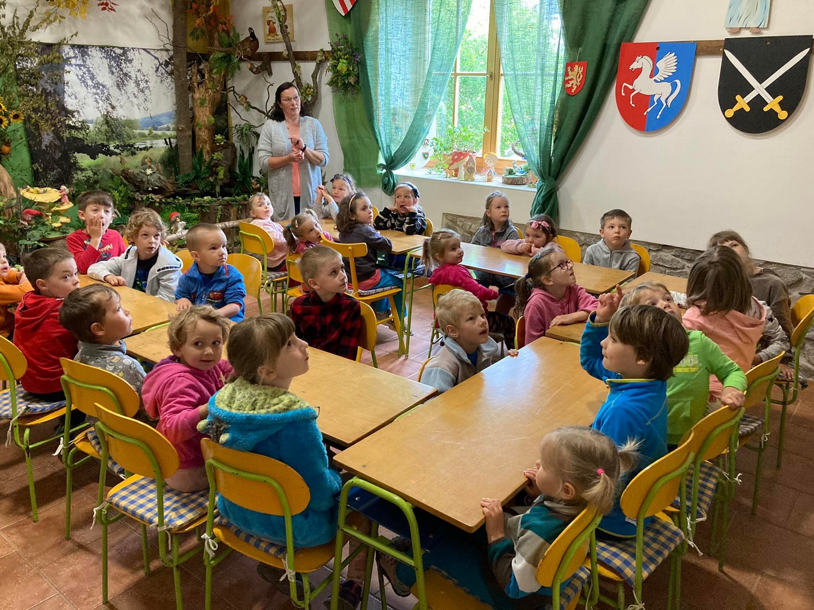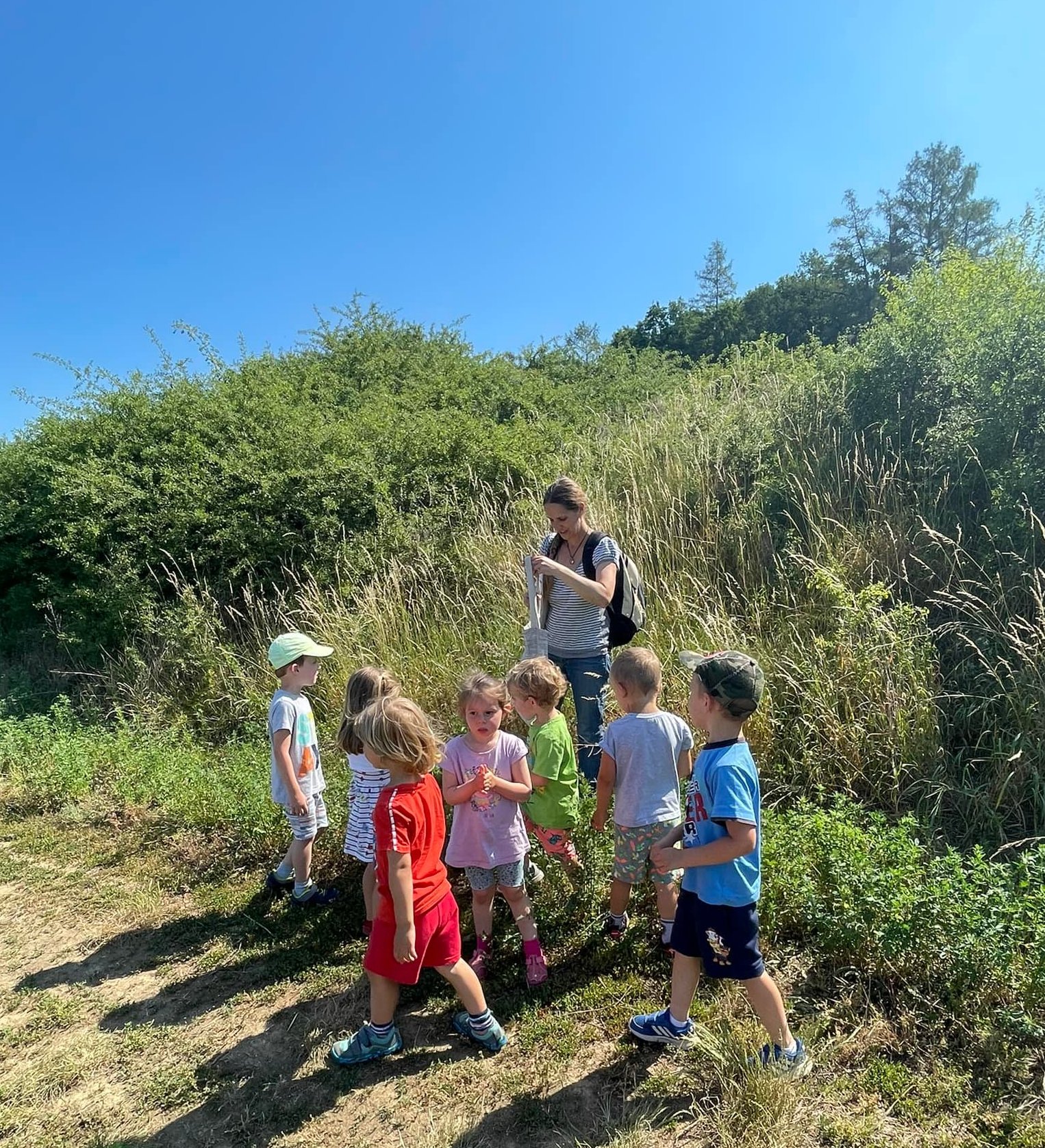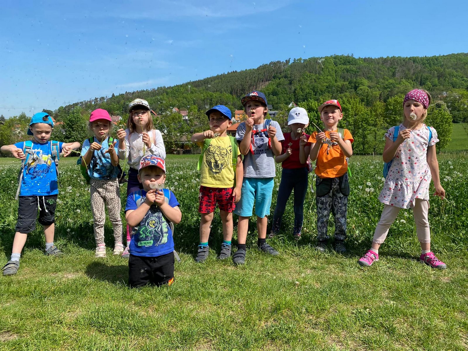 Každý den jsme vyrazili na procházku a užívali si sluníčka. A když občas sprchlo, vůbec nám to nevadilo. Hodně času jsme strávili v lese, kde jsme si povídali s lesním pedagogem panem Máchou. Dozvěděli jsme se spoustu zajímavého o lese, zvířátkách a jejich stopách a také jsme měřili stromy. Náramně jsme si to užili, moc děkujeme.