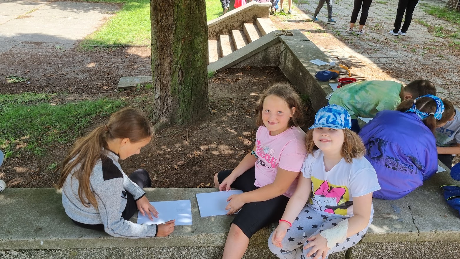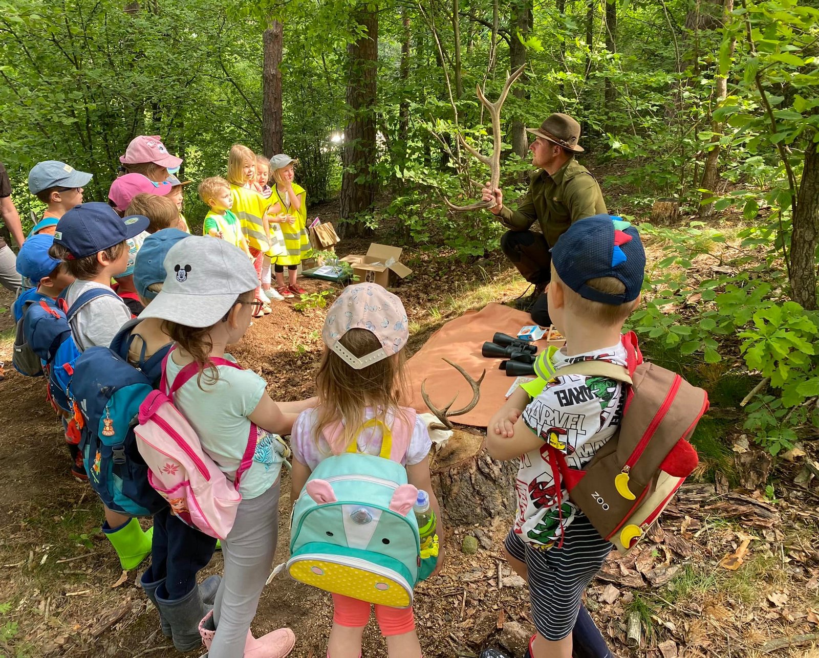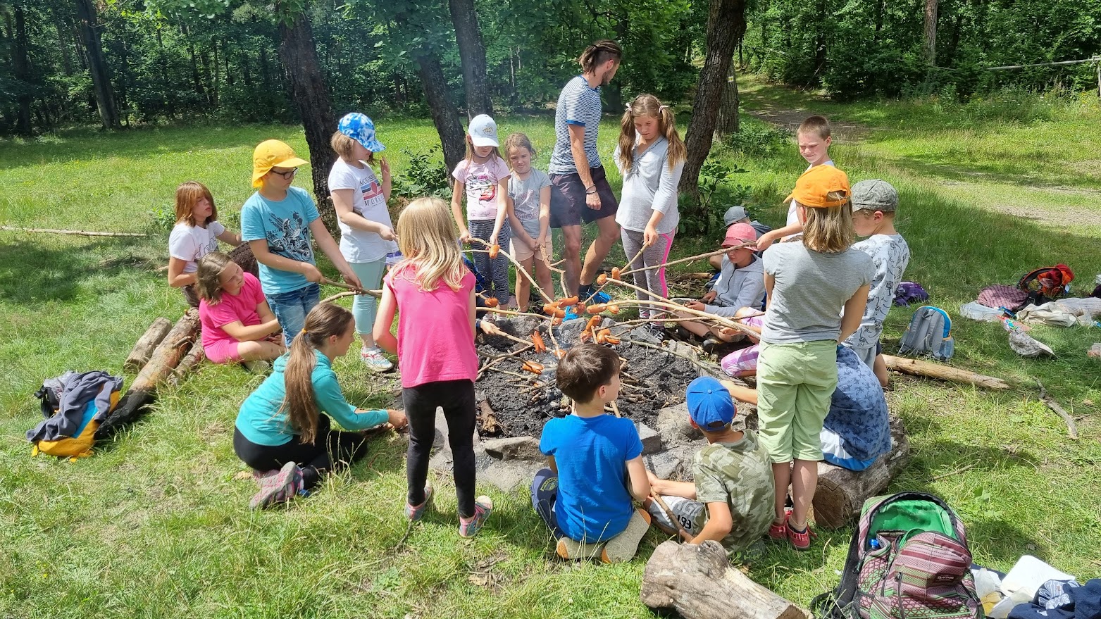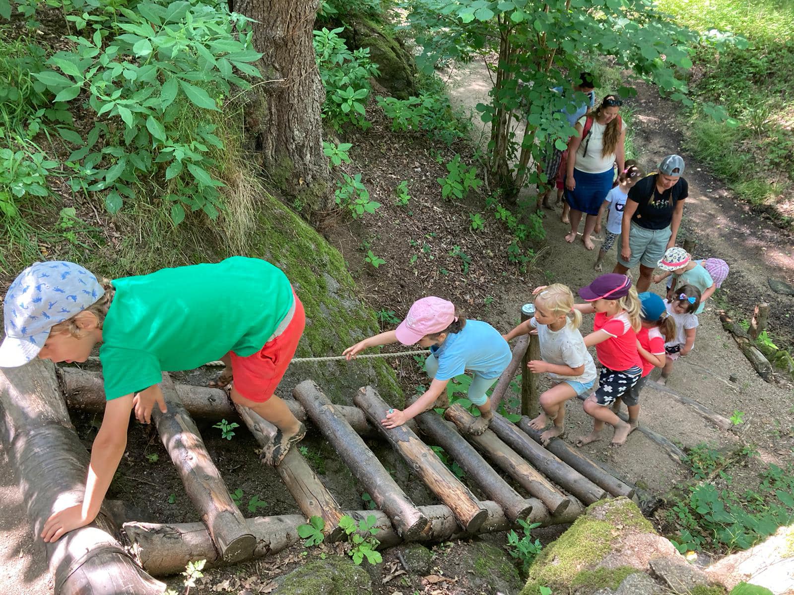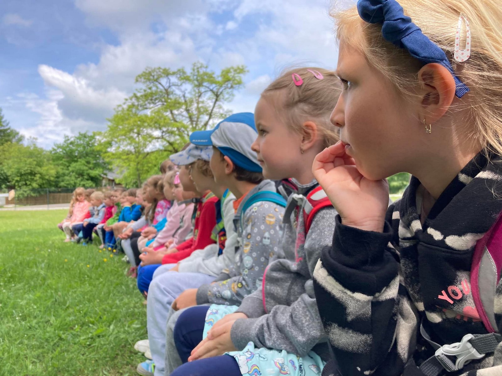 Každý den jsme vyrazili na procházku a užívali si sluníčka. A když občas sprchlo, vůbec nám to nevadilo. Hodně času jsme strávili v lese, kde jsme si povídali s lesním pedagogem panem Máchou. Dozvěděli jsme se spoustu zajímavého o lese, zvířátkách a jejich stopách a také jsme měřili stromy. Náramně jsme si to užili, moc děkujeme.