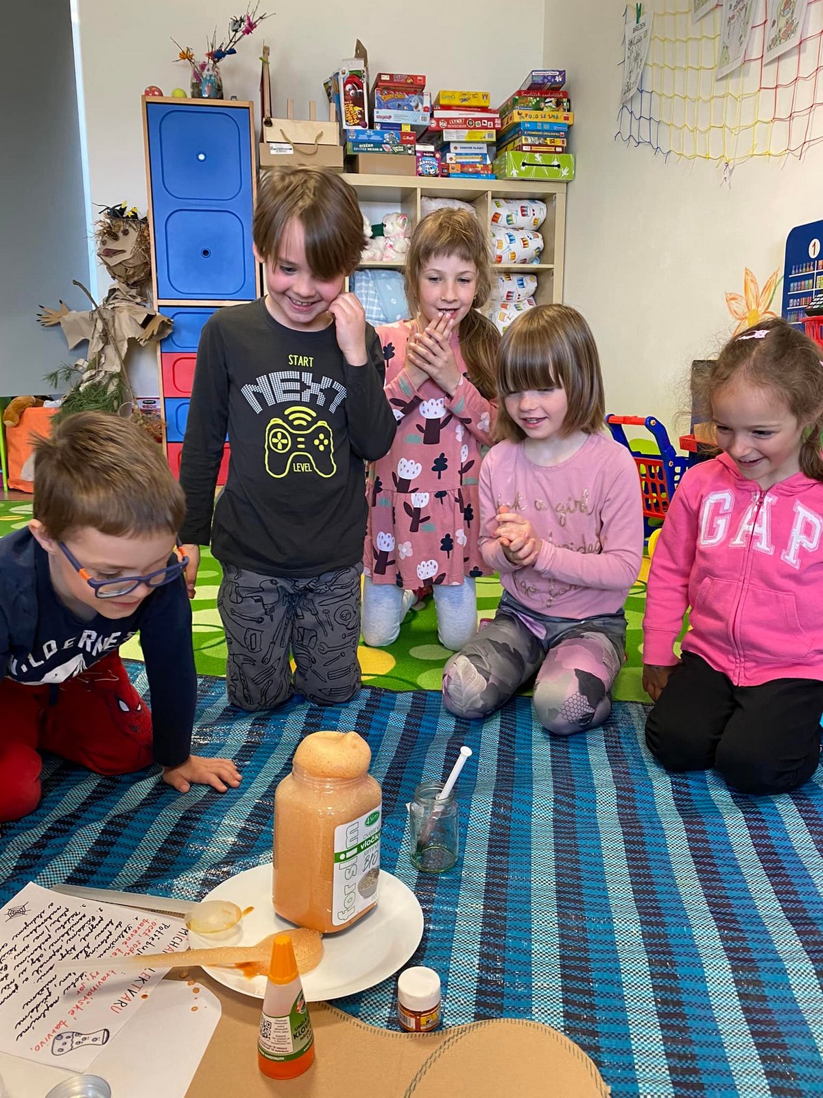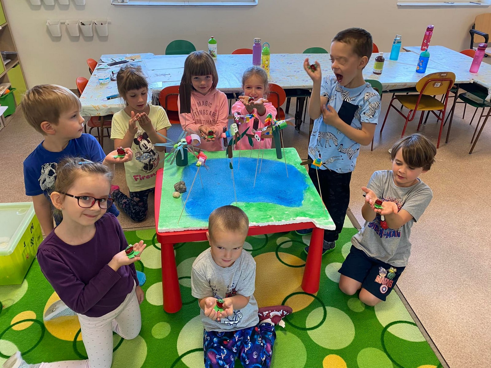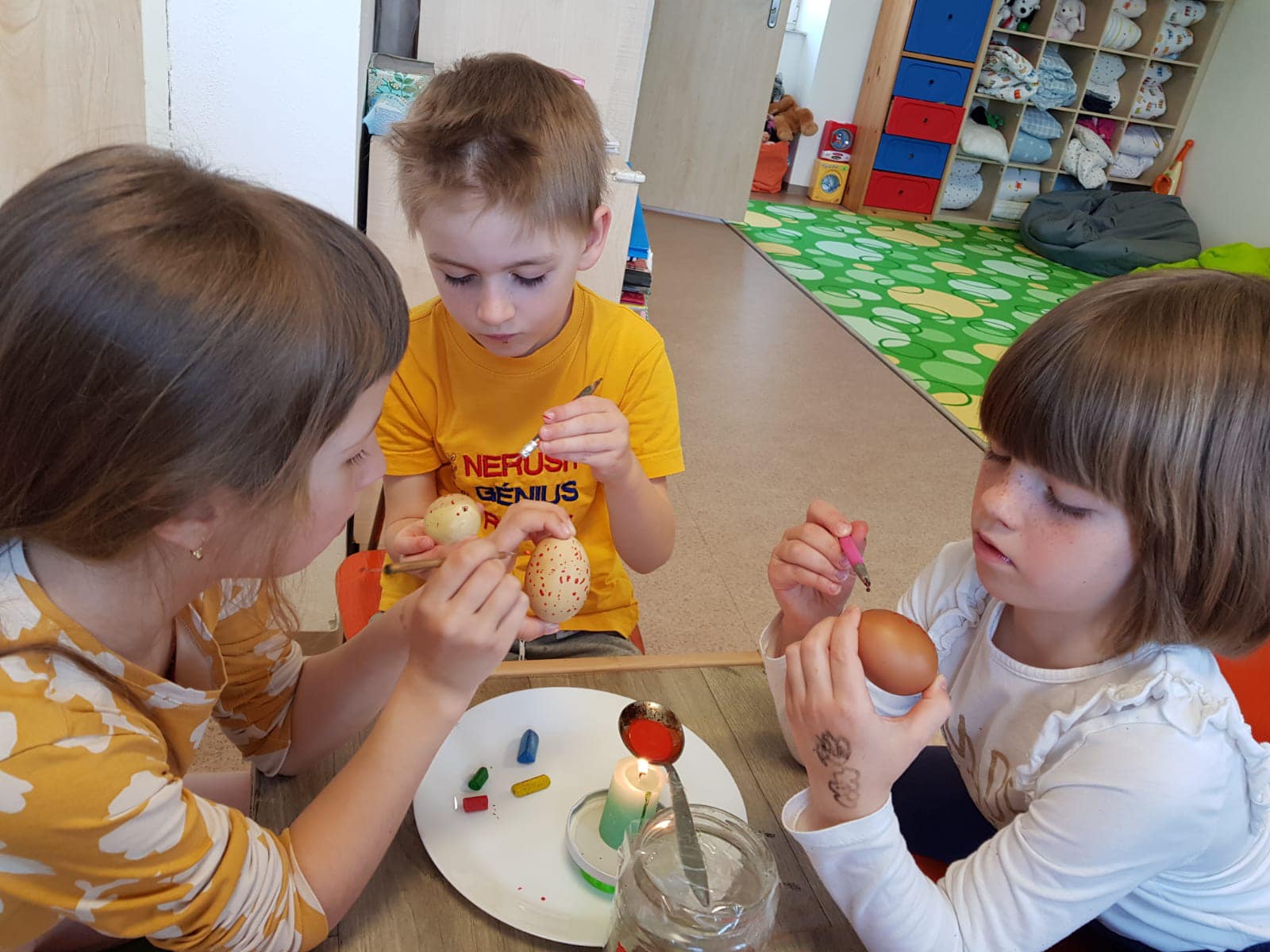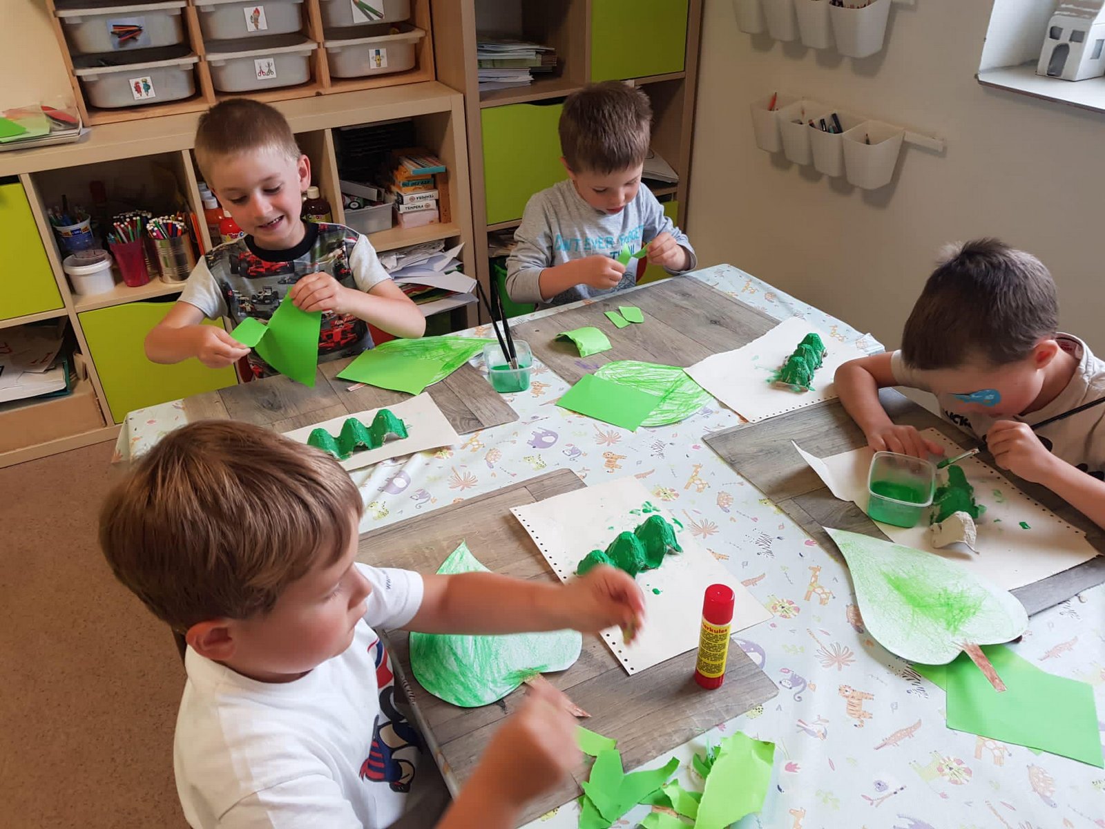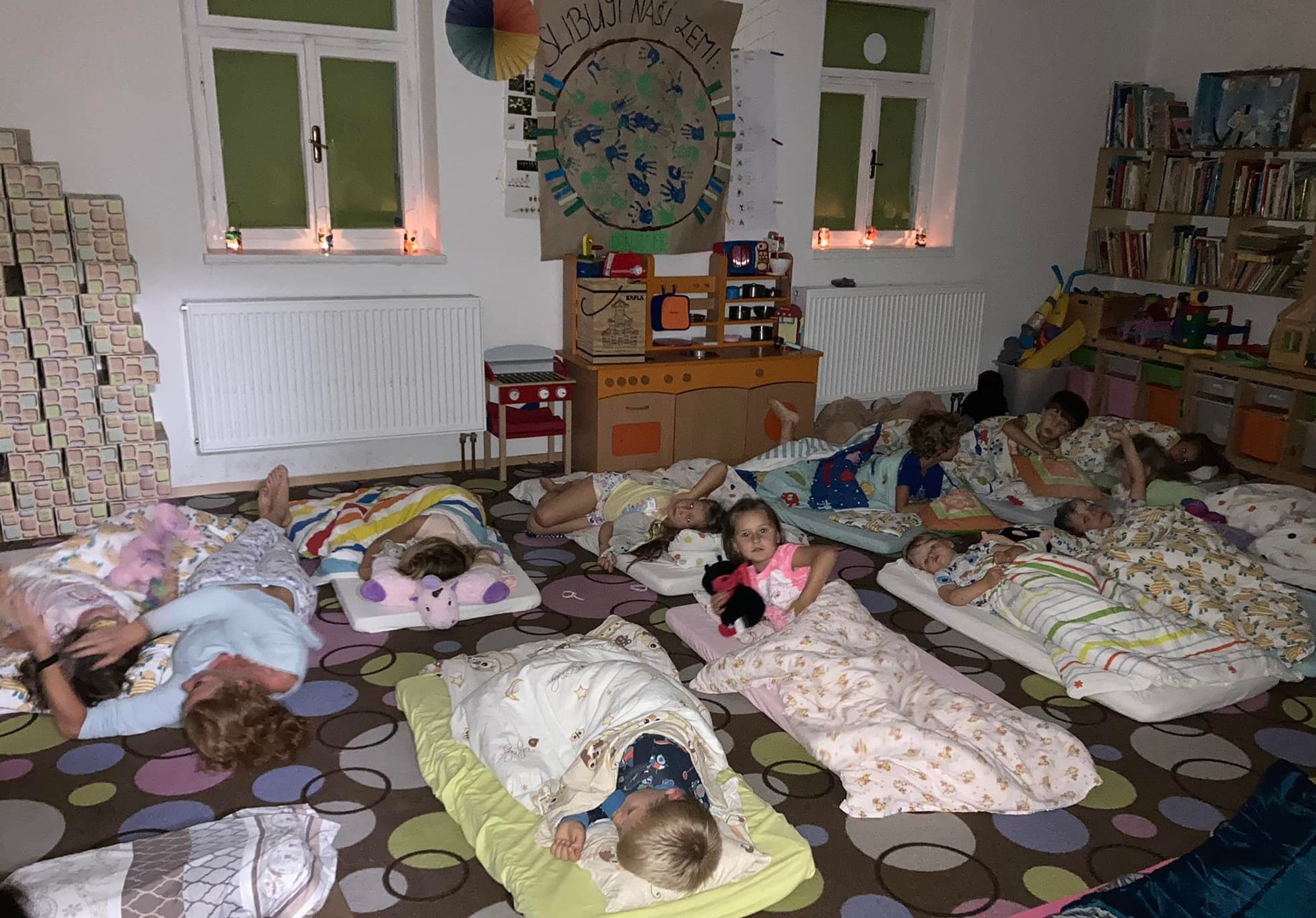 Žlutá Čápátka strávila „ve školce“ den i celou noc a byla moc statečná při neutichající bouřce. A ze zelených Čápátek se stali indiáni…