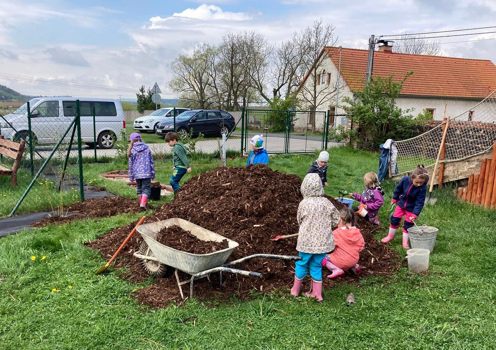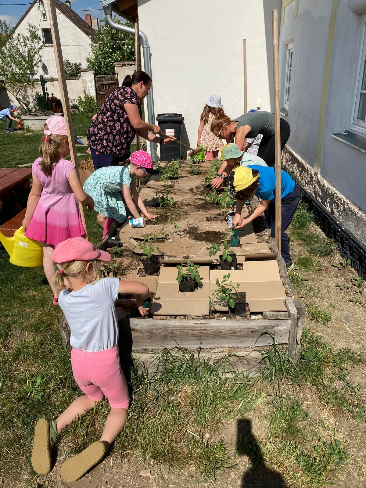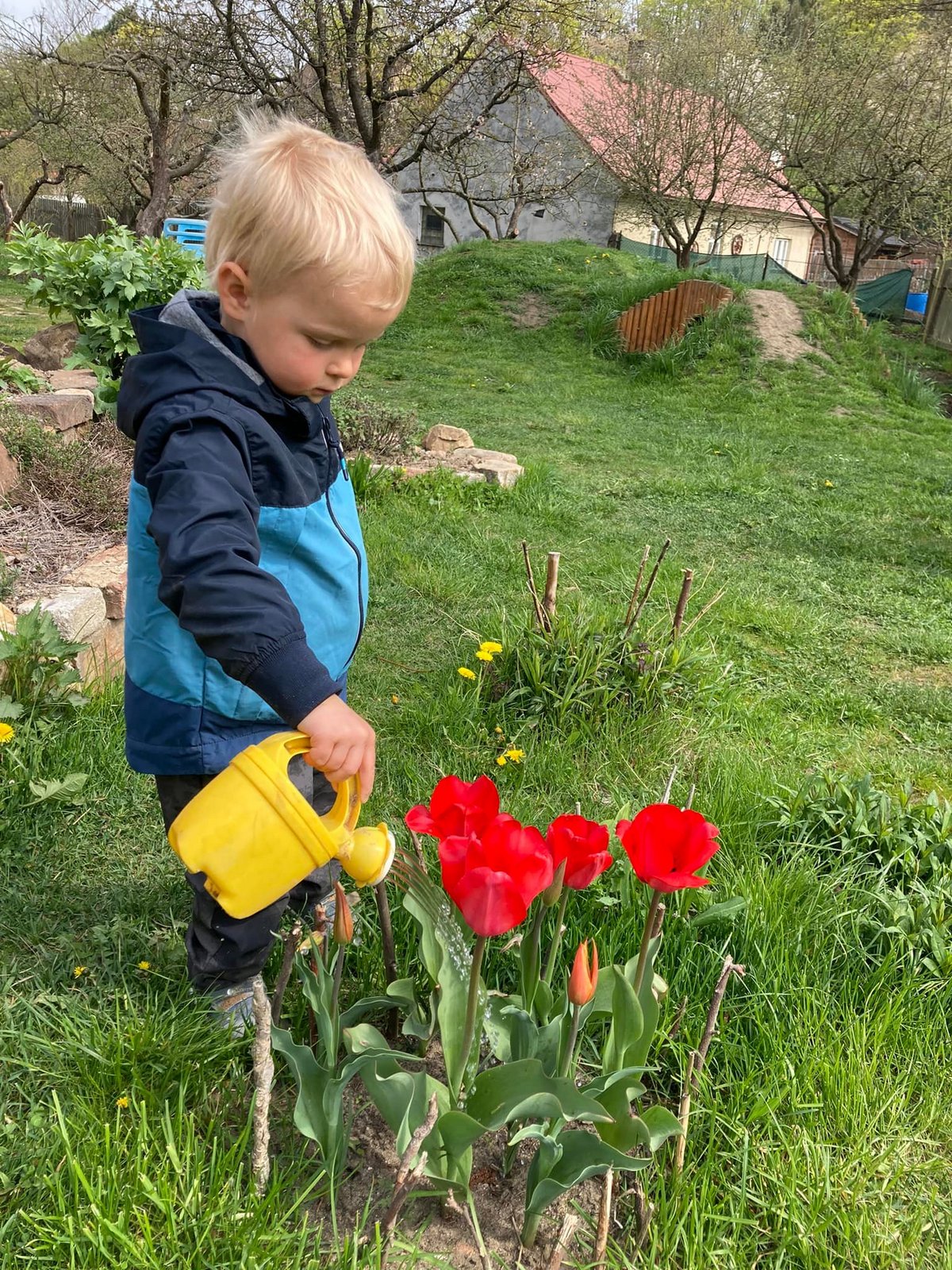 S velkou chutí jsme se vrhli do jarních prací na zahradě. Trhali jsme pampelišky do pampeliškového medíku, zalévali jsme kytičky, přesazovali rajčátka a už se těšíme na dobroty, které nám na zahrádce vyrostou.