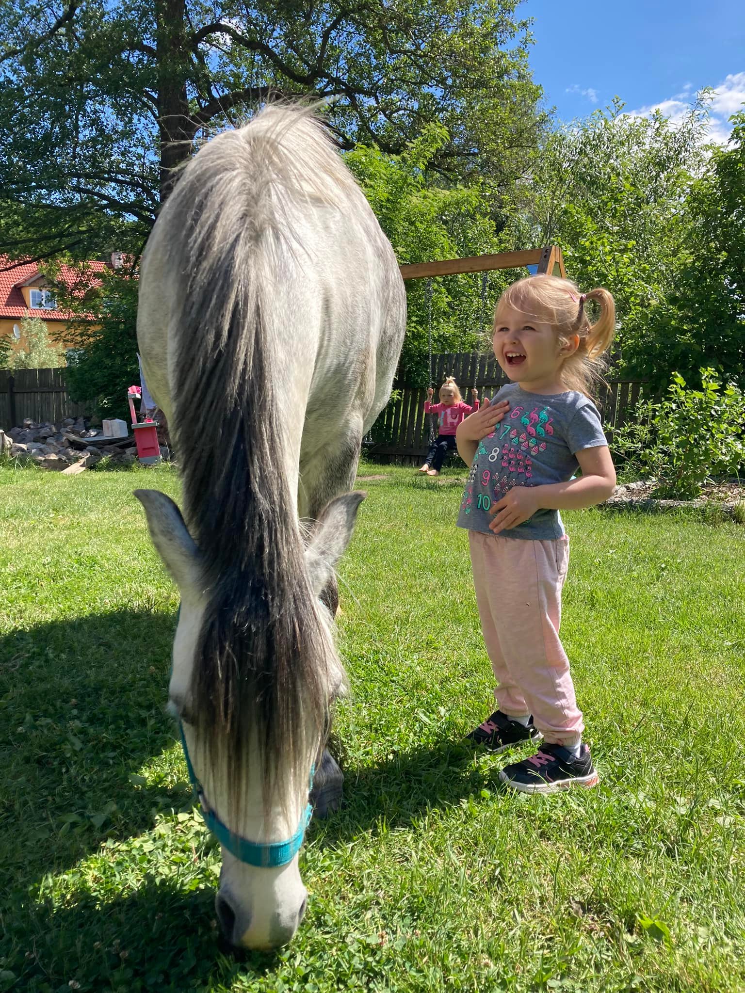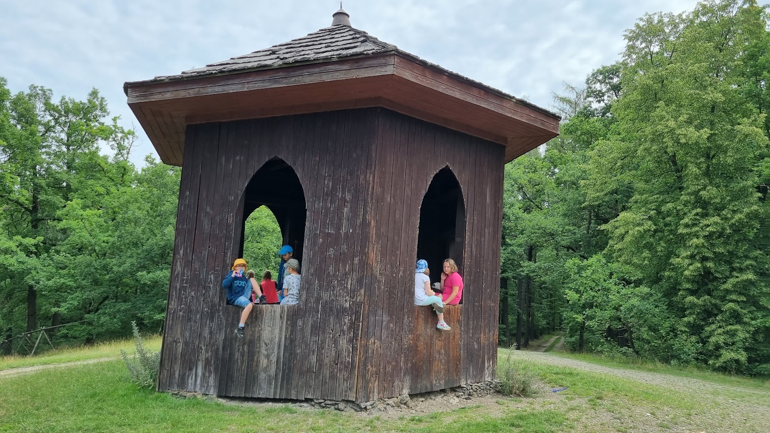 Když jsme si pak chtěli odpočinout od silnic a městského shonu, vyrazili jsme do okolí k rybníku, do lesa, … Ať je horko či deštivo, hrátky v lese a na zahradě se zvířátky nikdy neomrzí.
