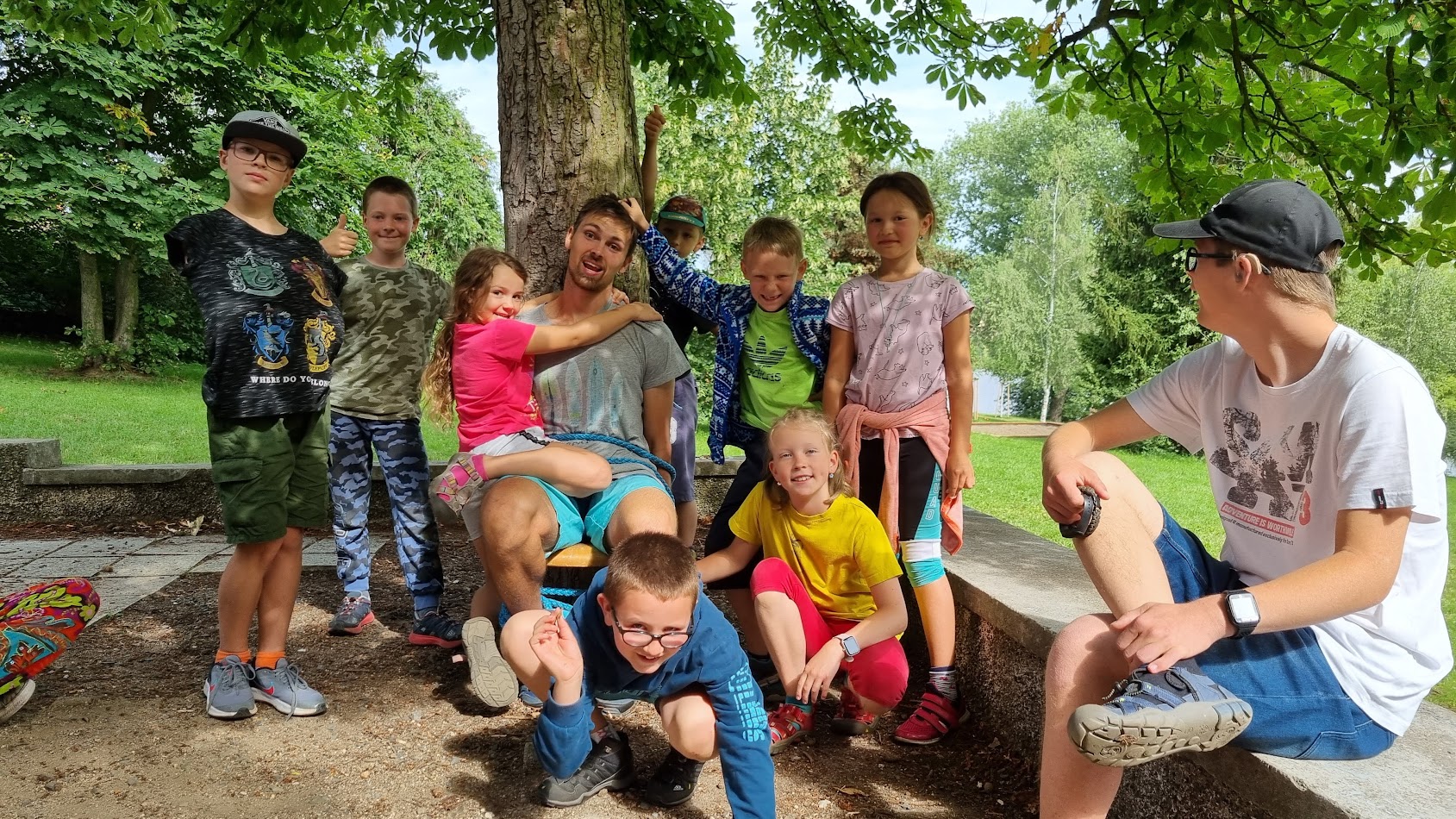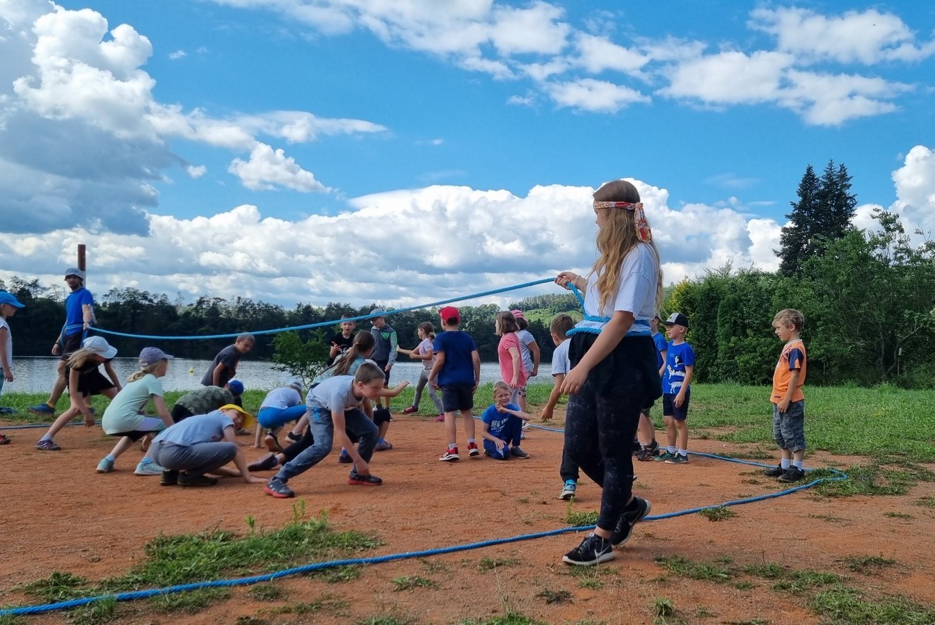 Ve druhém táborovém týdnu jsme se pro změnu přesunuli do Bradavic. Čekala tam na nás úžasná kouzelnická dobrodružství včetně lítání na koštěti a vaření kouzelných lektvarů. Podnikli jsme výpravu do kouzelného lesa s cílem zachránit jednorožce, vyráběli jsme si kouzelnickou hůlku a zkoušeli vedoucí přeměnit na žáby, což se nám bohužel nepodařilo. 🙂 Ve čtvrtek jsme se vydali do hlubin země hledat Brumbálův kámen mudrců. Pomocí tohoto kamene by se člověk mohl stát nesmrtelným. Kámen se měl vyskytovat v lokaci Koněpruských jeskyň, tak jsme se tam vypravili. A hádejte co, našli jsme ho! A teď tu budeme na pořád! I když, asi to bude výzva …