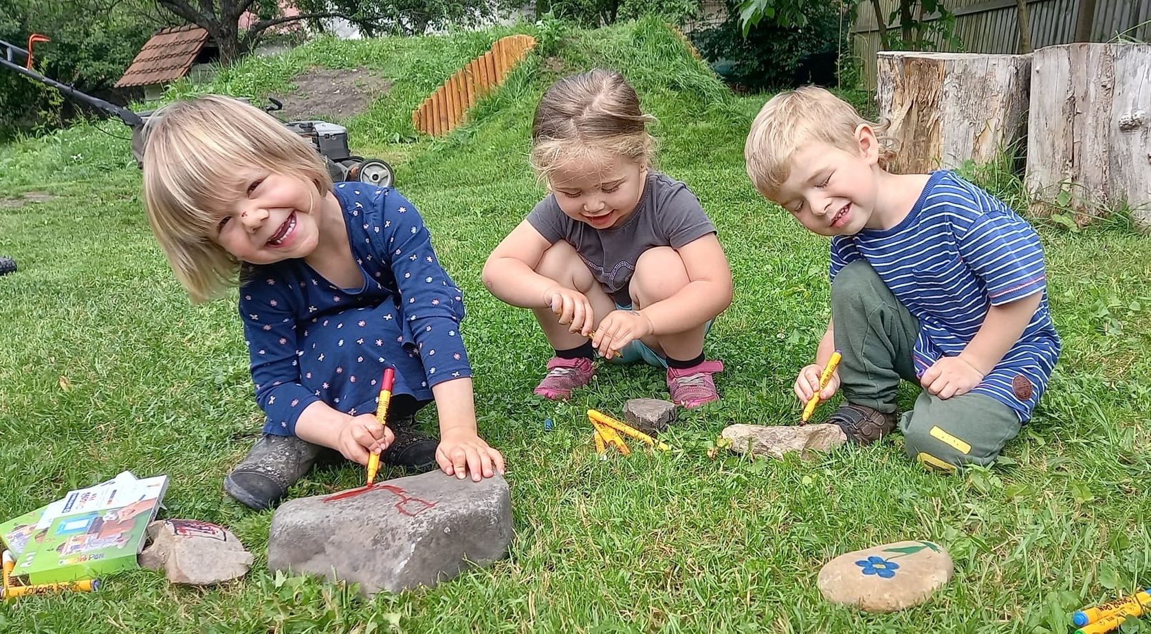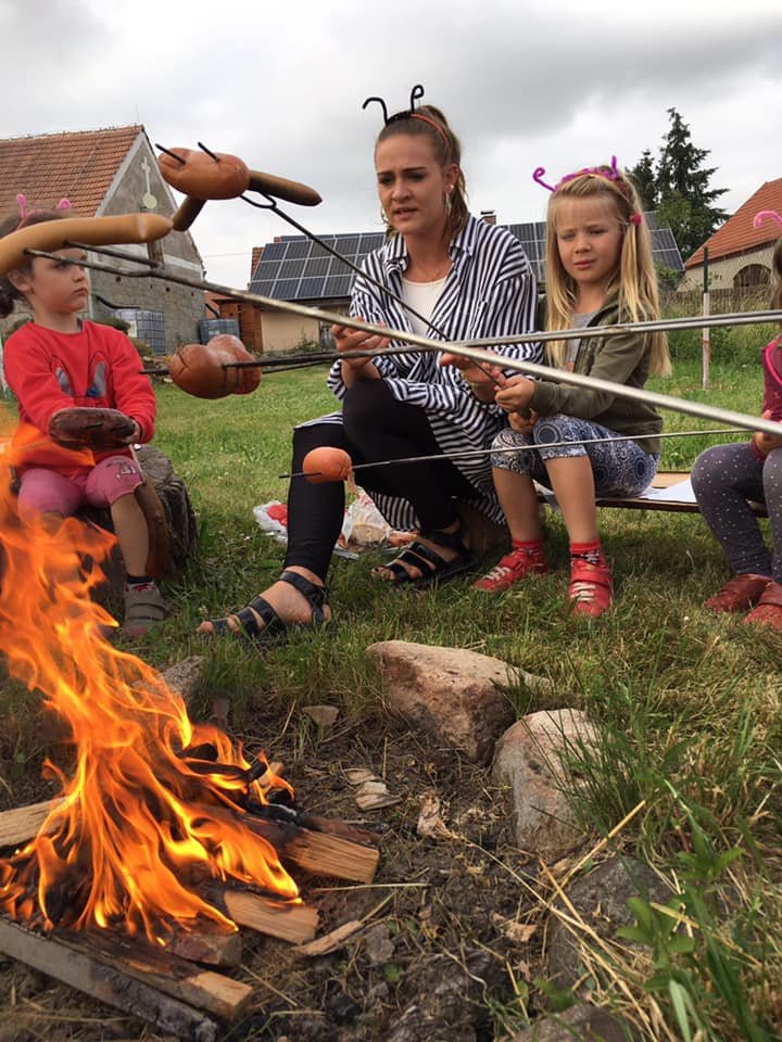 Červen začal svátkem dětí, dnem plným zábavy a her. Počasí nám tento měsíc přálo, takže o zážitky a výlety nebyla nouze. Měsíc plný sluníčka jsme si s Čápátky náramně užili. Koupali jsme se na koupališti, v bazénu a bazénku, chodili jsme pozorovat, poznávat a hrát si do přírody, užili jsme si svízelovou „válku“, malovali jsme (nejen) na kamínky, vyráběli jsme z keramické hlíny, lepili a stříhali jsme zvířátka, na která jsme si i zahráli, tvořili jsme velké bubliny, sbírali bezinky na čajík, pochutnali si na lesních jahůdkách a třešničkách, užili jsme si zpívánky s Kubou, navštívili jsme mláďátka, kozičky a nás na oplátku navštívila paní želvička, měli jsme i psí návštěvu, naše úžasná teta Evička nám udělala krásnou přednášku o včeličkách a o včelím úlu, vydali jsme se na návštěvu k hasičům a na dobrodružnou cestu za pokladem, přespávali ve „školce“ a opékali vuřtíky, slavili jsme narozeniny a také jsme se rozloučili se školním rokem a předškoláčky. Krásné léto všem. 🙂