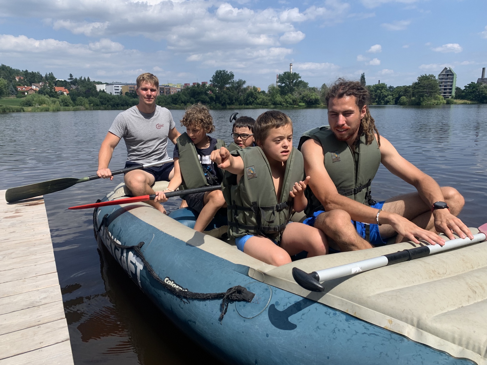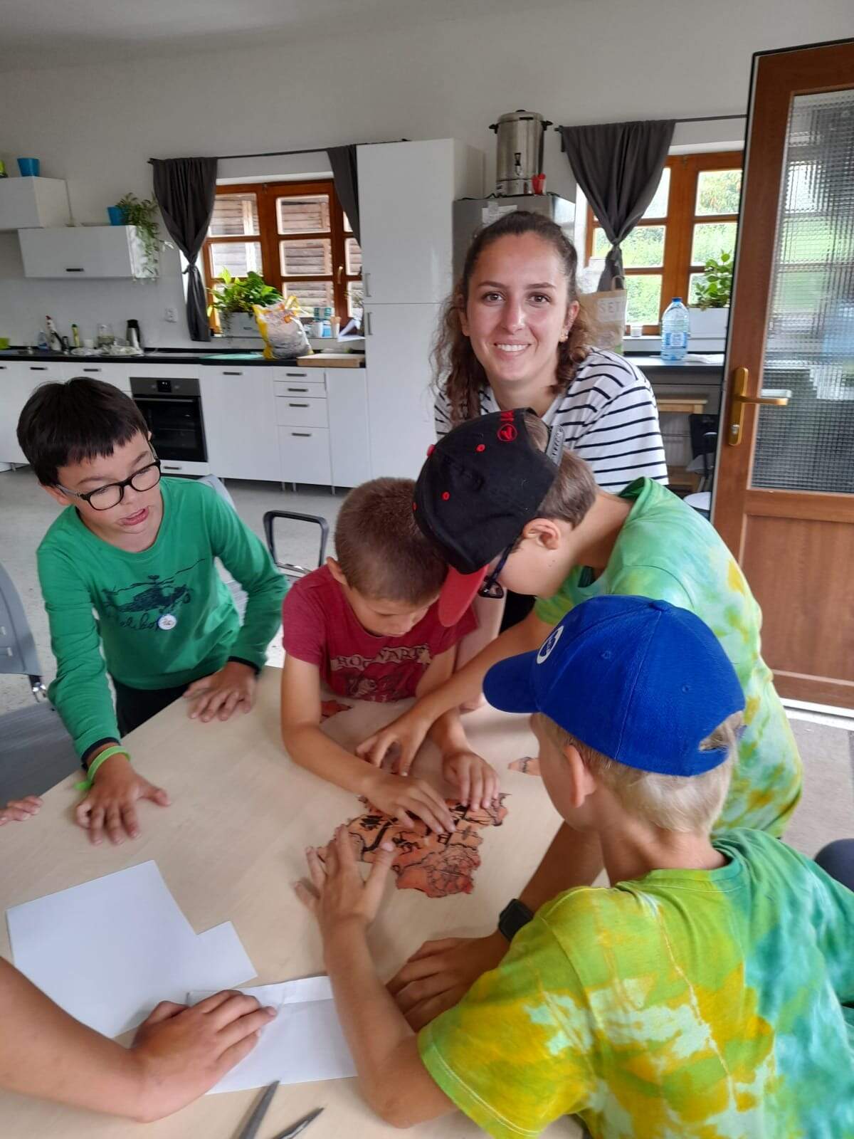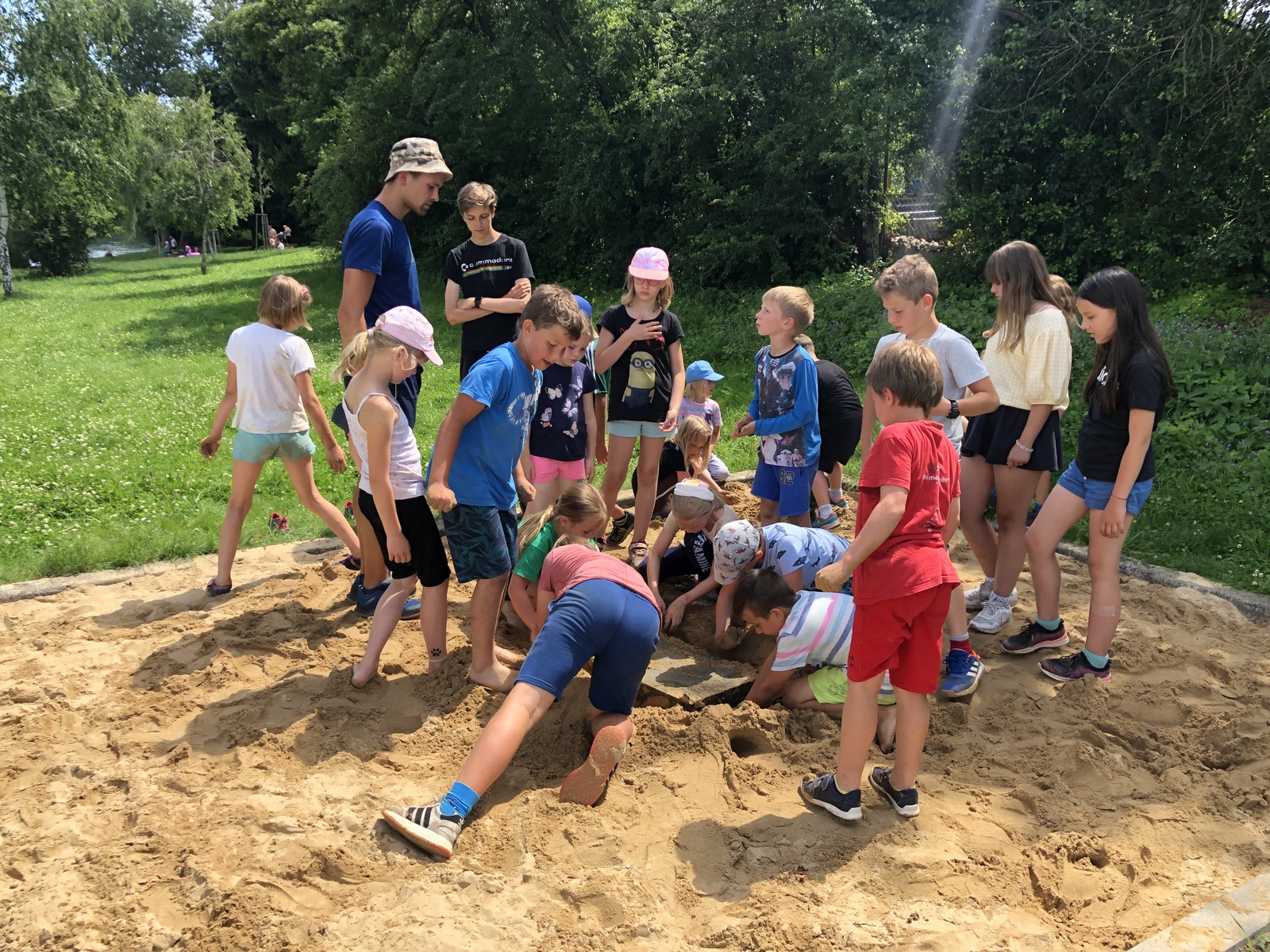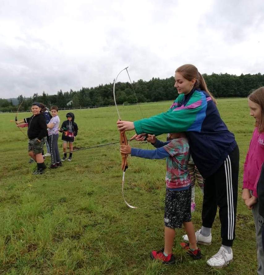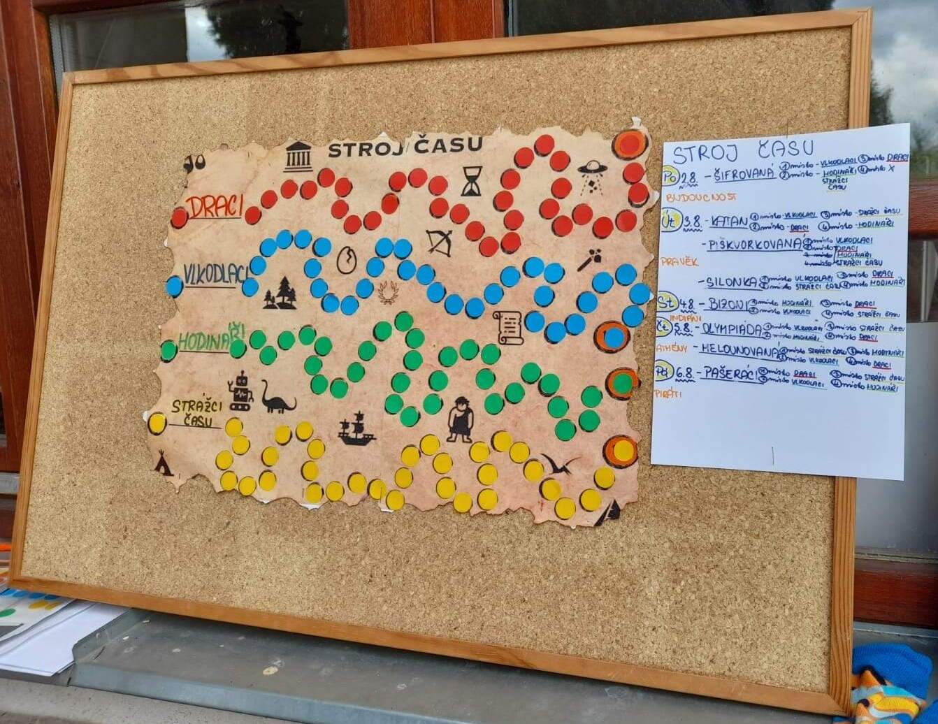 Druhý den jsme se podívali do pravěku, vyráběli jsme výrobky z hlíny, hráli hru KATAN, při které jsme se pokoušeli získat všechny nezbytné materiály pro stavbu obydlí. Třetího dne jsme se ocitli u indiánů, nesměla chybět vyjížďka na koních, hon na bizony, střelba z luku a výroba indiánských čelenek. Dne čtvrtého jste zavítali na první olympijské hry a v našich celotáborových týmech plnili olympijské disciplíny, následoval kvíz a melounovaná. Poslední den nás navštívili piráti, zahráli jsme si na pašeráky pokladů a získali poslední kusy mapy pro svůj tým a s její pomocí objevili ztracený poklad.