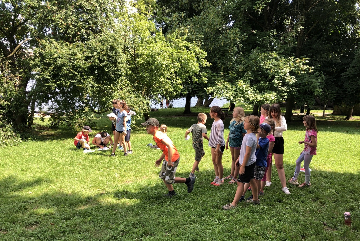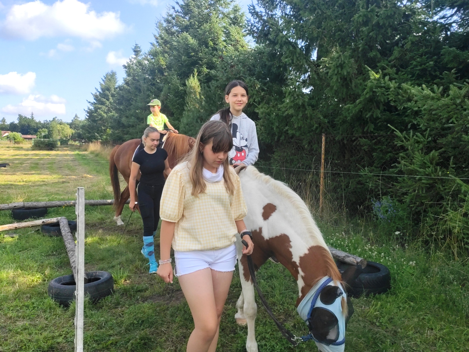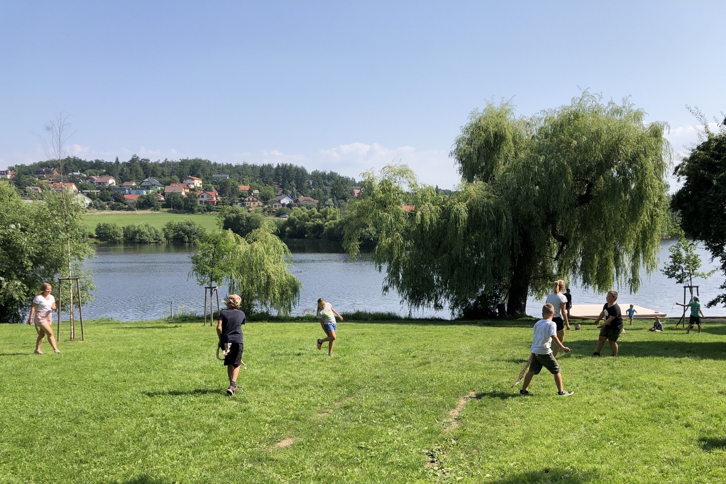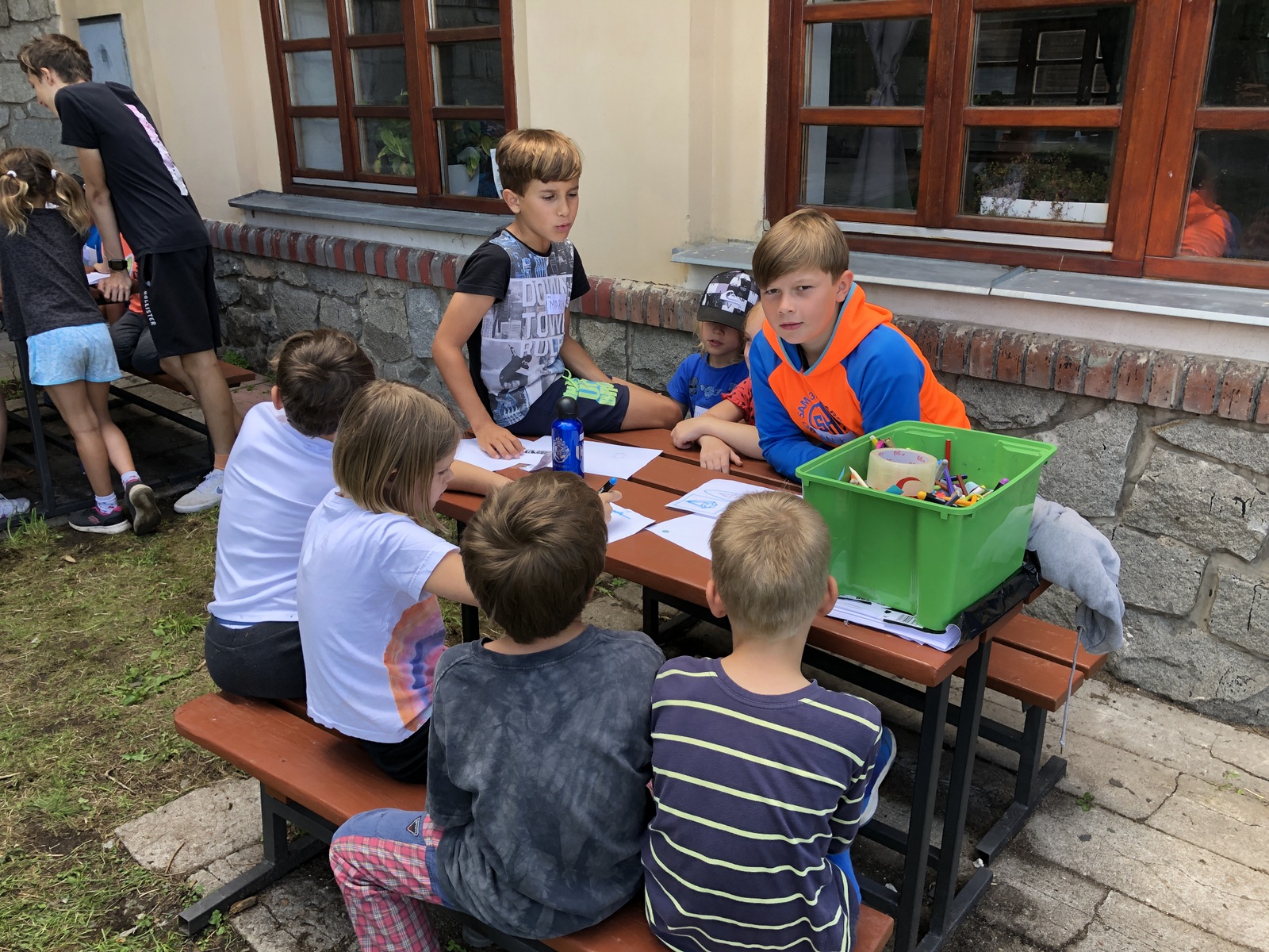 Druhý den jsme se podívali do pravěku, vyráběli jsme výrobky z hlíny, hráli hru KATAN, při které jsme se pokoušeli získat všechny nezbytné materiály pro stavbu obydlí. Třetího dne jsme se ocitli u indiánů, nesměla chybět vyjížďka na koních, hon na bizony, střelba z luku a výroba indiánských čelenek. Dne čtvrtého jste zavítali na první olympijské hry a v našich celotáborových týmech plnili olympijské disciplíny, následoval kvíz a melounovaná. Poslední den nás navštívili piráti, zahráli jsme si na pašeráky pokladů a získali poslední kusy mapy pro svůj tým a s její pomocí objevili ztracený poklad.
