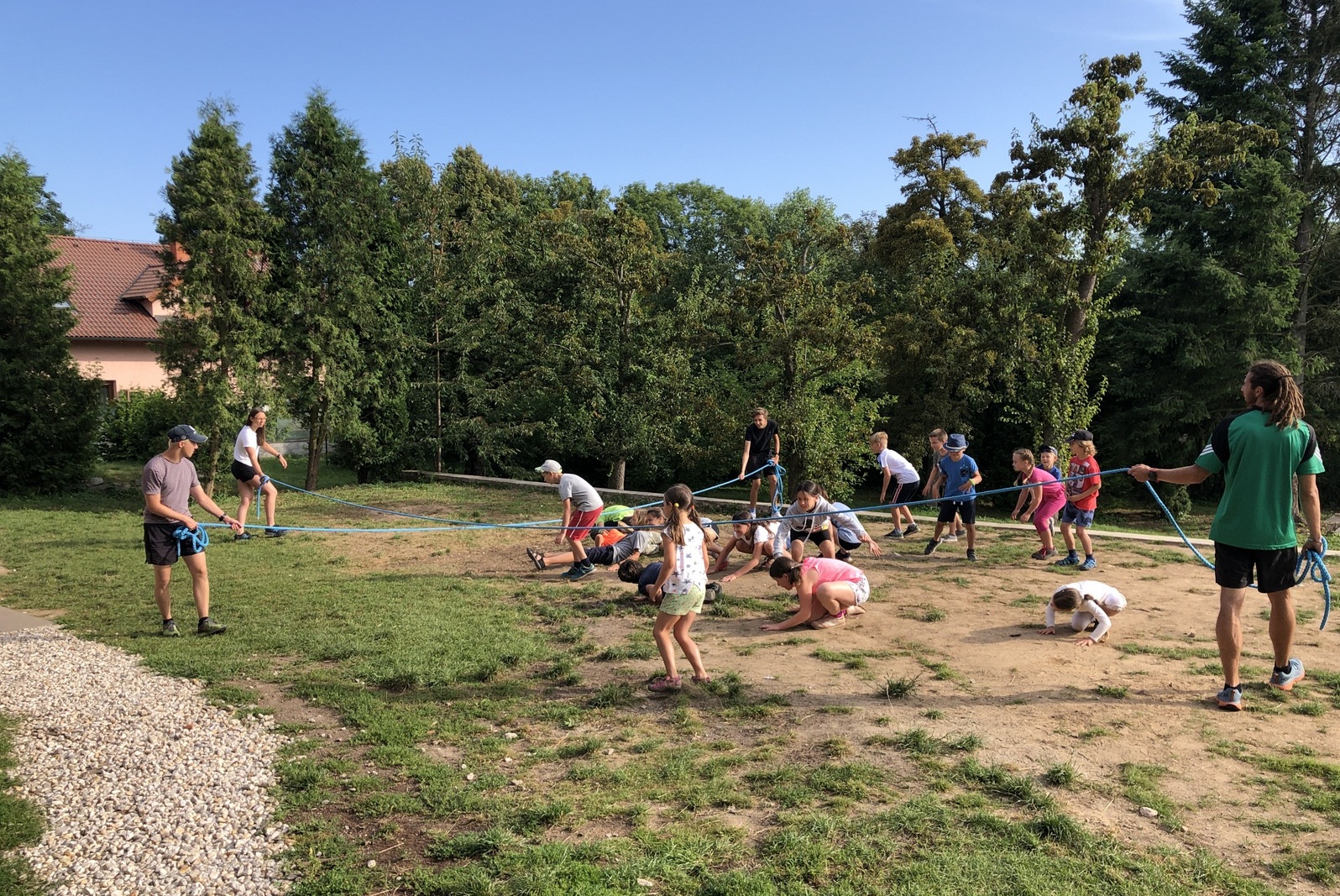 První táborový týden byl nabitý dobrodružstvím až k prasknutí. Prodírali jsme se džunglí plnou nástrah, opatrně našlapovali, abychom unikli pozornosti divé zvěře. Museli jsme překonat řadu překážek, nejvíce nám dalo zabrat slanění přes řeku plnou piraní, brodění se přes hluboké močály a nenápadné plazení s úhybnými manévry skrze údolí šelem.