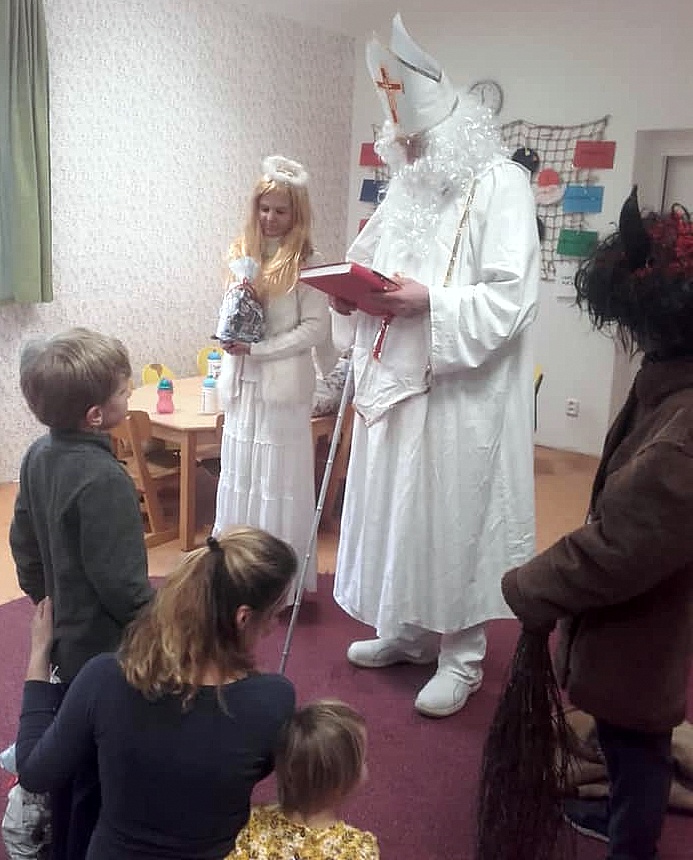 V pátek 4. prosince navštívil Čápata Mikuláš s čertem a andělem. Děti si pro ně připravily básničku a přáníčka.