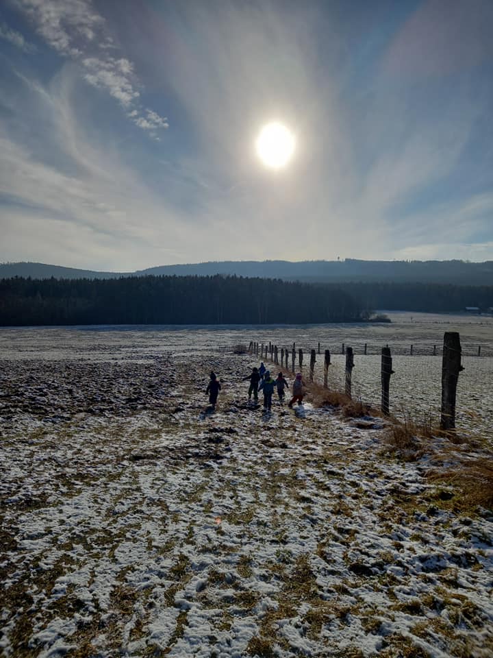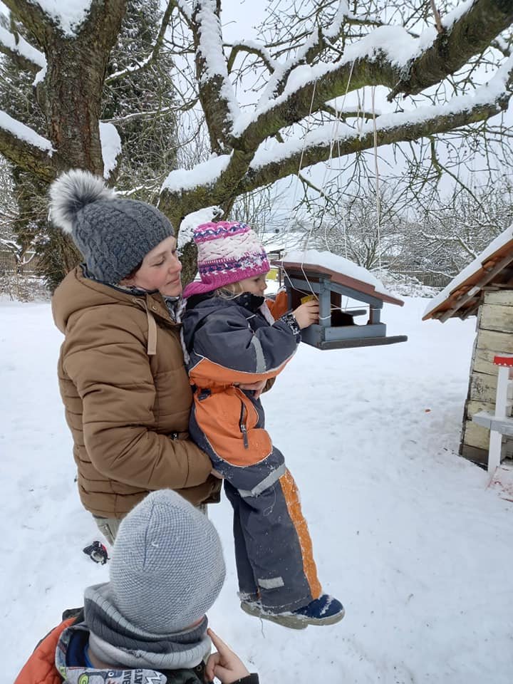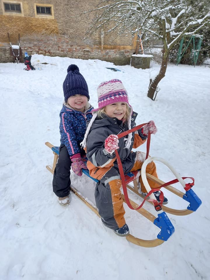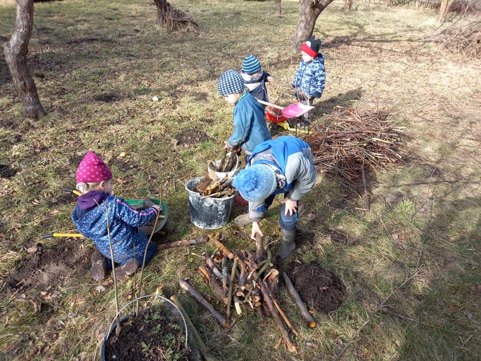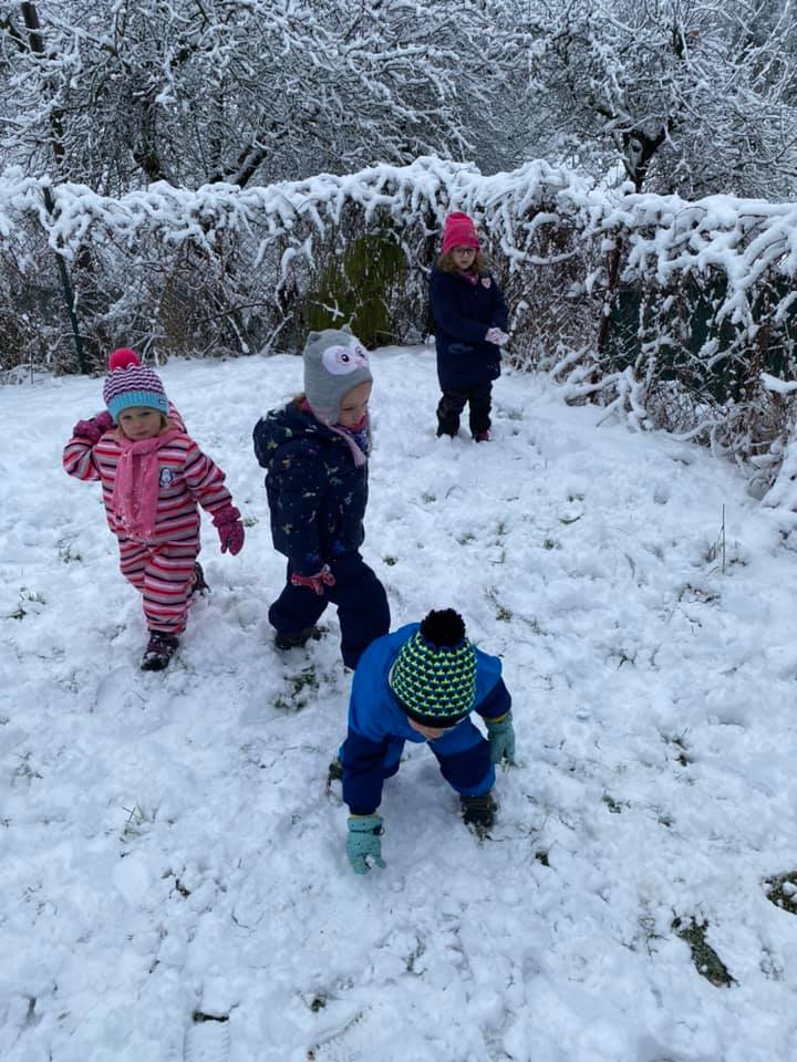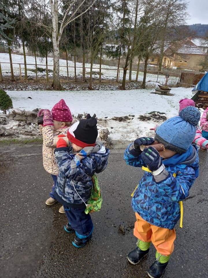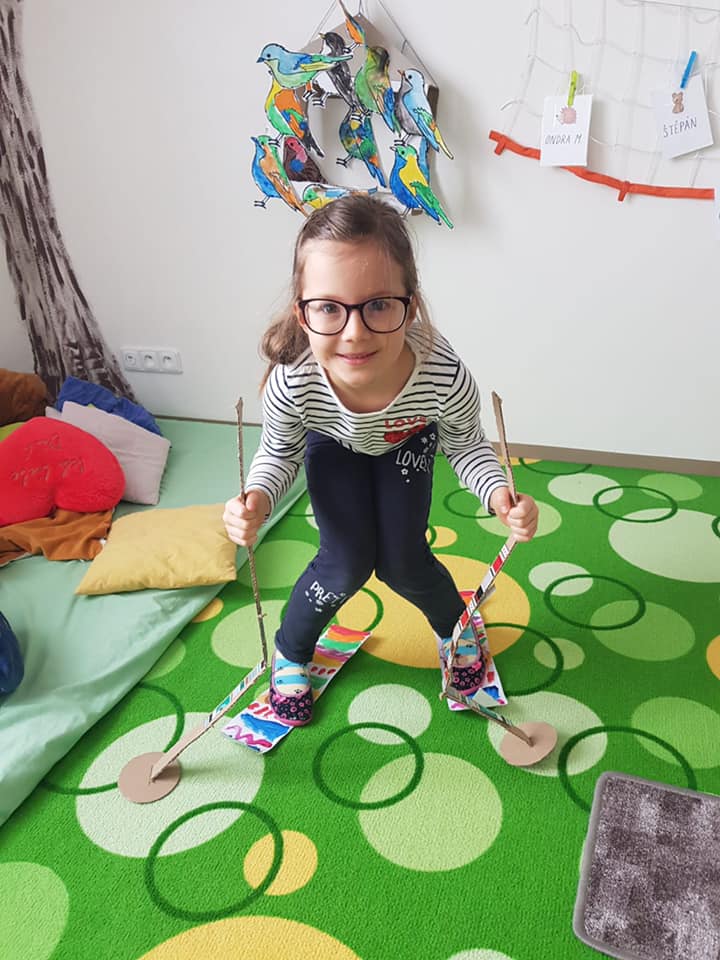 Únorové počasí bylo velmi rozmanité – tuhá mrazivá zima a následně slunečné skoro jarní dny. Čápata si užila hrátky na sněhu, pozorování stop, krmení ptáčků, ale také první práce na zahrádce.