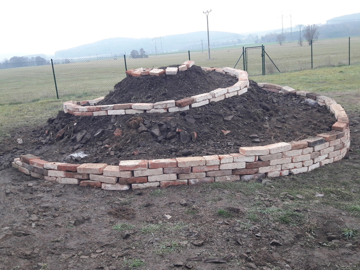 V Budínku budeme tento týden jednu větší spirálu budovat. Základ máme: velká hromada kamení a zbylé suti. Ta nám výborně poslouží jako základ pro další úpravu a postupné vrstvení zeminy do několika pater záhonu.