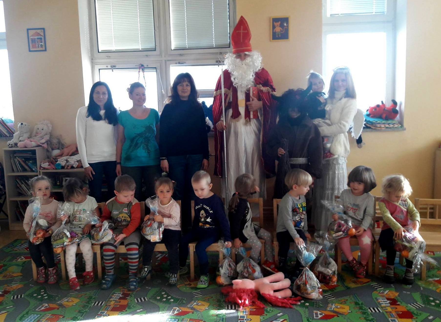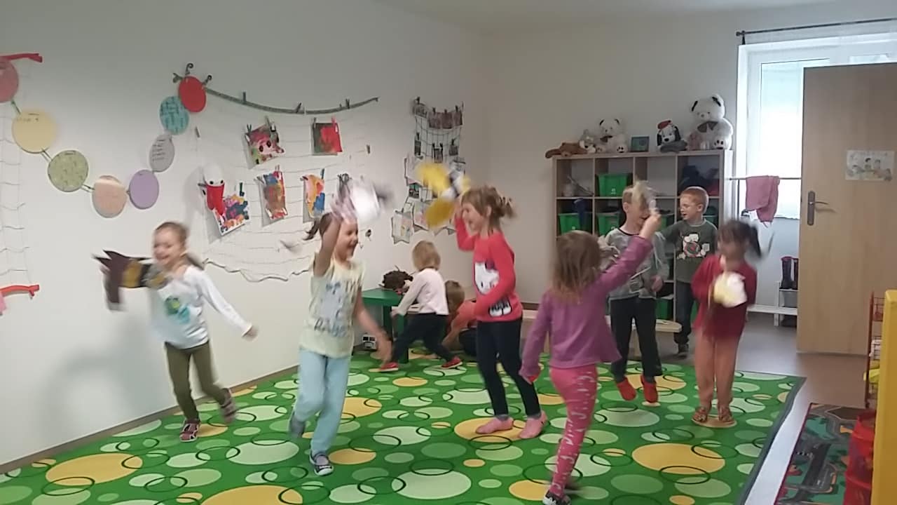 První listopadový týden jsme se věnovali příběhu o svatém Martinovi. Zpívali jsme písničku a hráli hru o jeho putování světem a setkání se žebrákem. Vyrobili jsme krásné koně a přišli na to, že každý v sobě máme kousek Martina i žebráka – každý občas potřebuje pomoc a každý umí pomoci druhému.