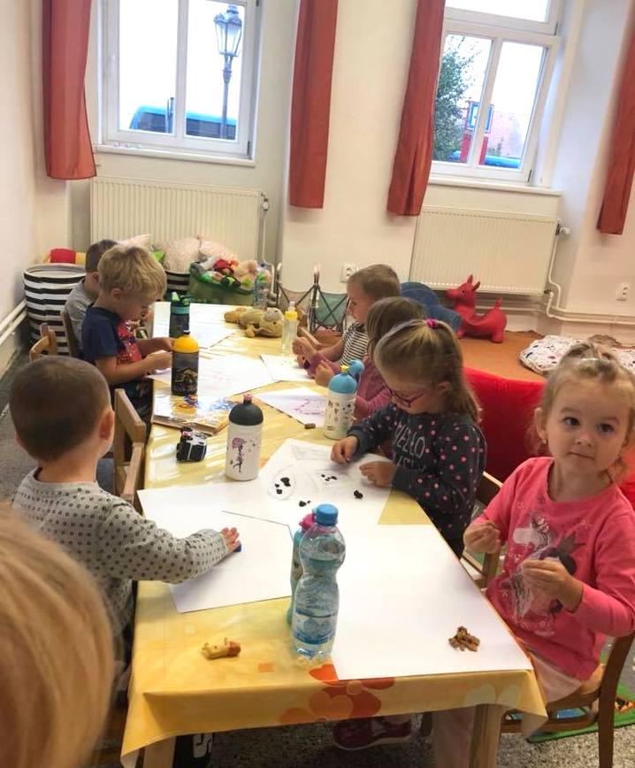 Čápata mají za sebou pestrý podzimní program… poznávání kamarádů, počítání a tvoření s kaštánky, stavění domečků, kreslení, malé úkoly, vytvoření svého sešitu, výlet na náměstí, podzimní procházky přírodou, pouštění draka, stavění dráčka z kostiček, …