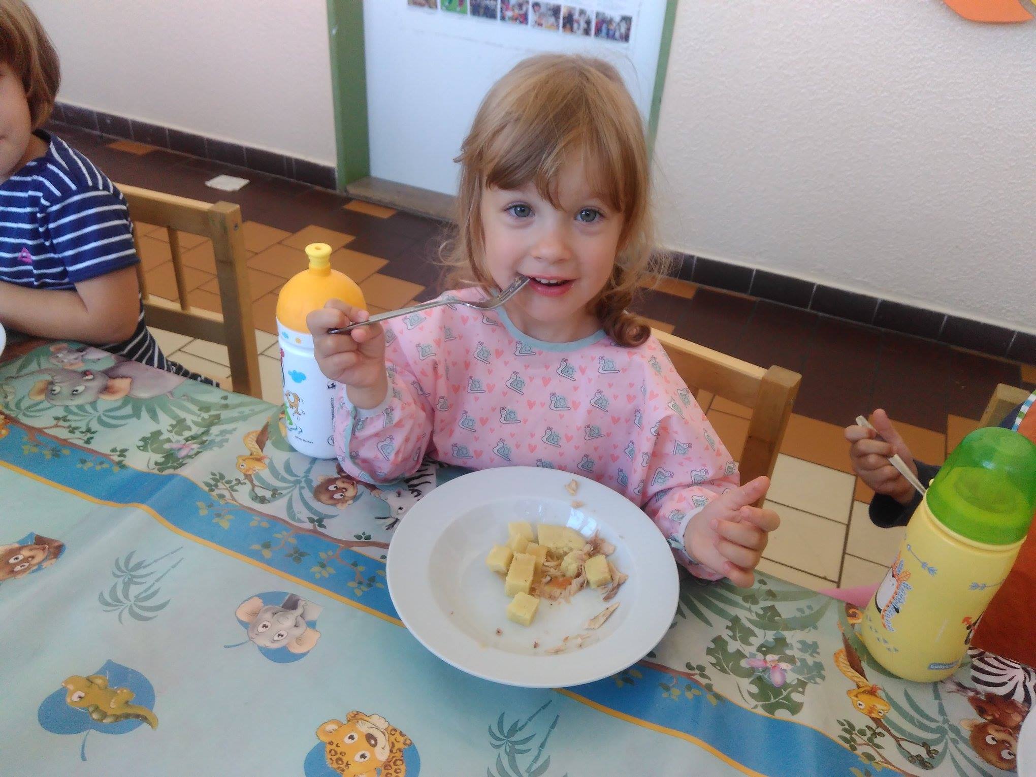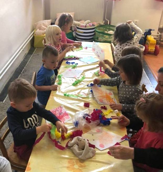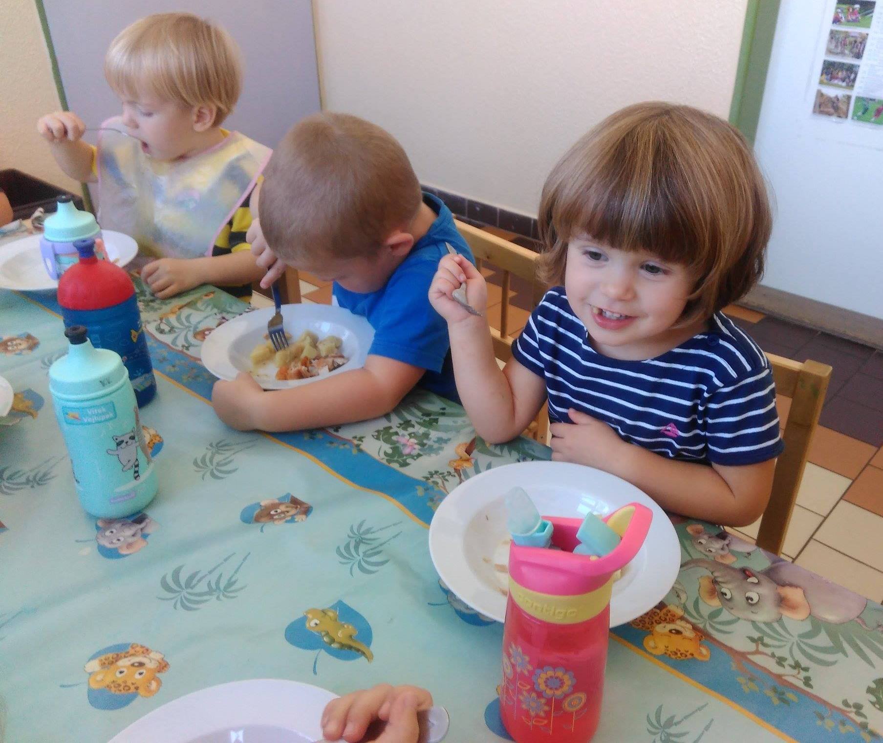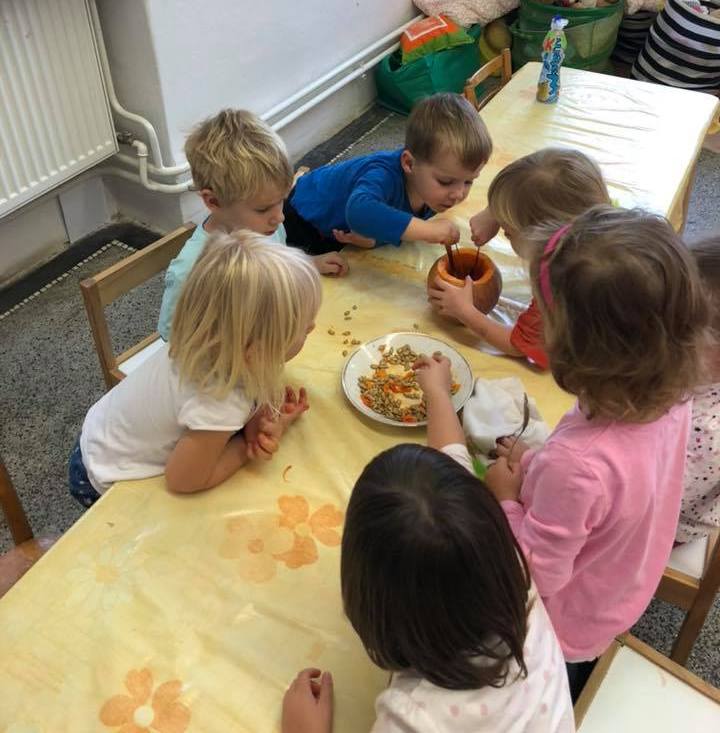 Děti chystají své první hostiny. Postupně doplňujeme o nádobí.