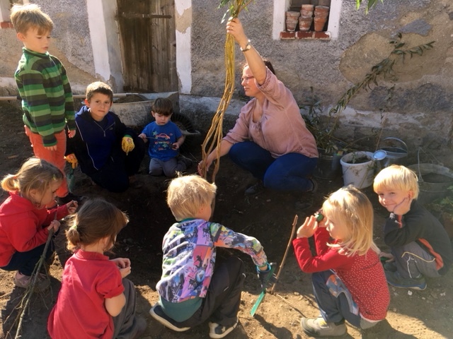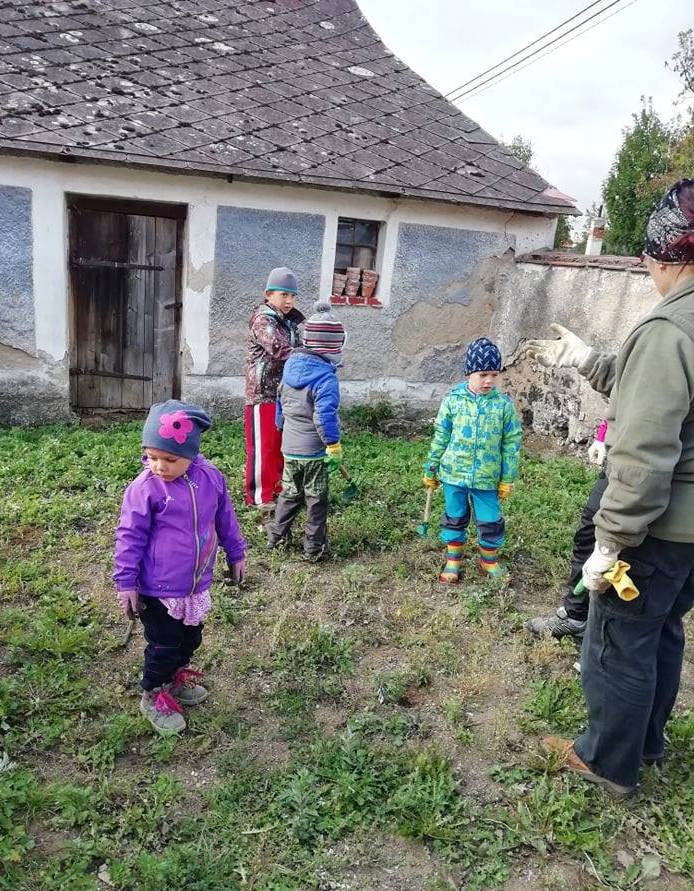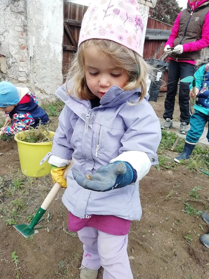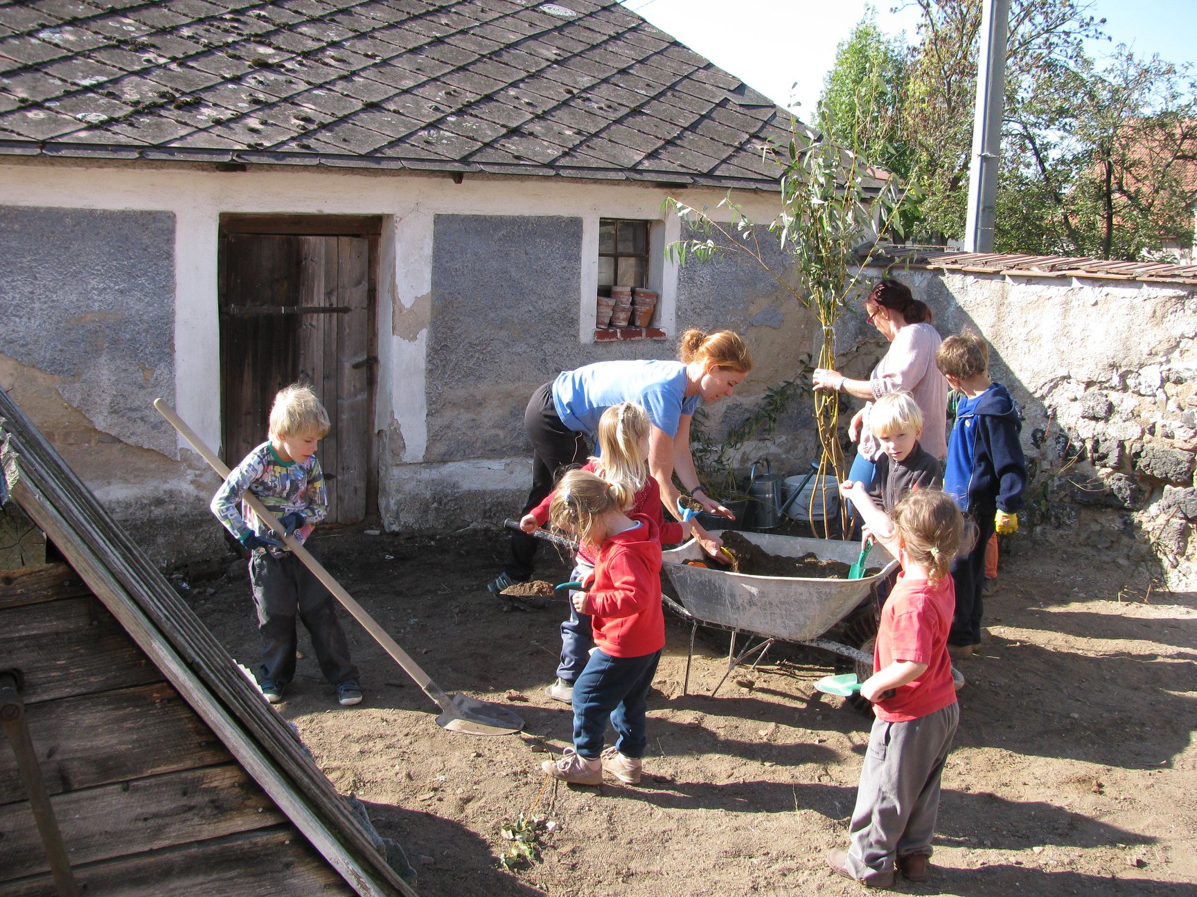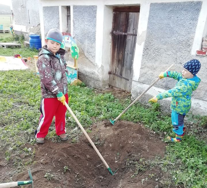 Zahradníček: Každou středu, počínaje říjnem, se celý tým pod vedením Jarky bude věnovat sezónním pracím na zahradě. V říjnu si děti vyberou na zahradě místo, kam pak společně zasadíme vrbičku – náš první stromek.