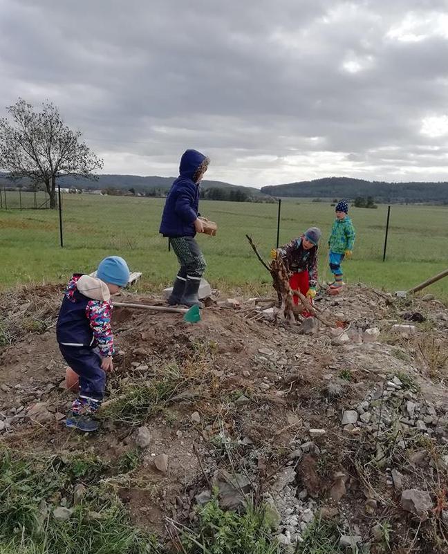 Zasadili jsme náš první stromek! Dětem jsme pomohli zasadit jejich první stromeček – vrbičku. Předškoláci si pak procvičovali prstíky v teepe na zahradě – naší venkovní učebně. Užíváme si venku krásné počasí.