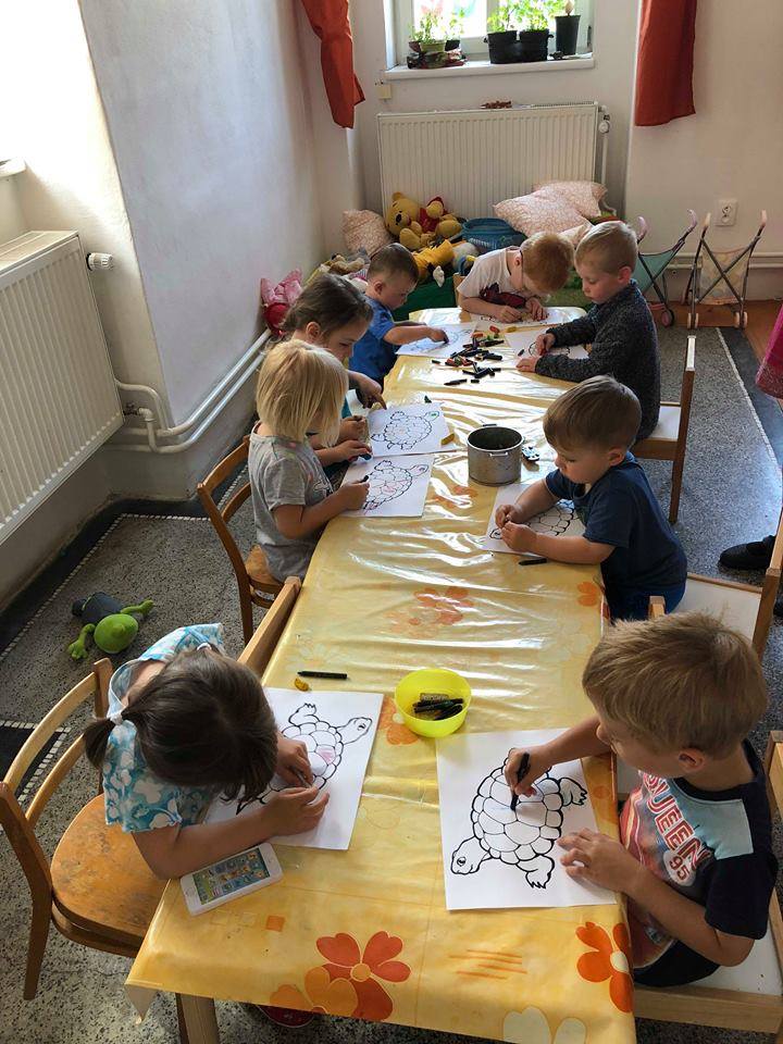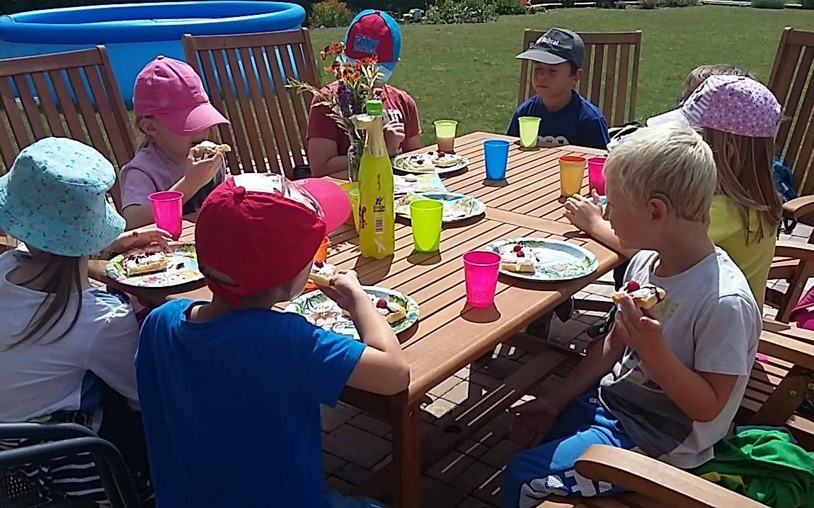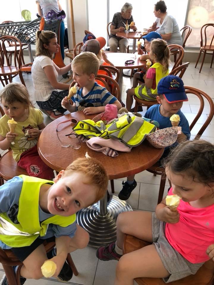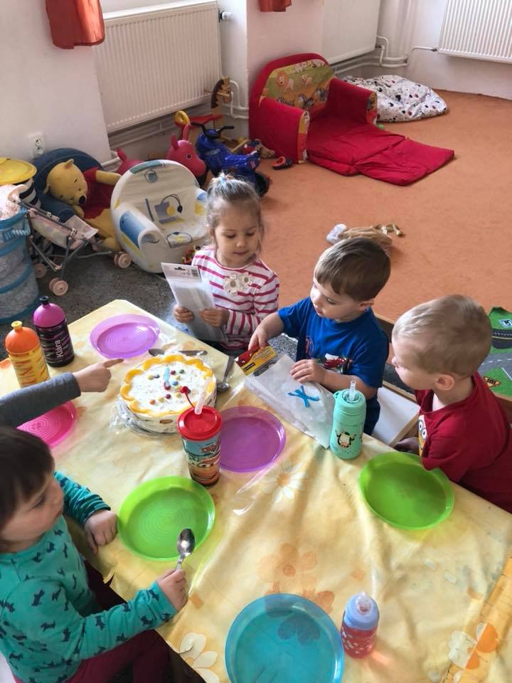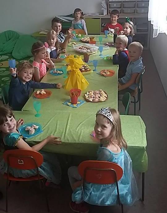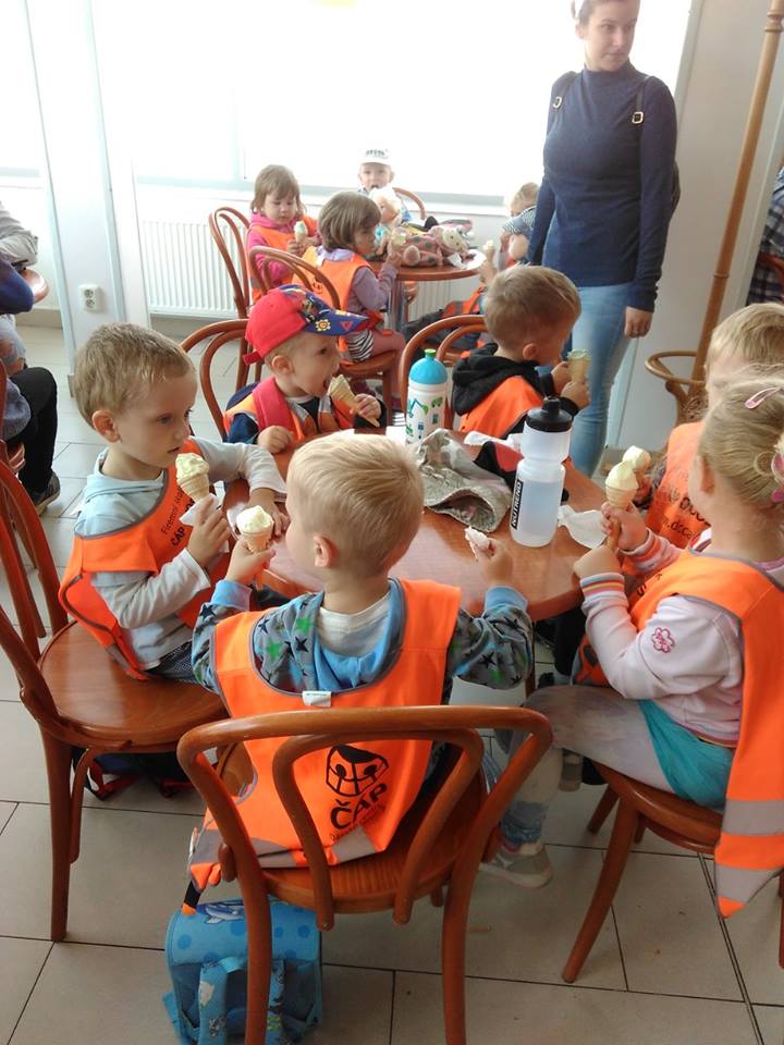 Draka se podařilo vypátrat a přemoct. Elza byla moooc šťastná, seznámila se s dětmi a dala jim poklad. Ten jsme vyměnili za výbornou vanilkovou a pistáciovou zmrzlinu. Ale tím náš báječný den neskončil. Ve školce totiž na děti čekaly dárečky a šampaňské.