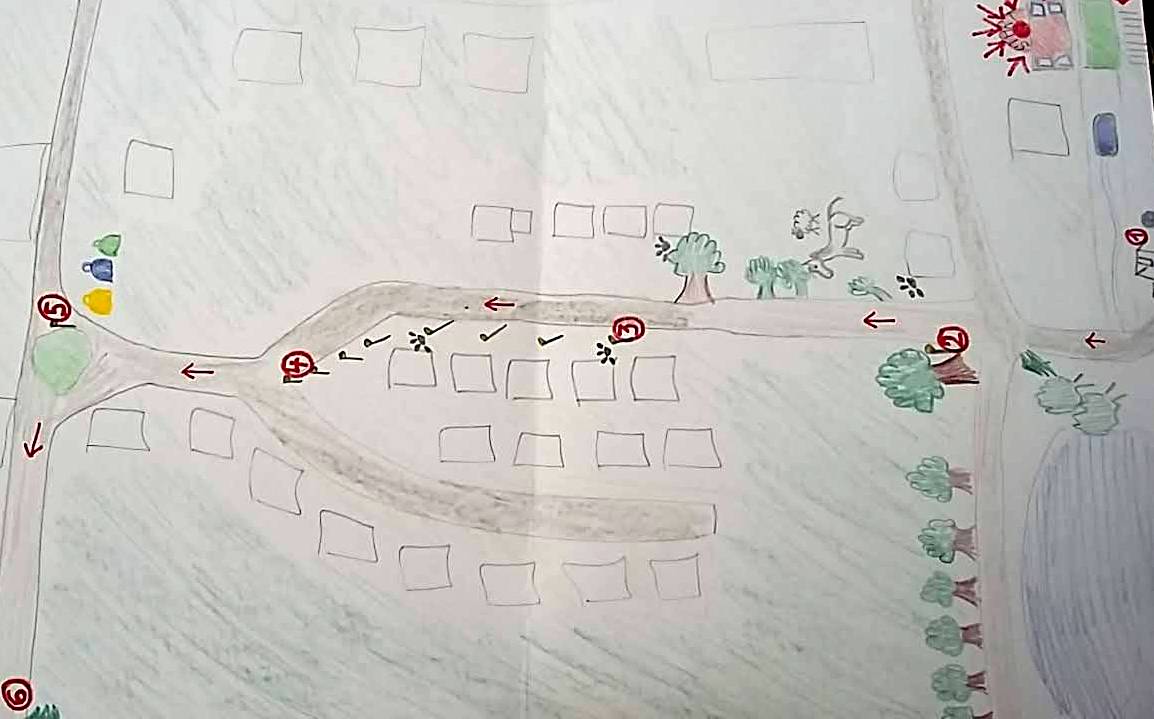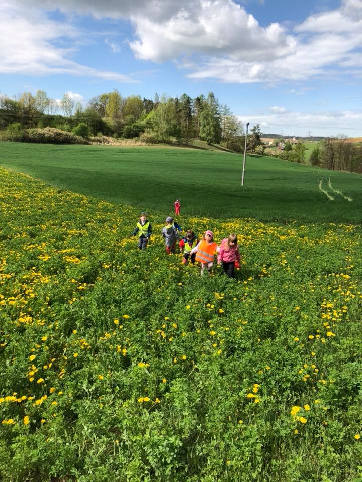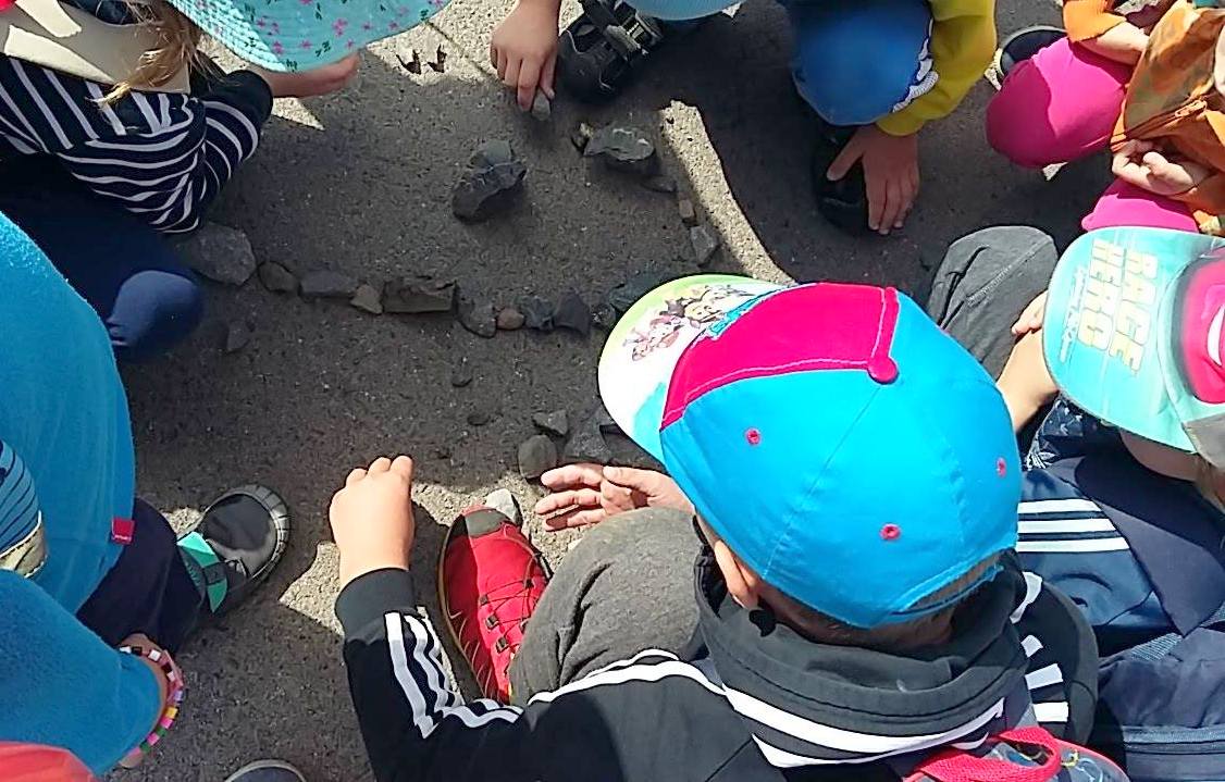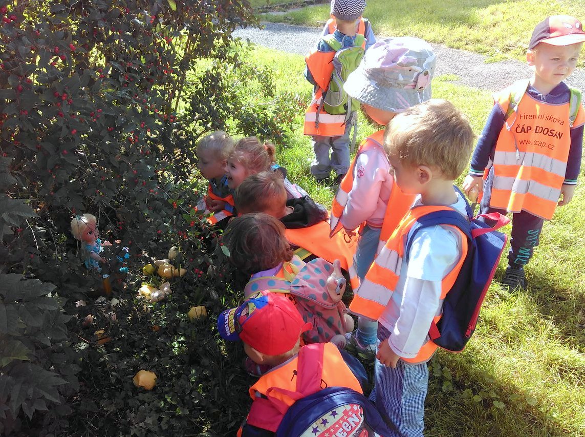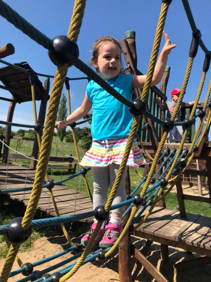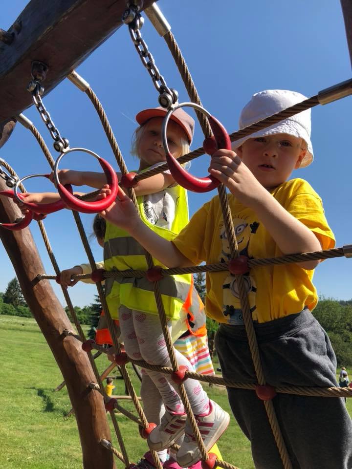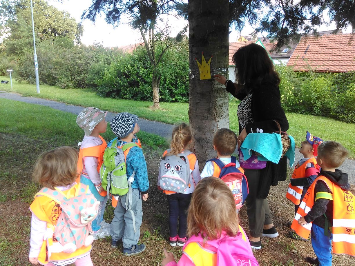 Pak už nastalo pátrání po drakovi. Děti hledaly zlaté korunky, na kterých byly úkoly, které je třeba zvládnout před tím, než se postavíme drakovi. Chodili jsme přes žhnoucí lávu po laně, zpívali písničky kolem posvátného stromu – to totiž oslabí drakovu sílu. A povedlo se!
