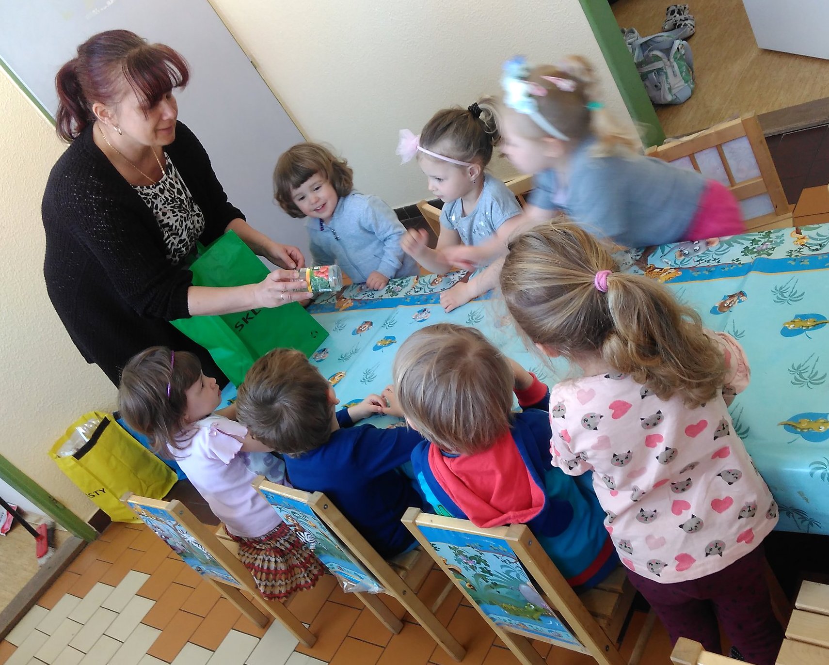 V pondělí 7. dubna nás navštívil pan zelinář Václav Vališ, který nám přivezl plné 3 bedny ovoce a zeleniny. Popovídali jsme si, jak je ovoce i zelenina důležitá pro naše tělo, a poté následovala nekončící ochutnávka všeho možného i nemožného, známého a hlavně neznámého.