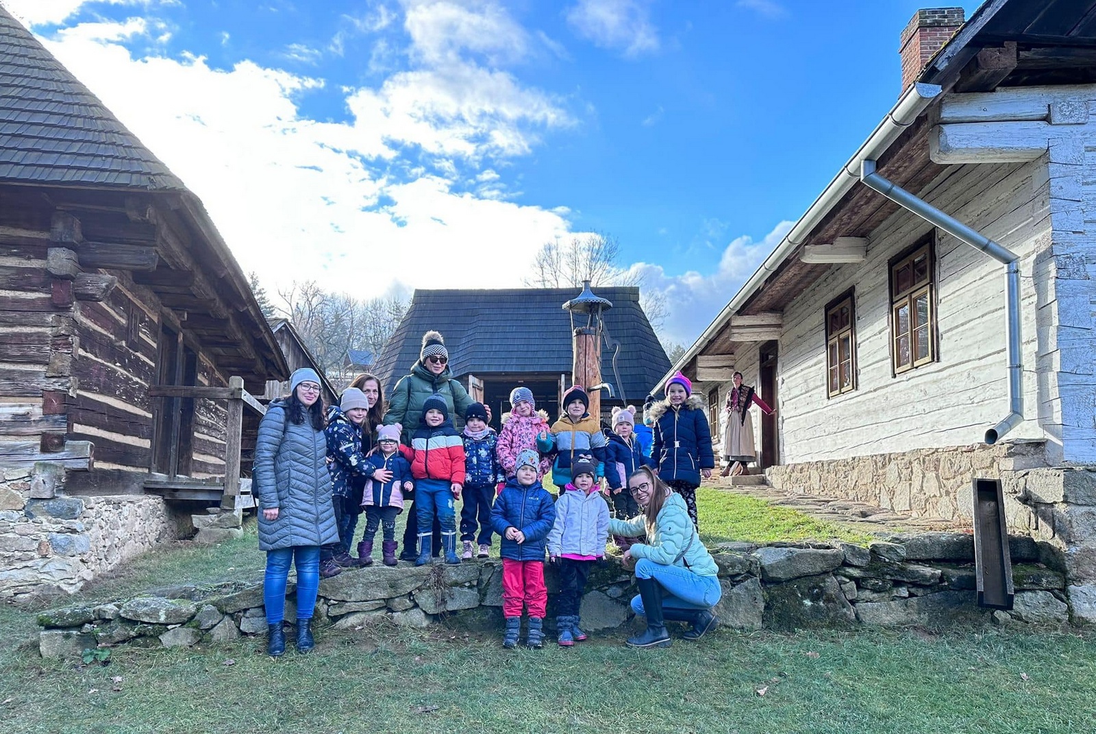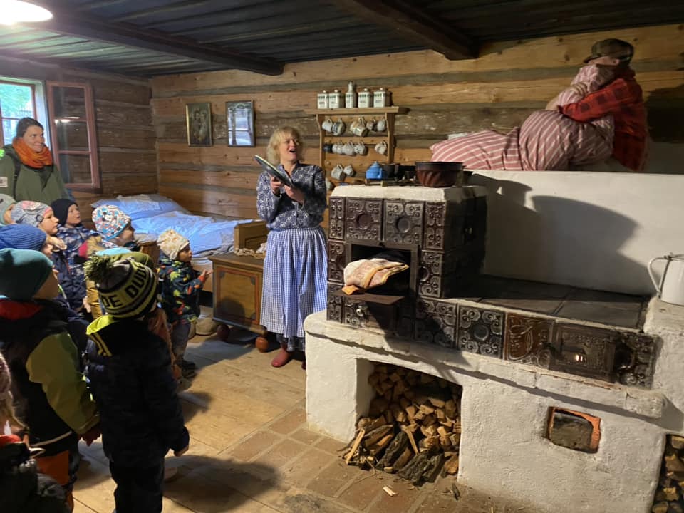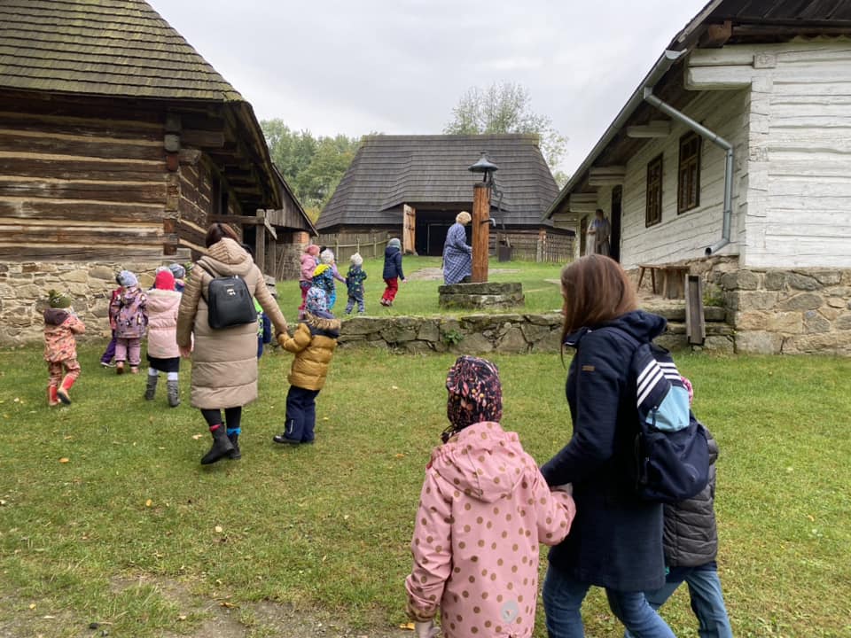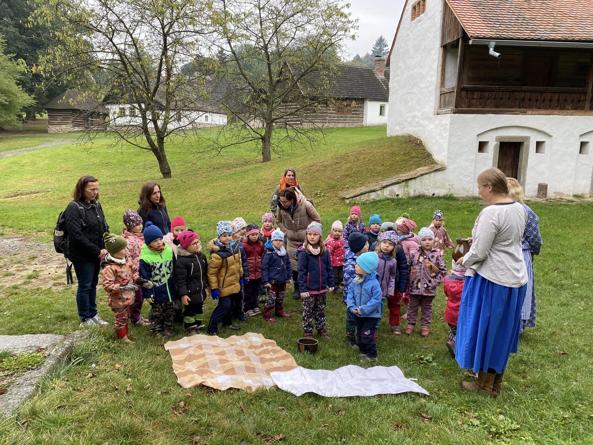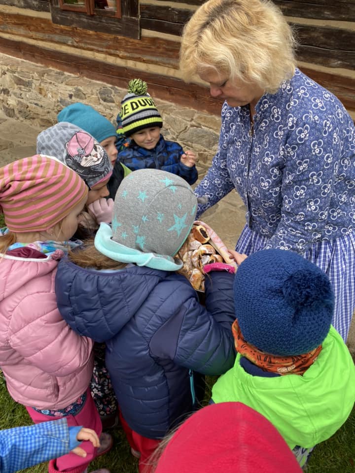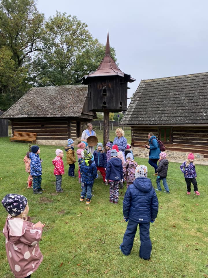 V říjnu se Žlutá Čápátka vydala na výlet za zvířátky do ZOOPARKu jeleni Homole. Společně s kamarády ze Zeleného ČÁPa také navštívila skanzen ve Vysokém Chlumci. Zážitků bylo mnoho… prohlédli jsme si společně stavení, vzbudili Honzu, který spal na vyhřáté peci, pomohli Popelce s přebíráním hrachu, uspali Elišce Terezku, pomohli ve mlýně a ochutnali výborné buchty s povidly. Už se těšíme na další výlety. ![]()