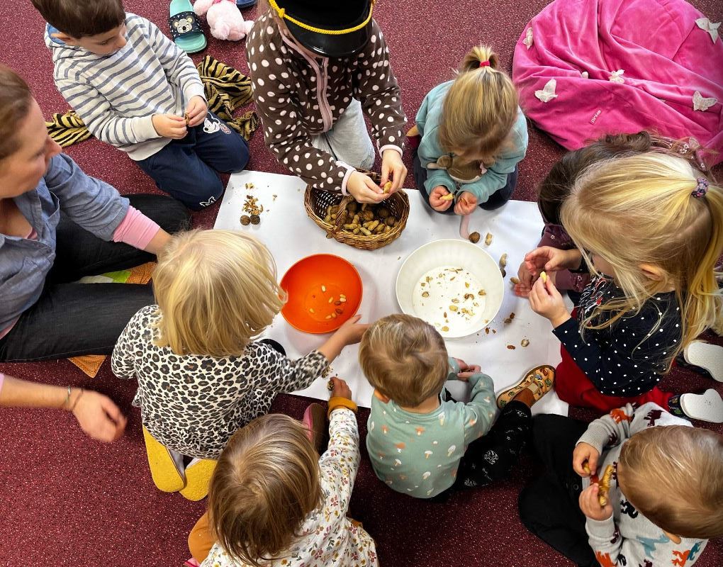 V ten stejný čas – tak jako loni – přijíždí Martin na bílém koni. Příběh svatého Martina jsme prožili všemi smysly. Od tvoření koníků a podkov přes pečení rohlíčků, poslouchání příběhů až k divadelnímu tvoření.