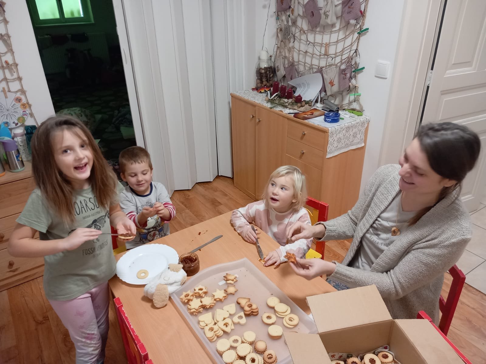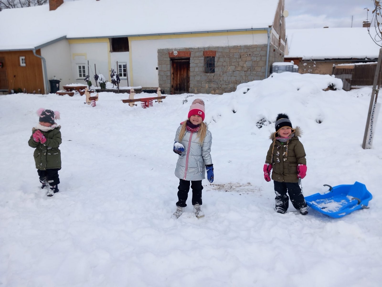Hurá, hurá napadl sníh, vyjíždíme na saních. Sněhová nadílka nás moooc potěšila. 🙂 Celý prosinec jsme si užívali adventního tvoření, pečení, zpívání a chystali jsme se na Vánoce.