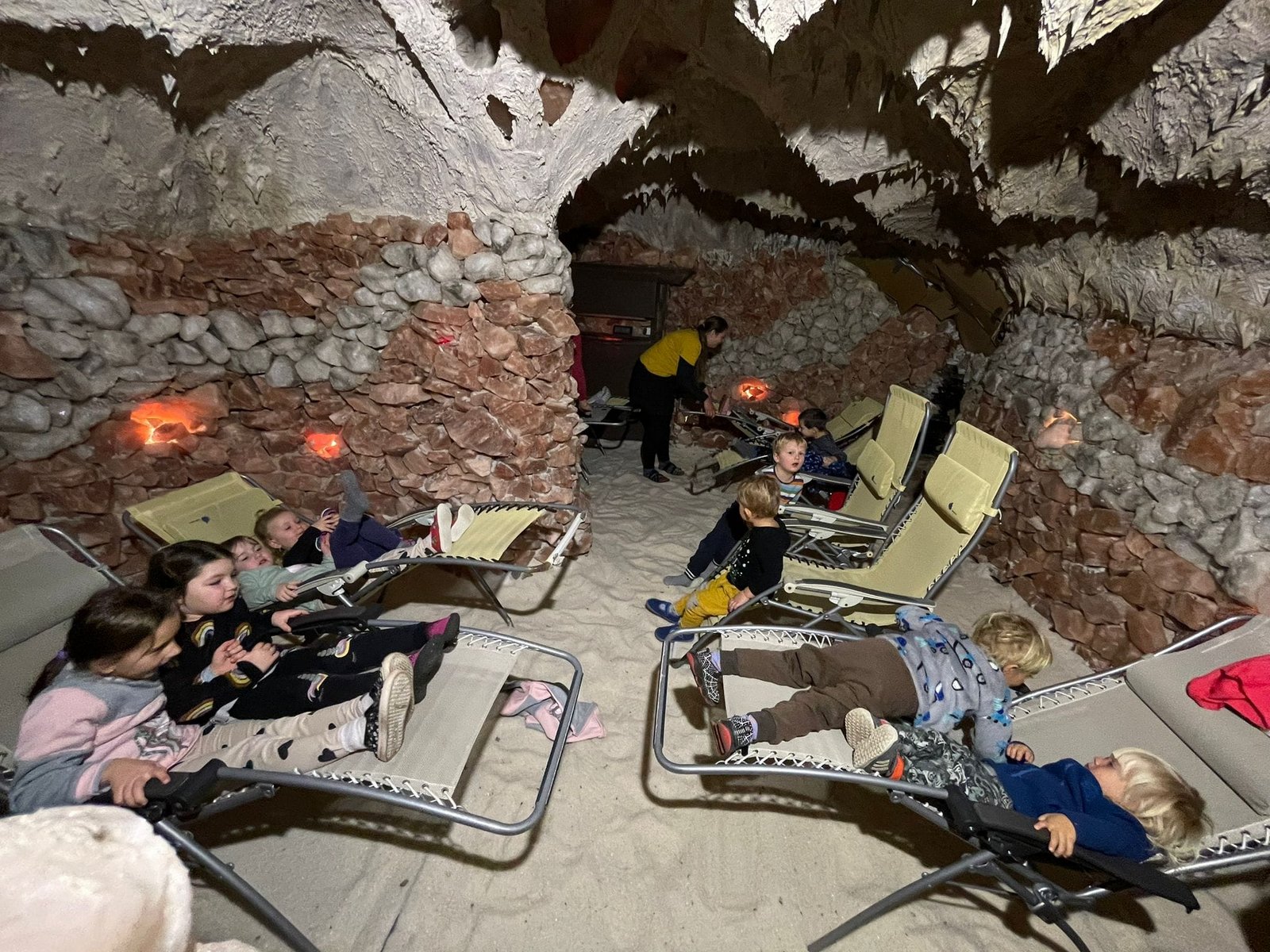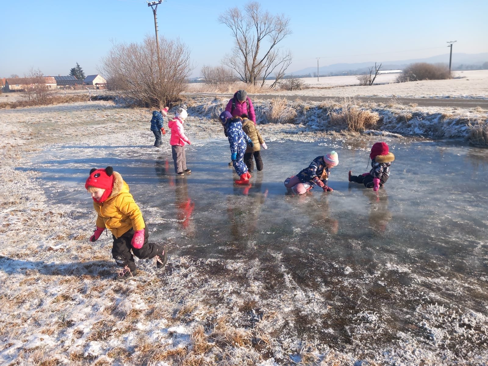 Poznávali jsme své tělo, a to hlavně skrze tvoření, běhání a dýchání. Žlutá Čápátka se vydala na návštěvu solné jeskyně ve Svatém poli, byla nasoleně vydařená. 🙂 Zpět do Budínku jsme doklouzali po ledu.