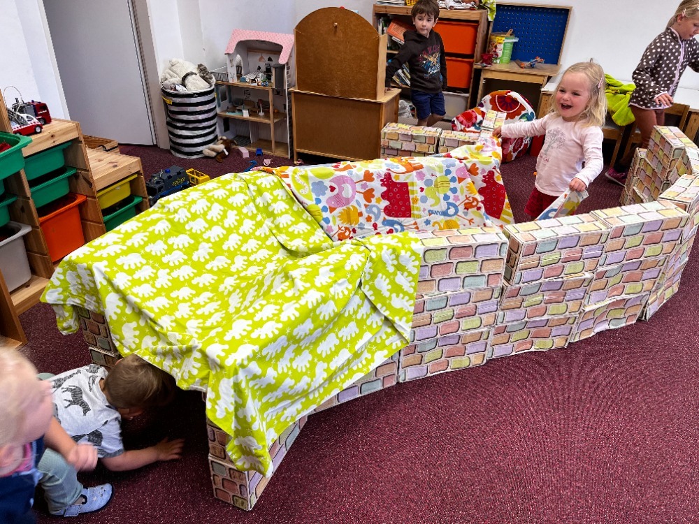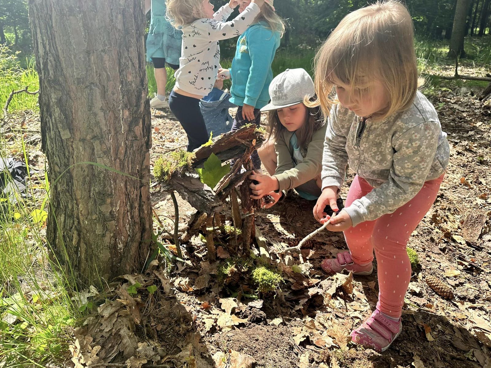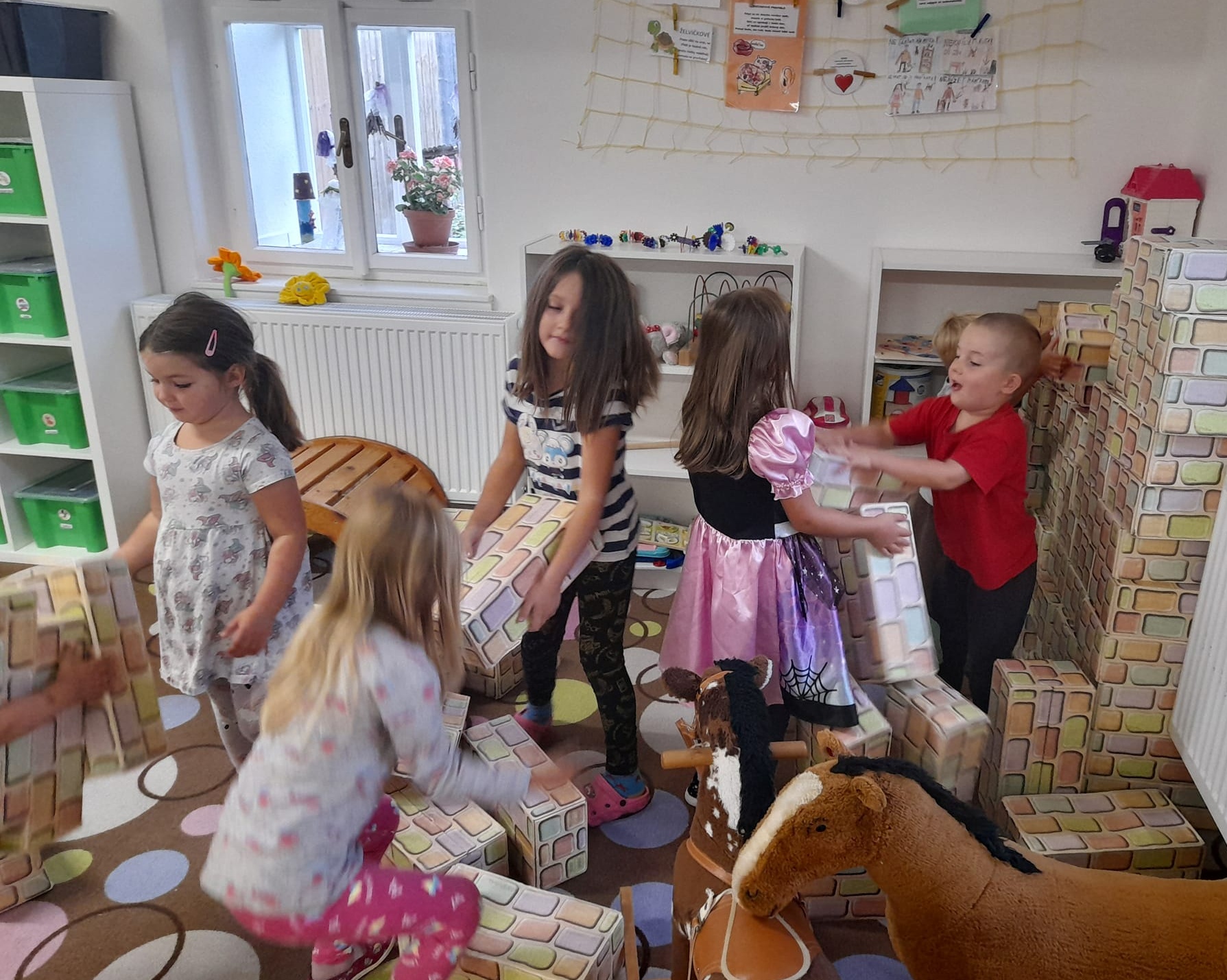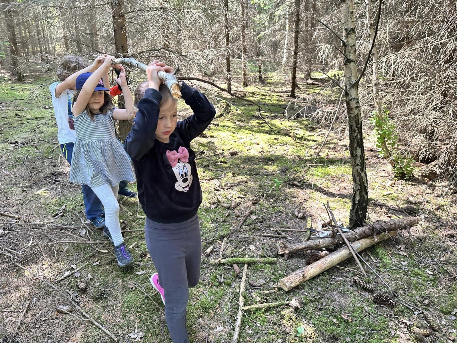 Žlutá Čápátka stavěla v lese domečky pro zvířátka a zahrála si na mravenečky. „Mravenečci“ si rozdělili úkoly, spolupracovali a postavili si vlastní domeček.