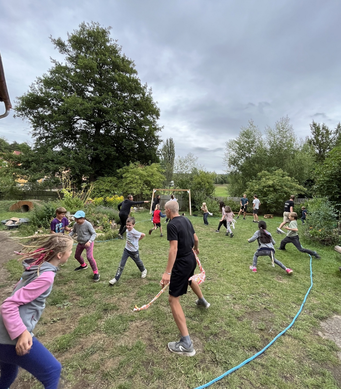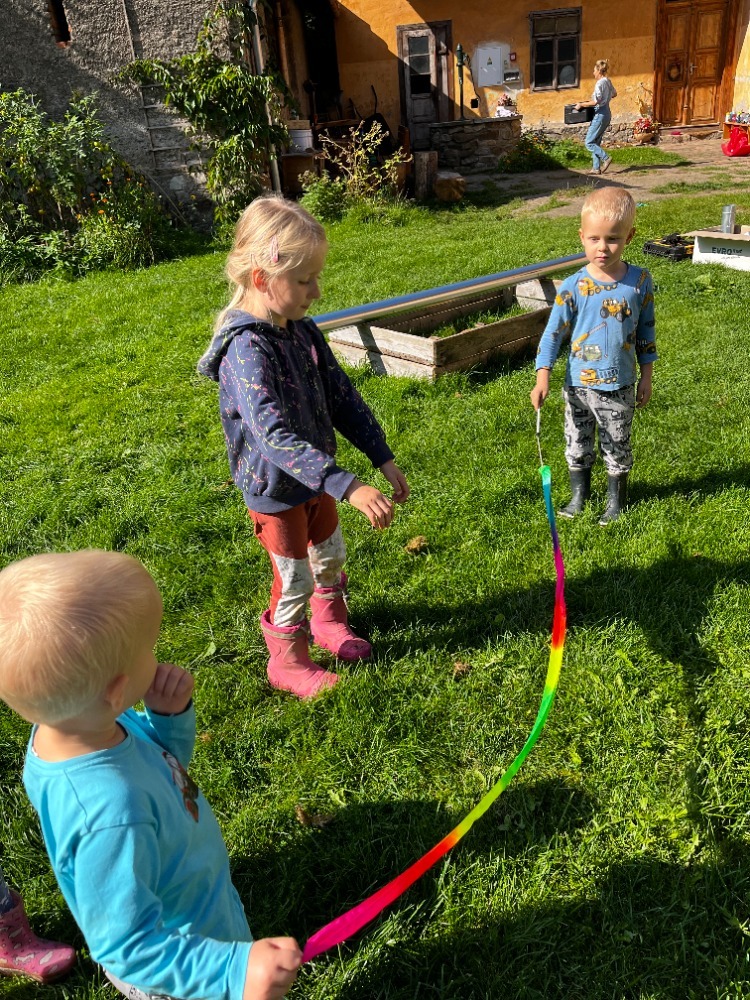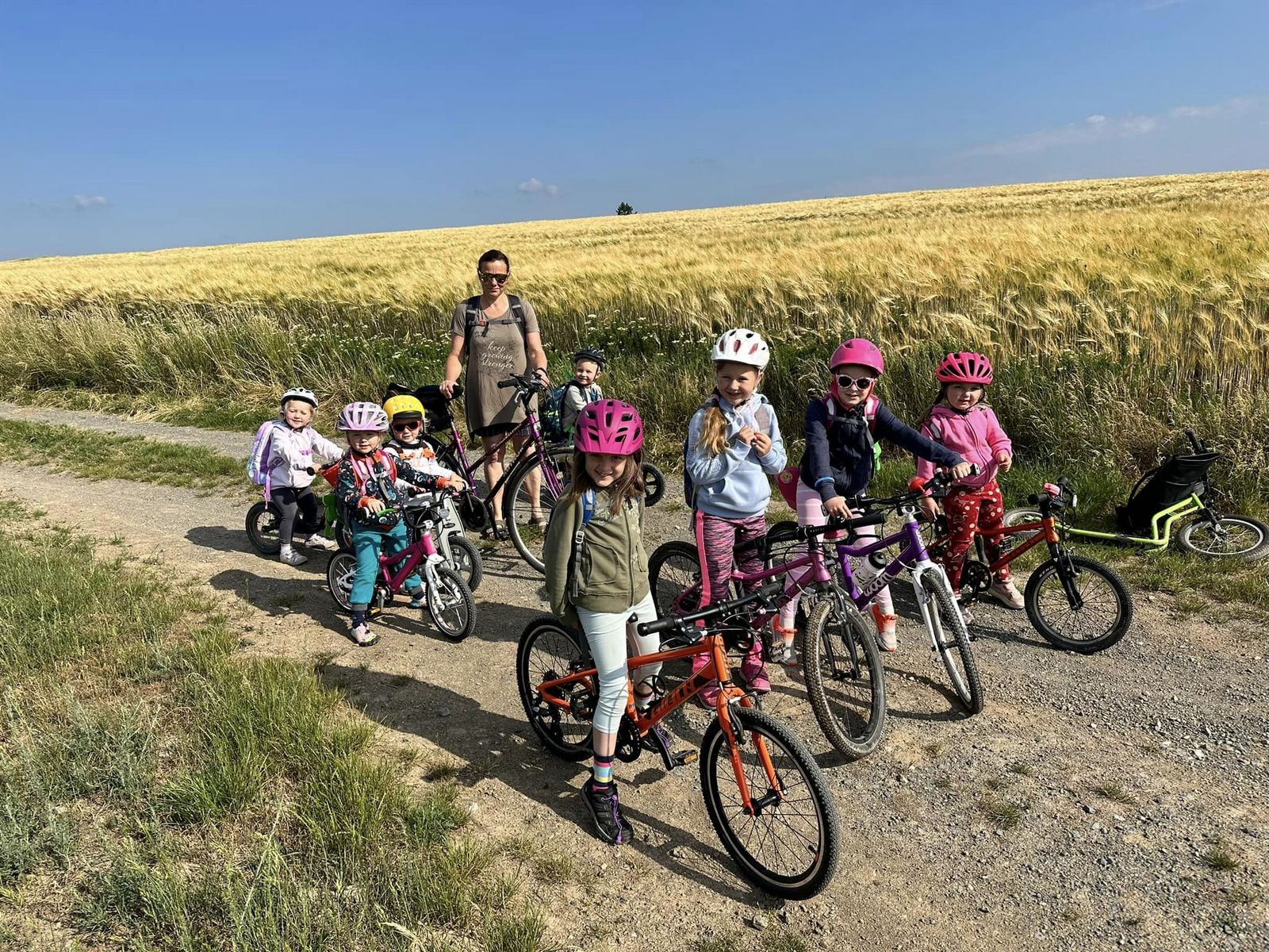 Počasí nám přálo, tak jsme vyrazili na cyklovýlet ke starému mlýnu. Pořádně jsme to tam prozkoumali, hráli jsme hry, cvičili a dali si dobrou svačinku.