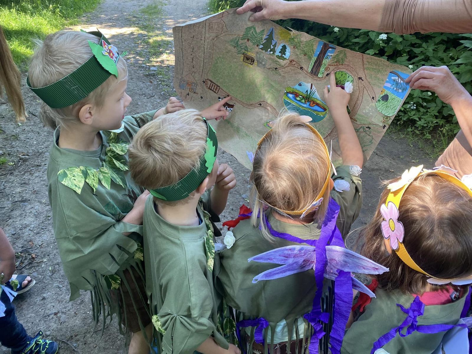 Skřítci a víly ze Zeleného ČÁPa se společně vydali na cestu za pokladem. Od skřítka Dubínka dostali kouzelnou mapu, rozluštili a uhodli kouzelné slovíčko, dokázali připravit lektvar lásky a v lese našli ukrytý poklad. Poděkovali společně vílám a skřítkům našeho krásného lesa.