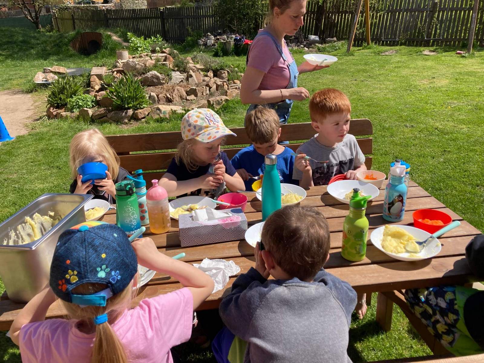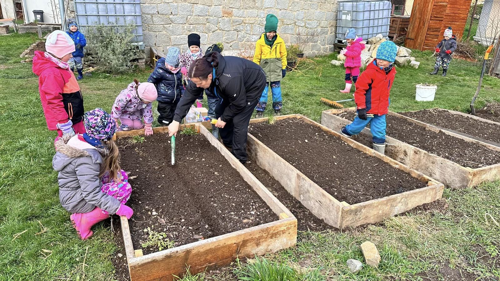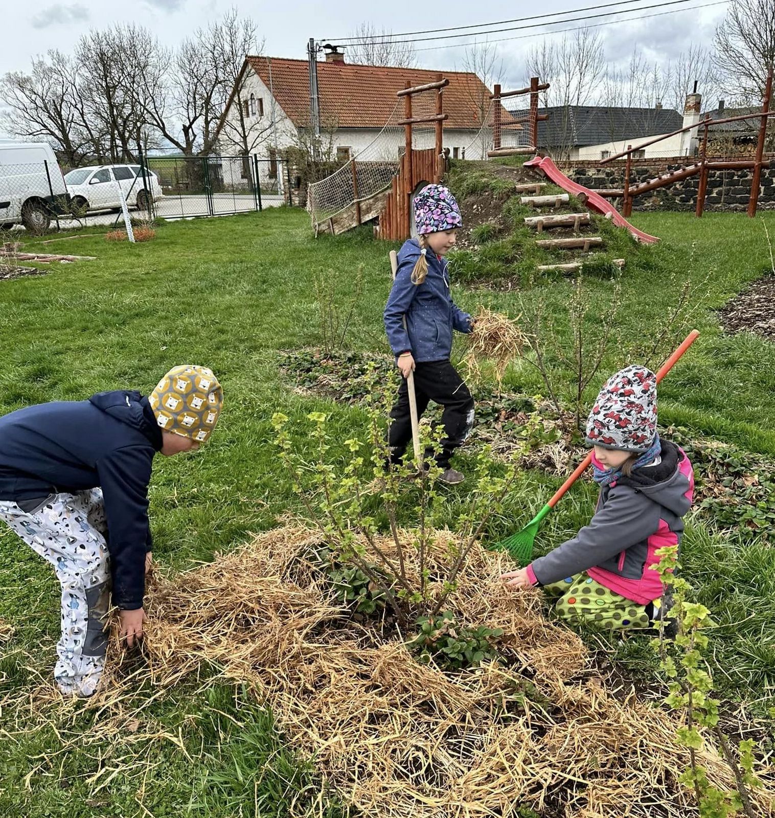 Jaro bylo v plném proudu, sluníčko svítilo a my měli plné ruce práce. Pečovali jsme o zahrádku, sbírali pampelišky na medík, starali se o zvířátka,… Zahrada nám krásně rozkvetla, už se moc těšíme, až ochutnáme první úrodu.
