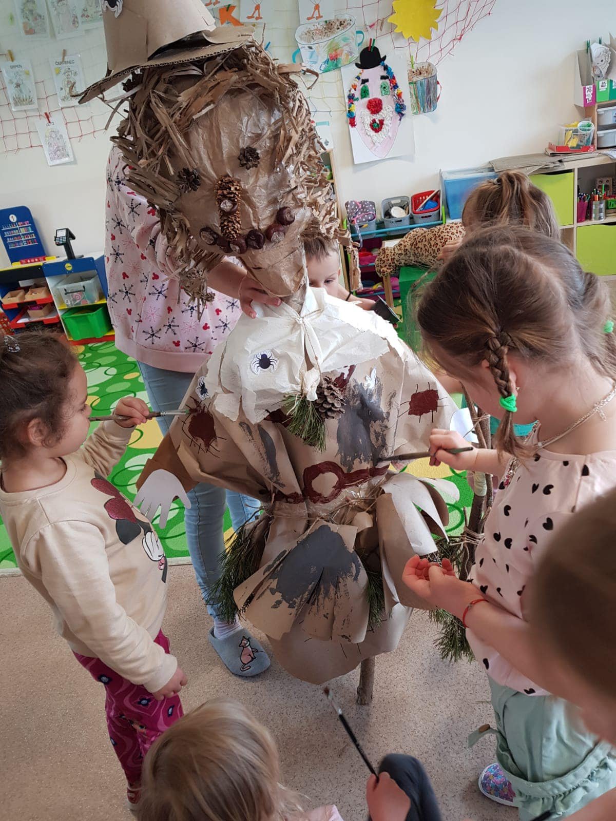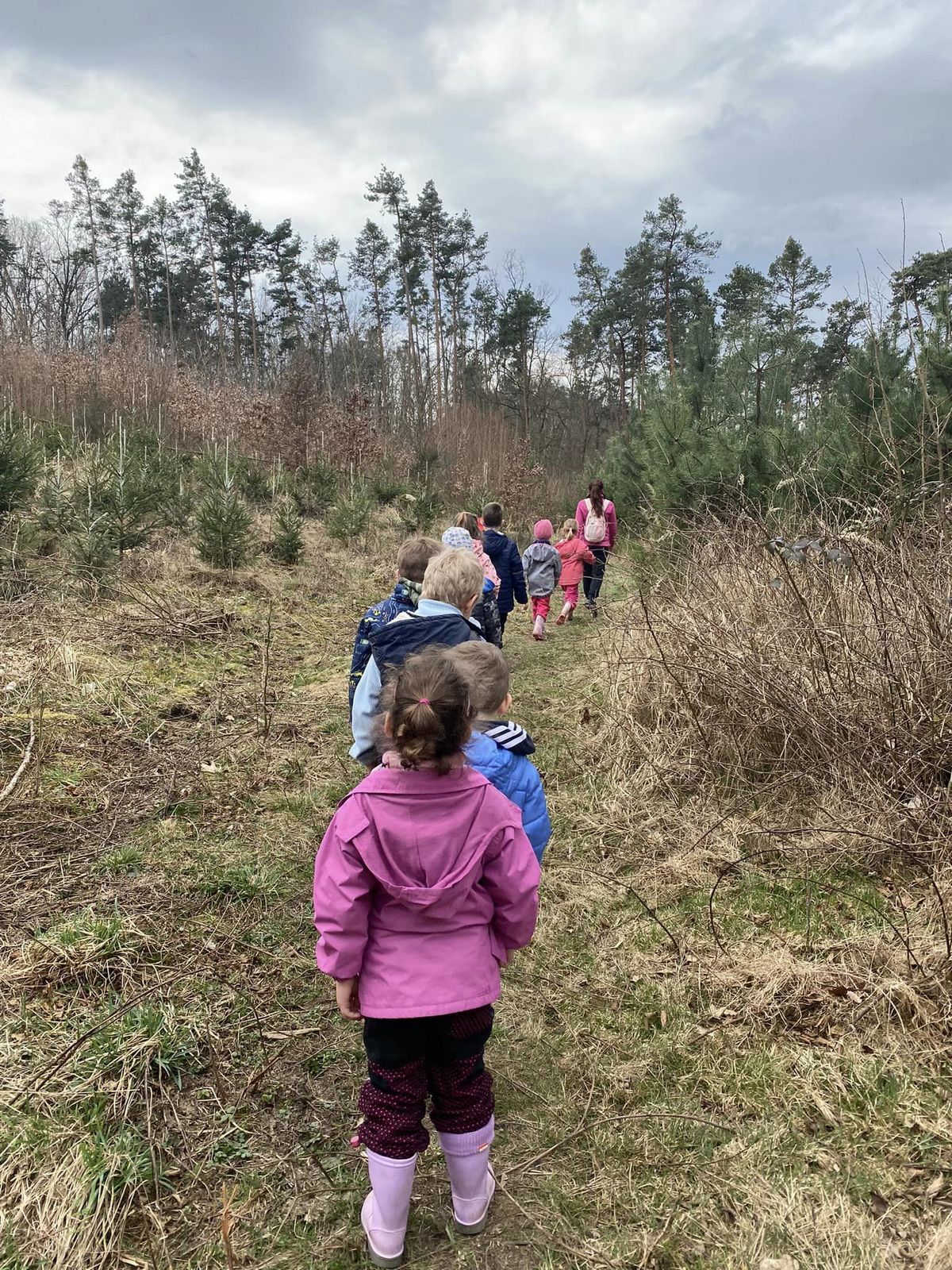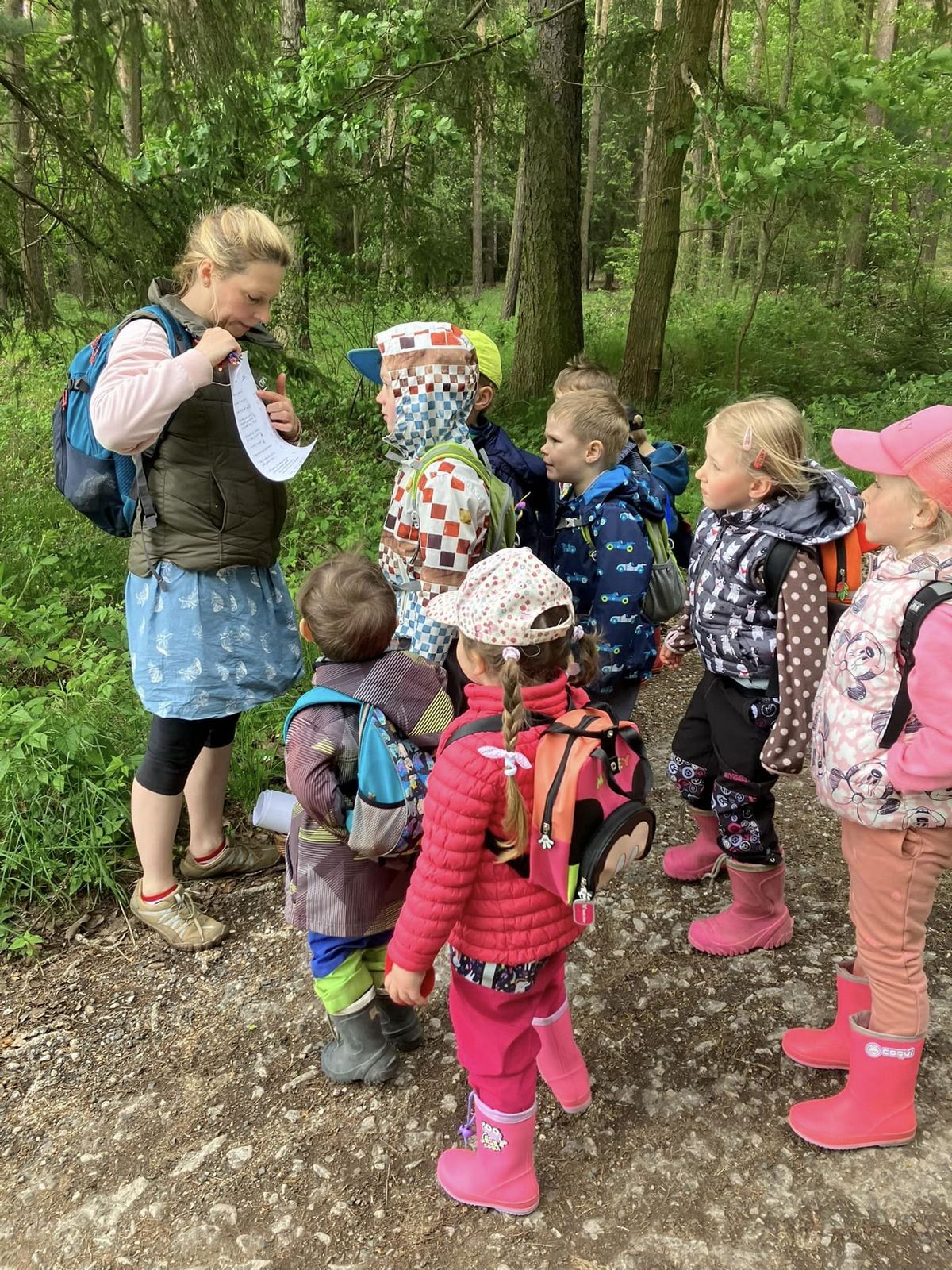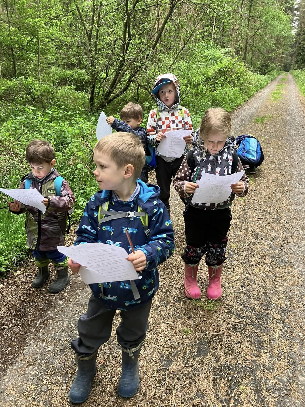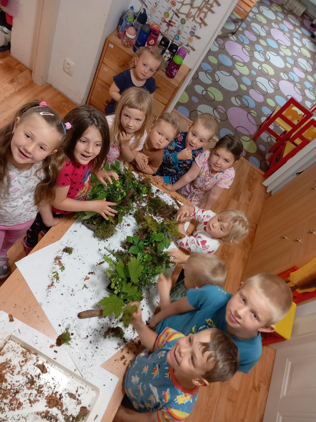 Bílá Čápátka vyrazila na poznávací výlet do lesa. Naučili jsme se rozeznávat jahodníky a borůvčí, ochutnali jsme šťavel kyselý, pozorovali různé broučky a zkoumali šišky a jejich semínka. Nechybělo ani tvoření. Z přírodních materiálů jsme si vytvořili štětce a jako barvu jsme použili bláto. Vznikly nám krásné obrázky.