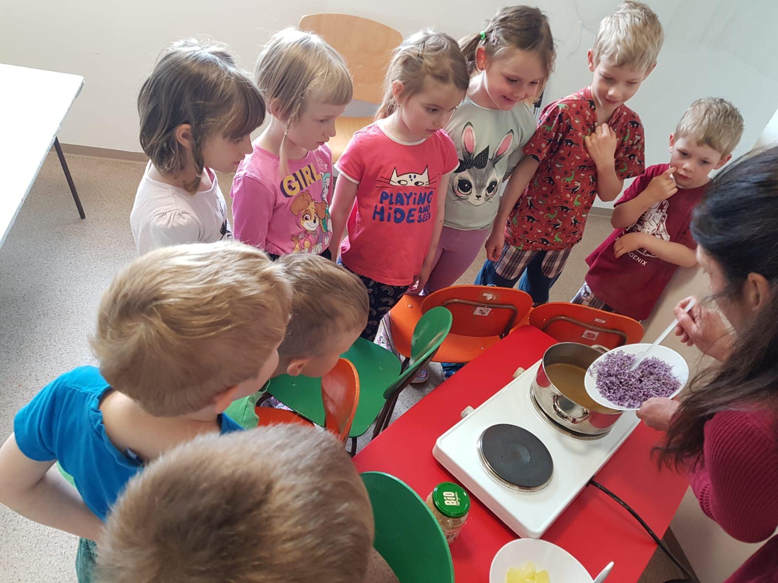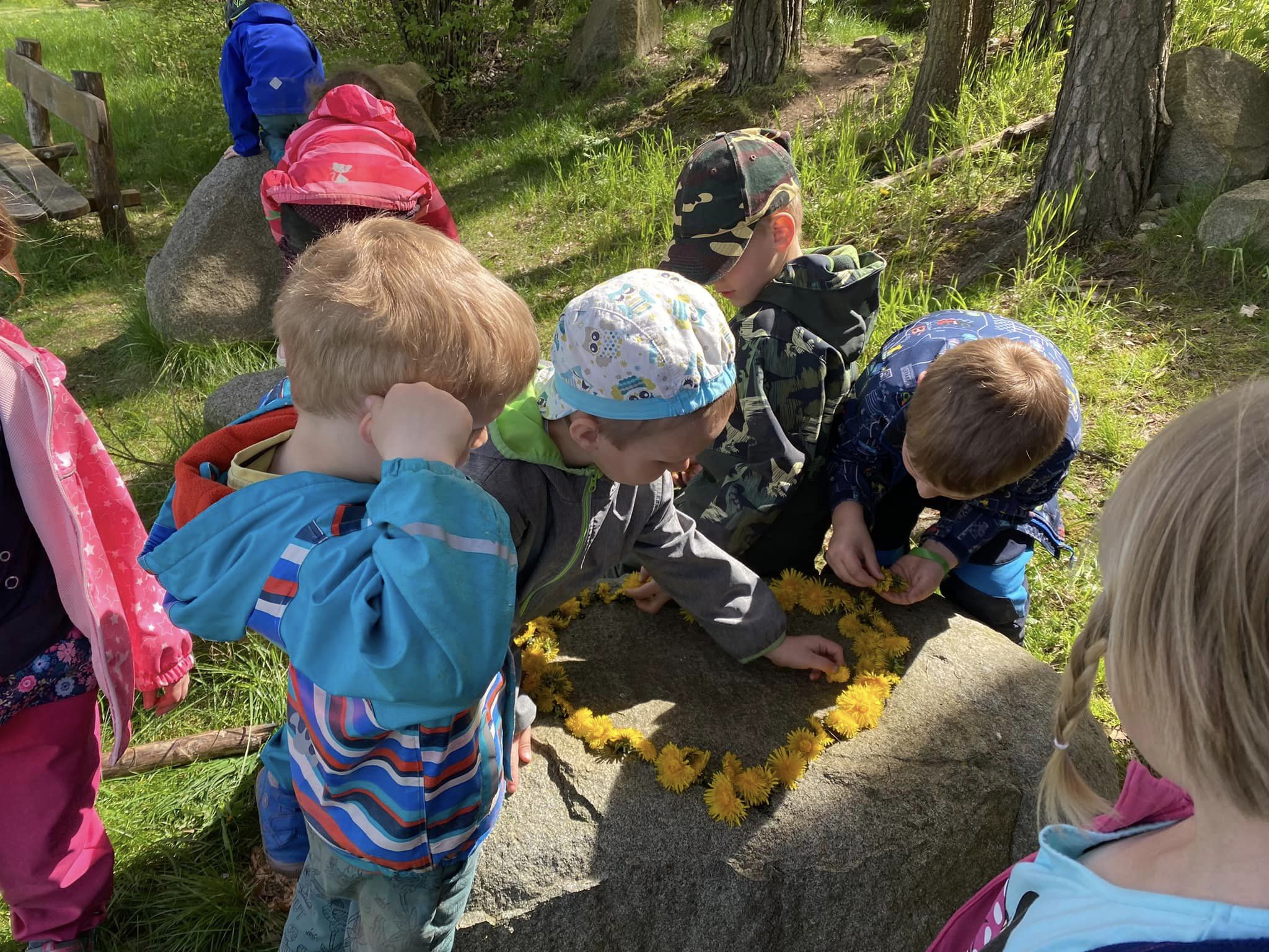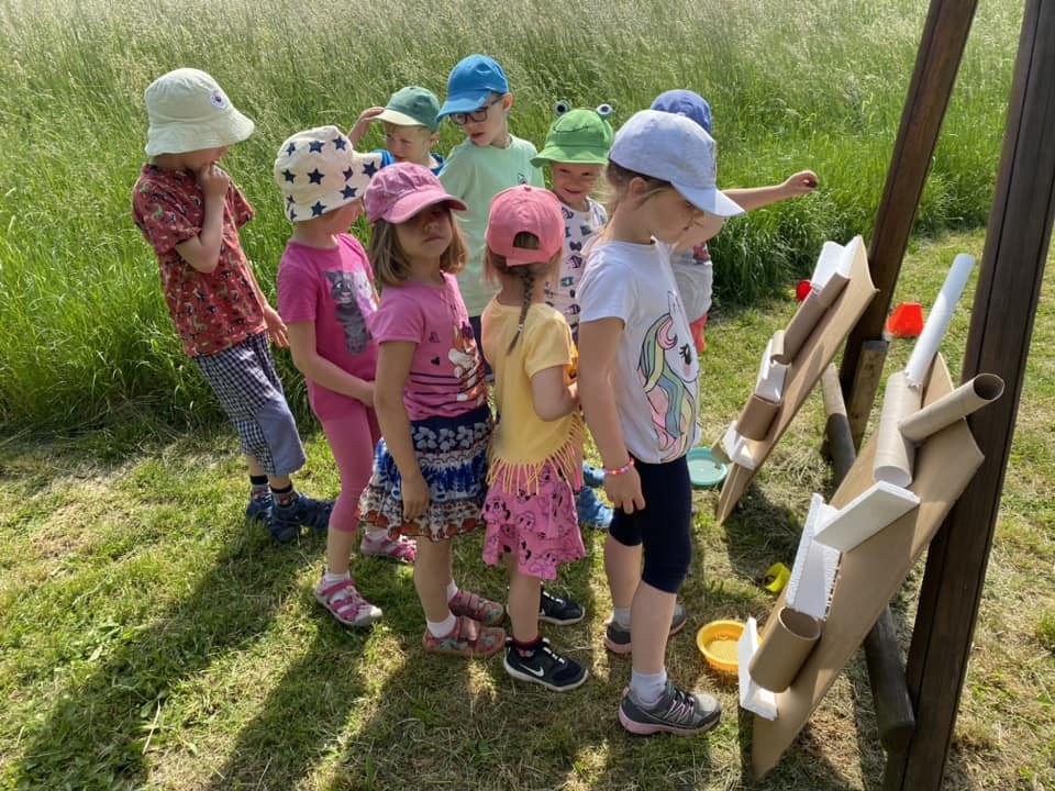 Vydali jsme se na výlet za zvířátky, pozorovali jsme žabky, hmyz, jarní kvítí. Z natrhaného šeříku jsme si uvařili výborný sirup, pochutnali jsme si na palačinkách s kvítky a na výborné limonádě.