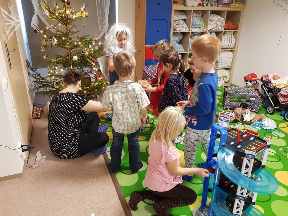 Dnešní den byl ve znamení vánočního slavení, hodování plný úsměvů, štěstí a radosti. Nejdříve nás ráno navštívila paní ředitelka Míša, která nám popřála krásné a veselé Vánoce, následovala vánoční svačinka, otevření posledního adventního domečku s úkoly. Dnes jsme měli zazpívat koledu. A co se stalo při našem zpěvu? Ježíšek zazvonil na zvoneček a nechal nám pod stromečkem dárečky. Byl to moc krásný den.